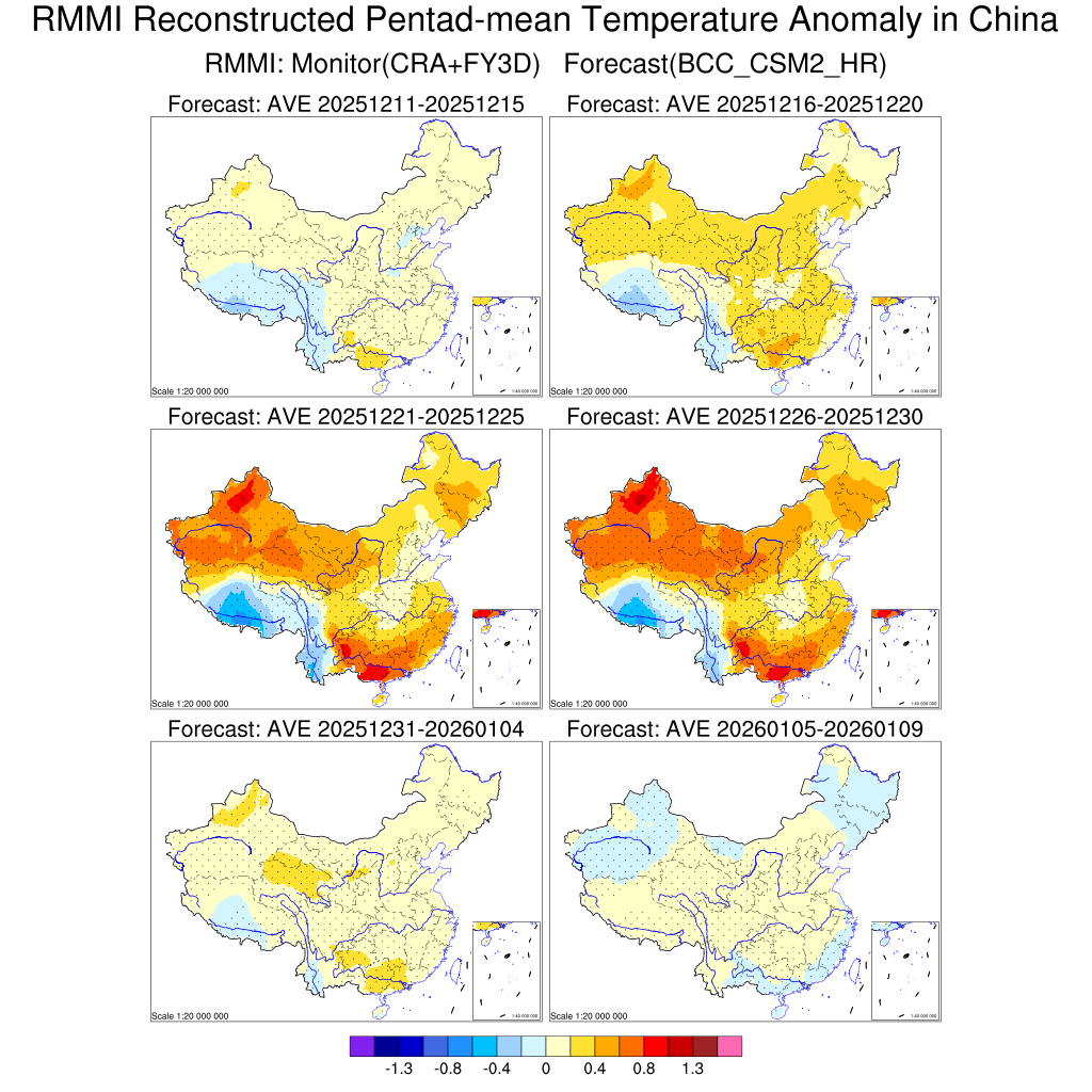 MJO降尺度模型对我国候平均温度异常预测(未来6候预测)
