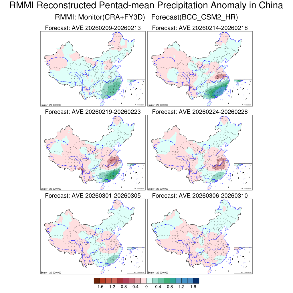 MJO降尺度模型对我国候平均降水异常预测(未来6候预测)