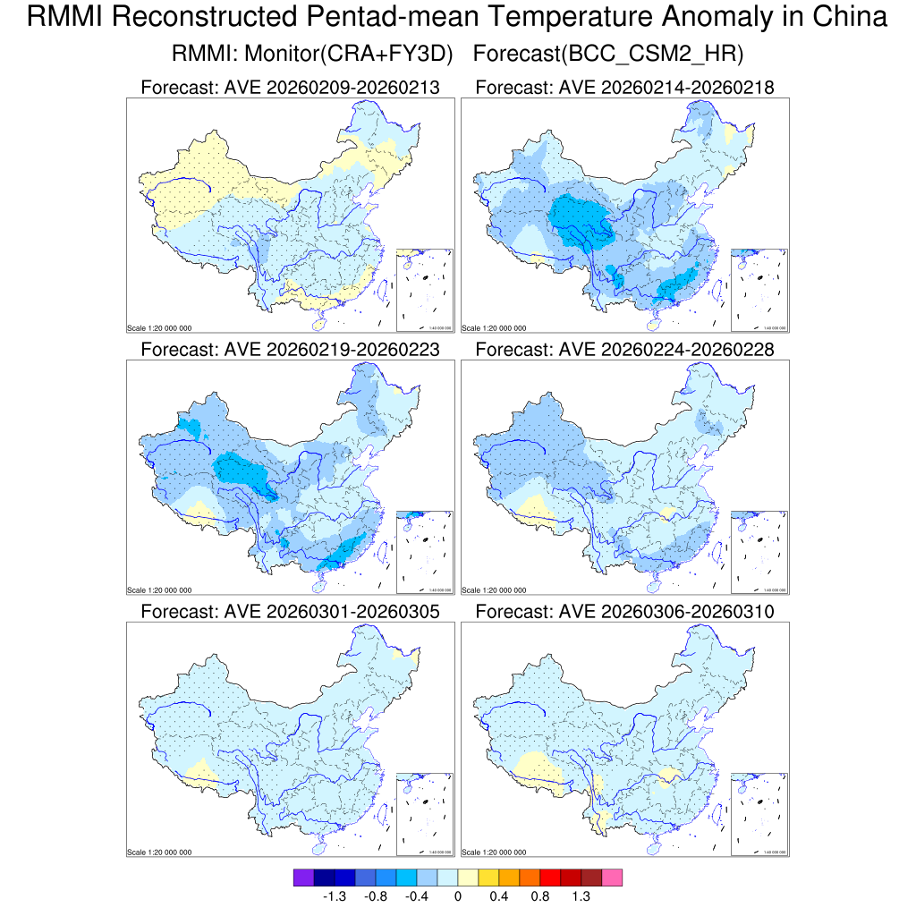 MJO降尺度模型对我国候平均温度异常预测(未来6候预测)