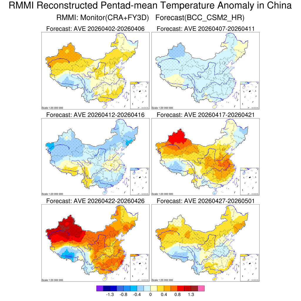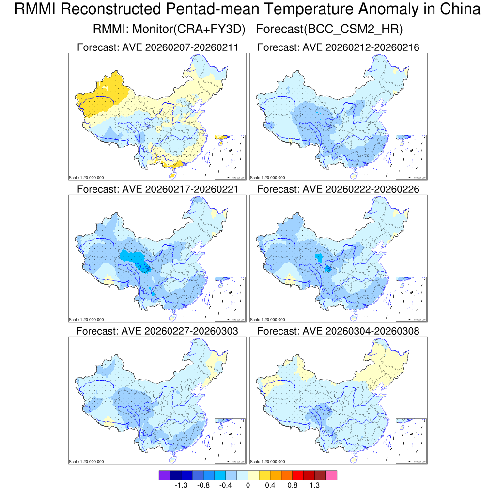 MJO降尺度模型对我国候平均温度异常预测(未来6候预测)