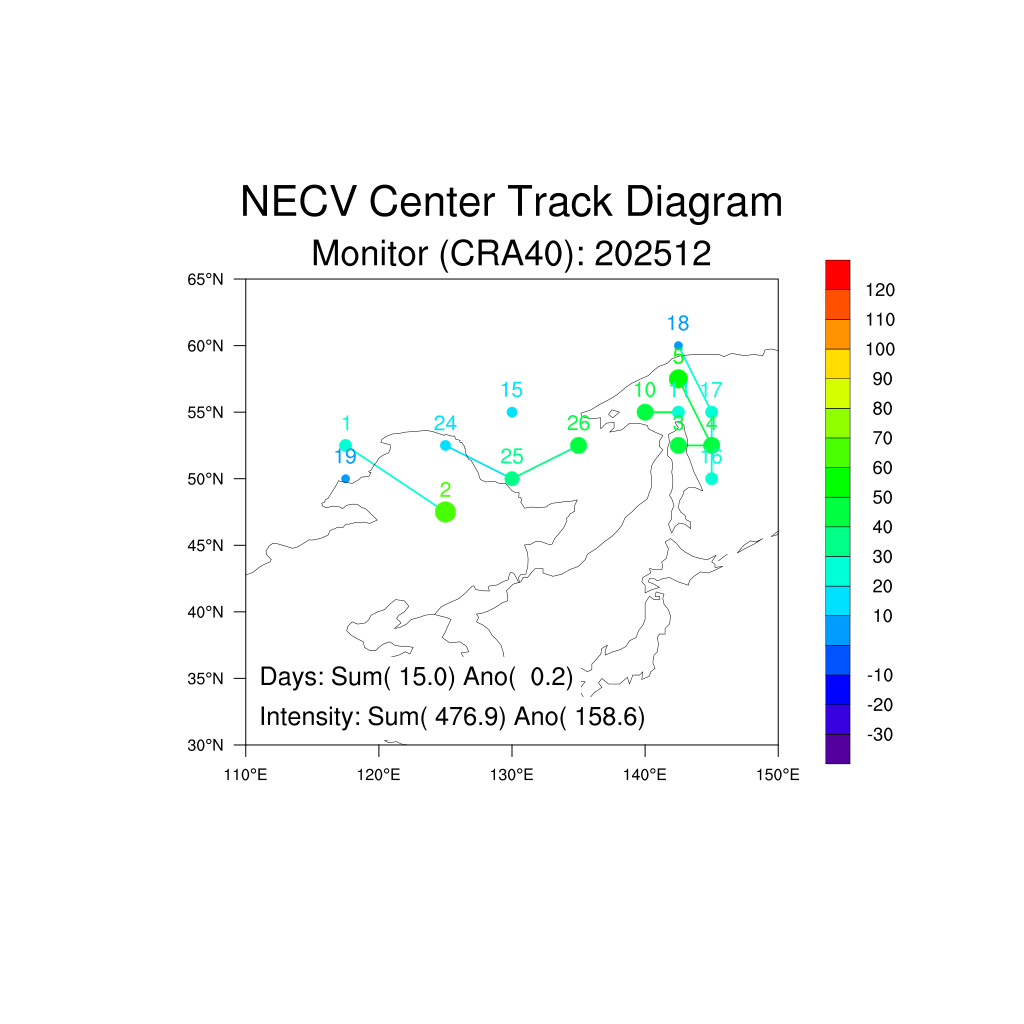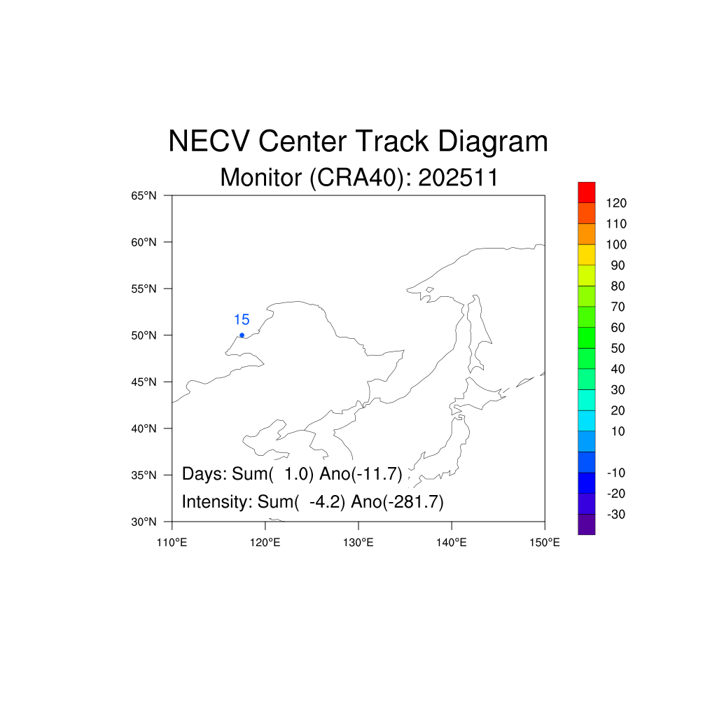 月尺度东北冷涡中心密度及异常(本月至今监测)
