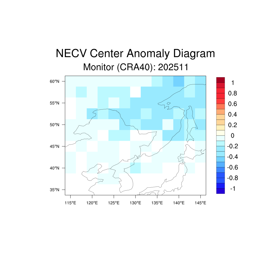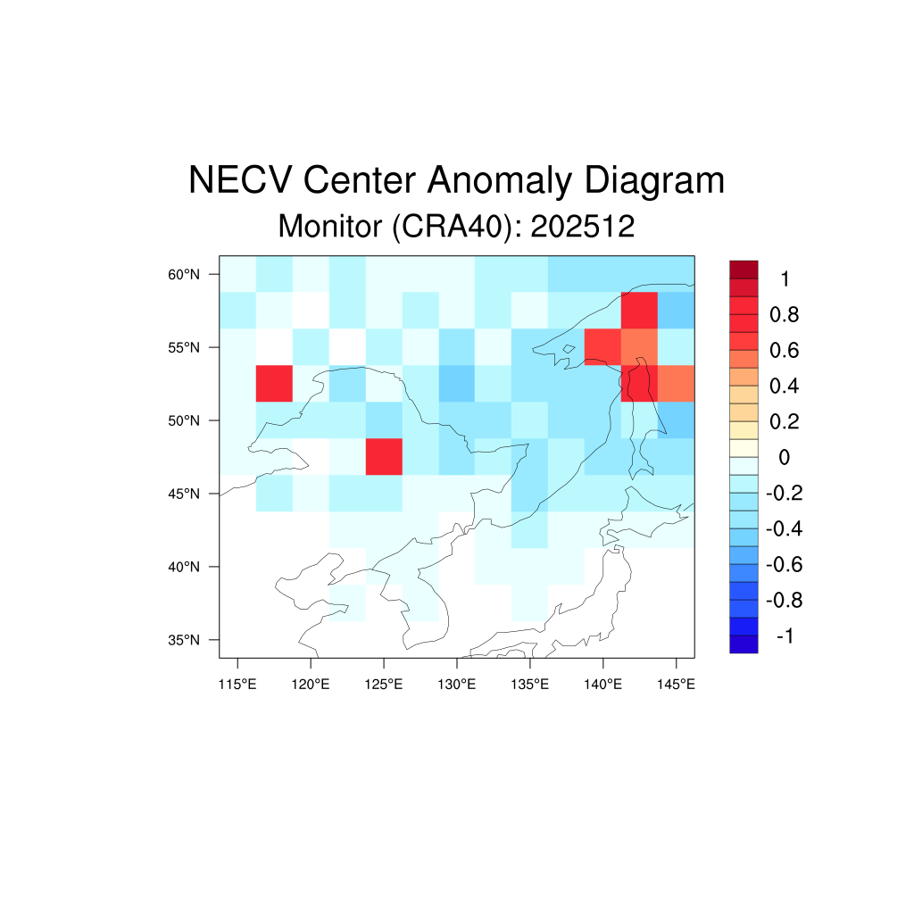 月尺度东北冷涡中心密度及异常(本月至今监测)