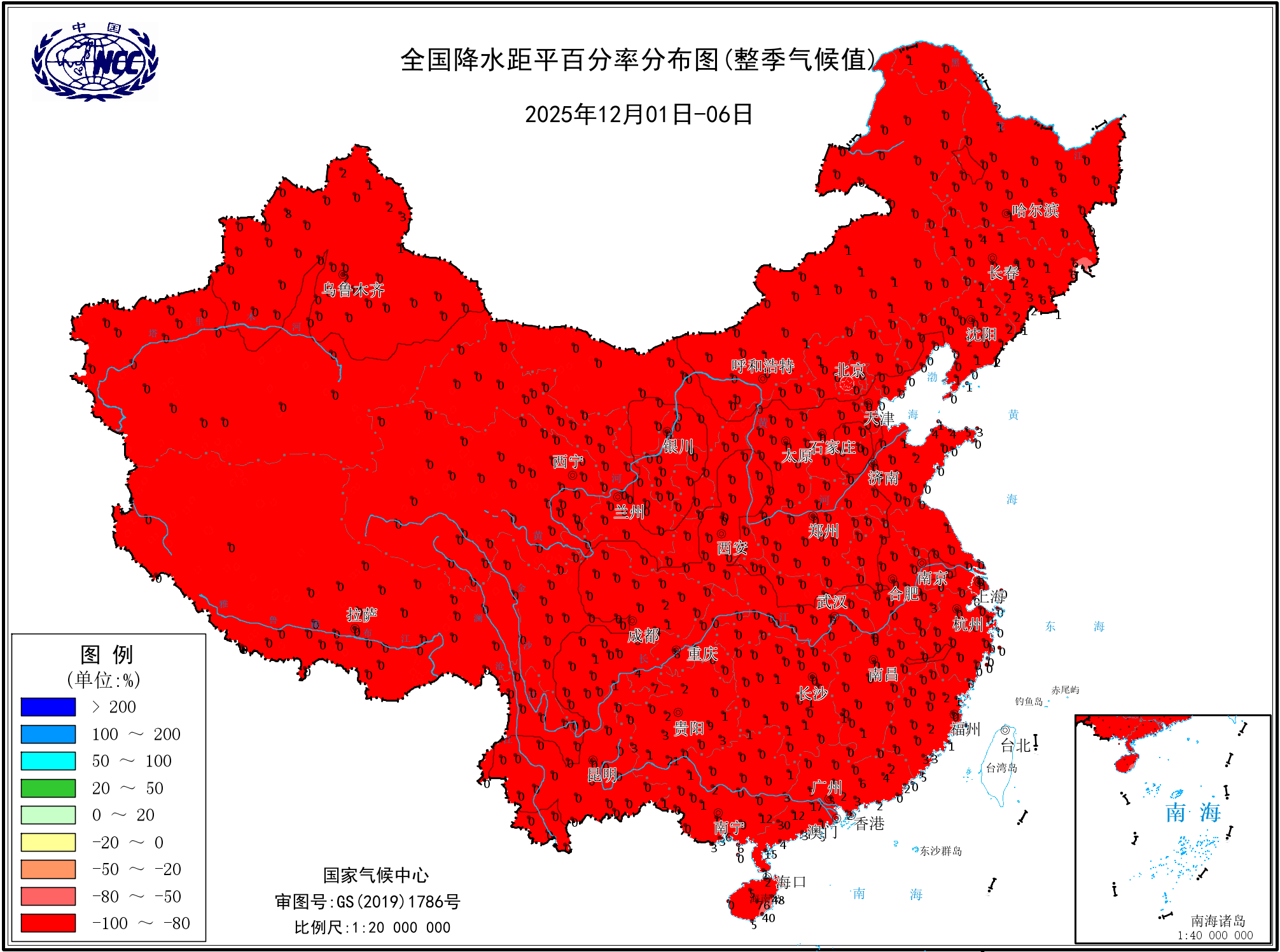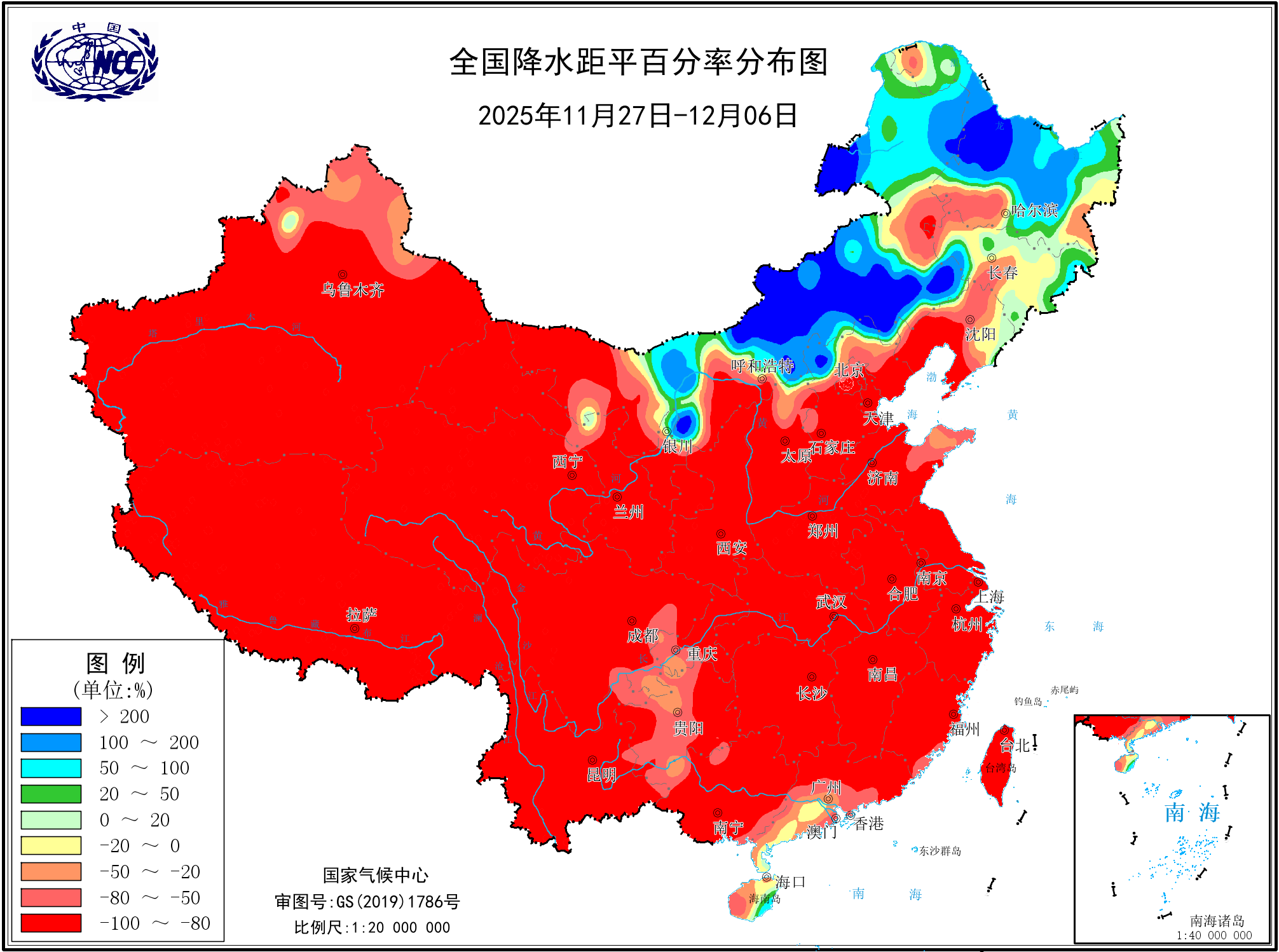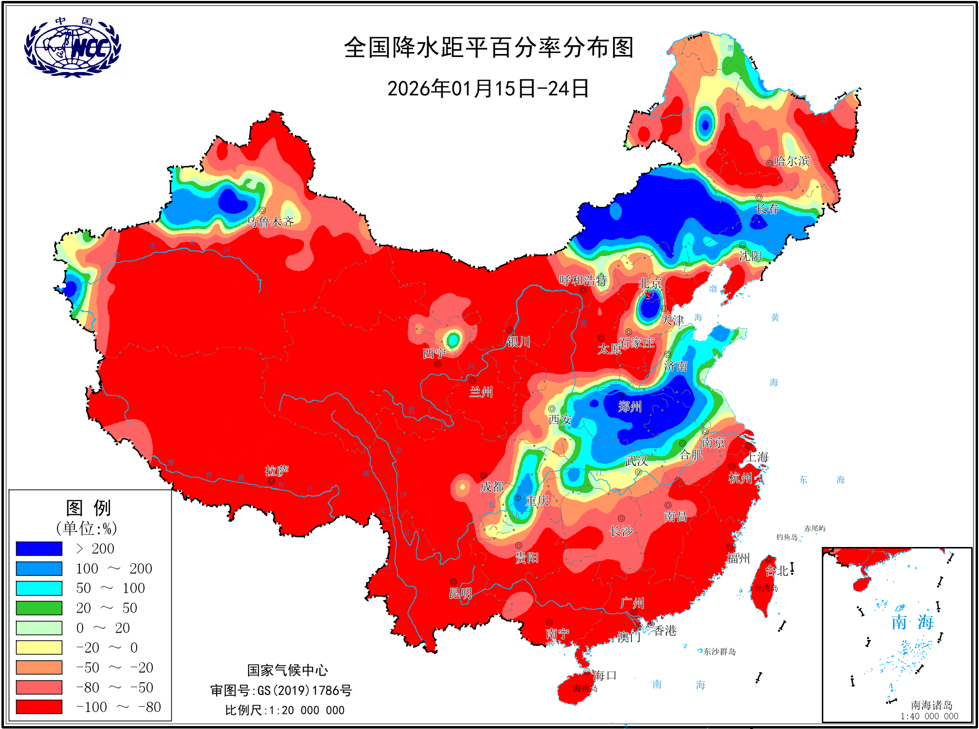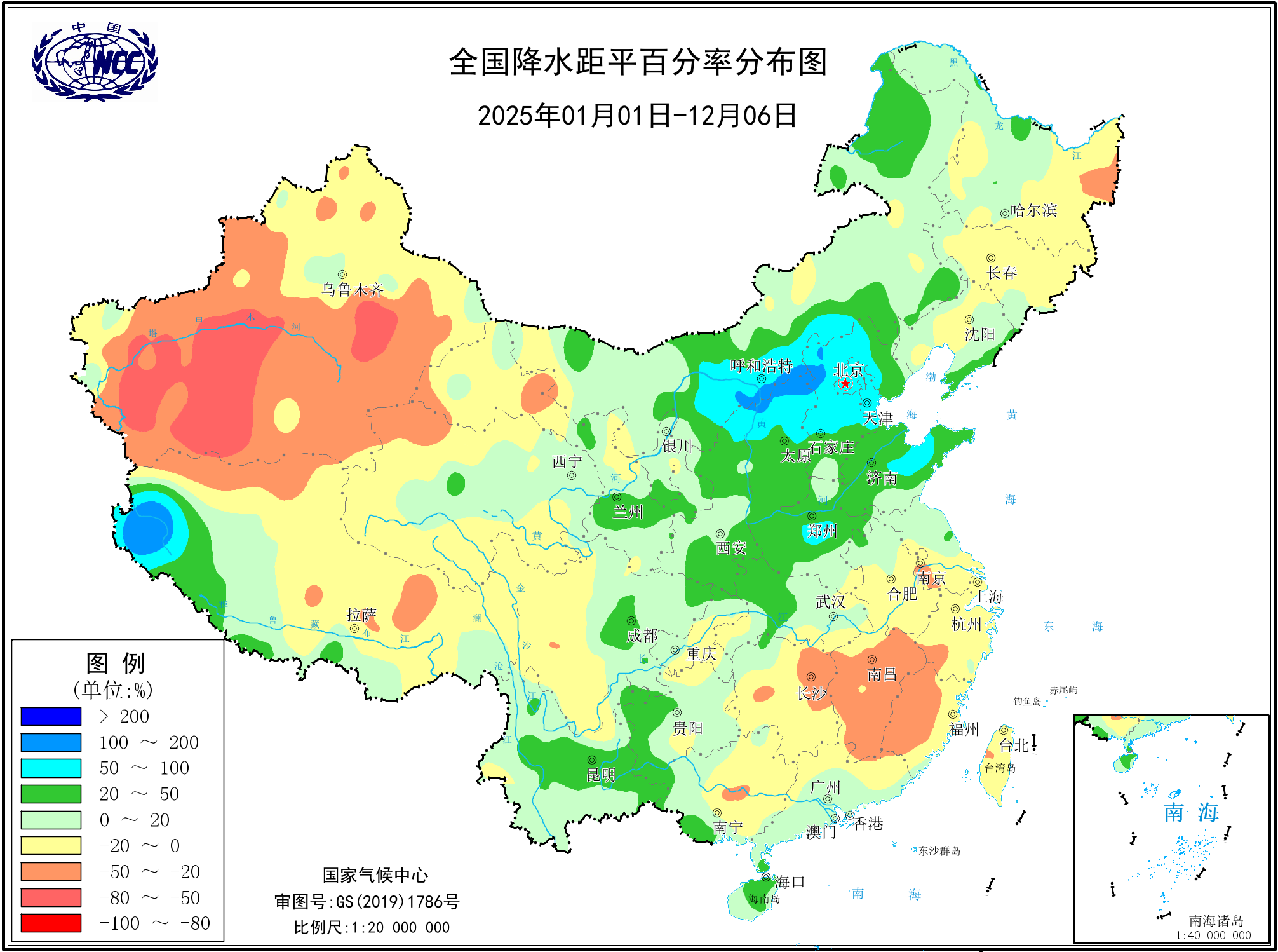 本年以来降水量距平百分率