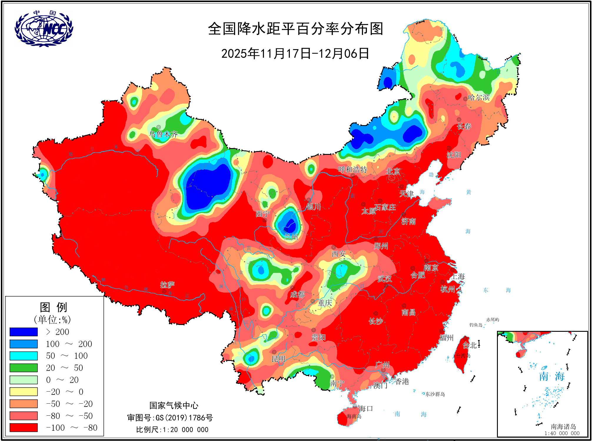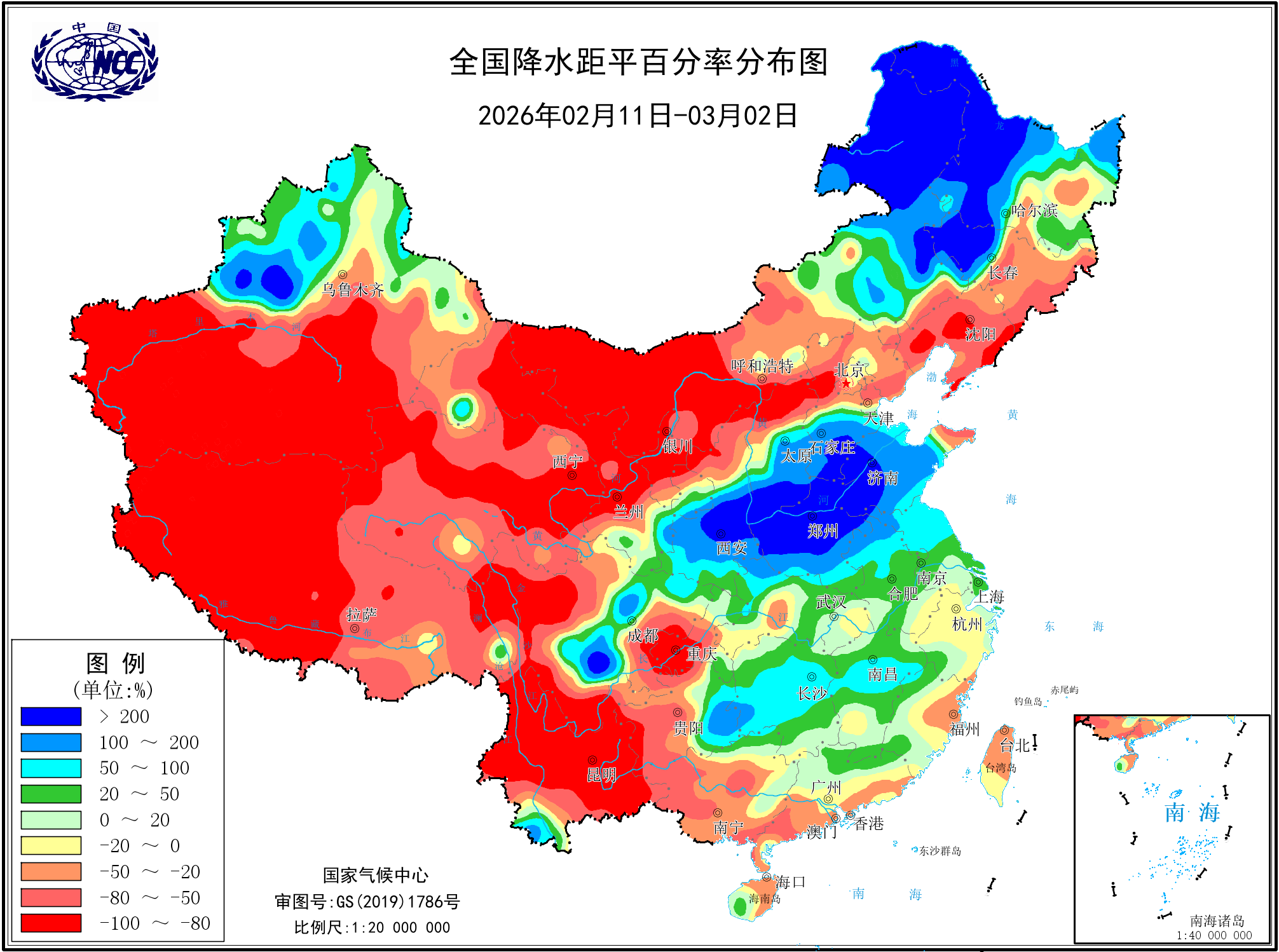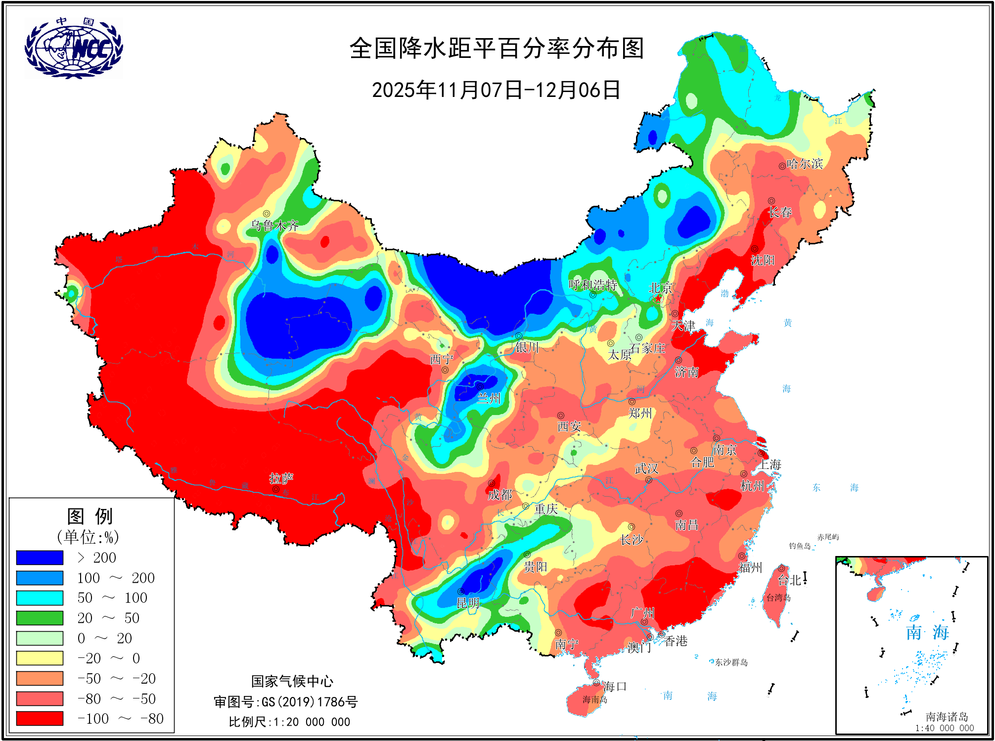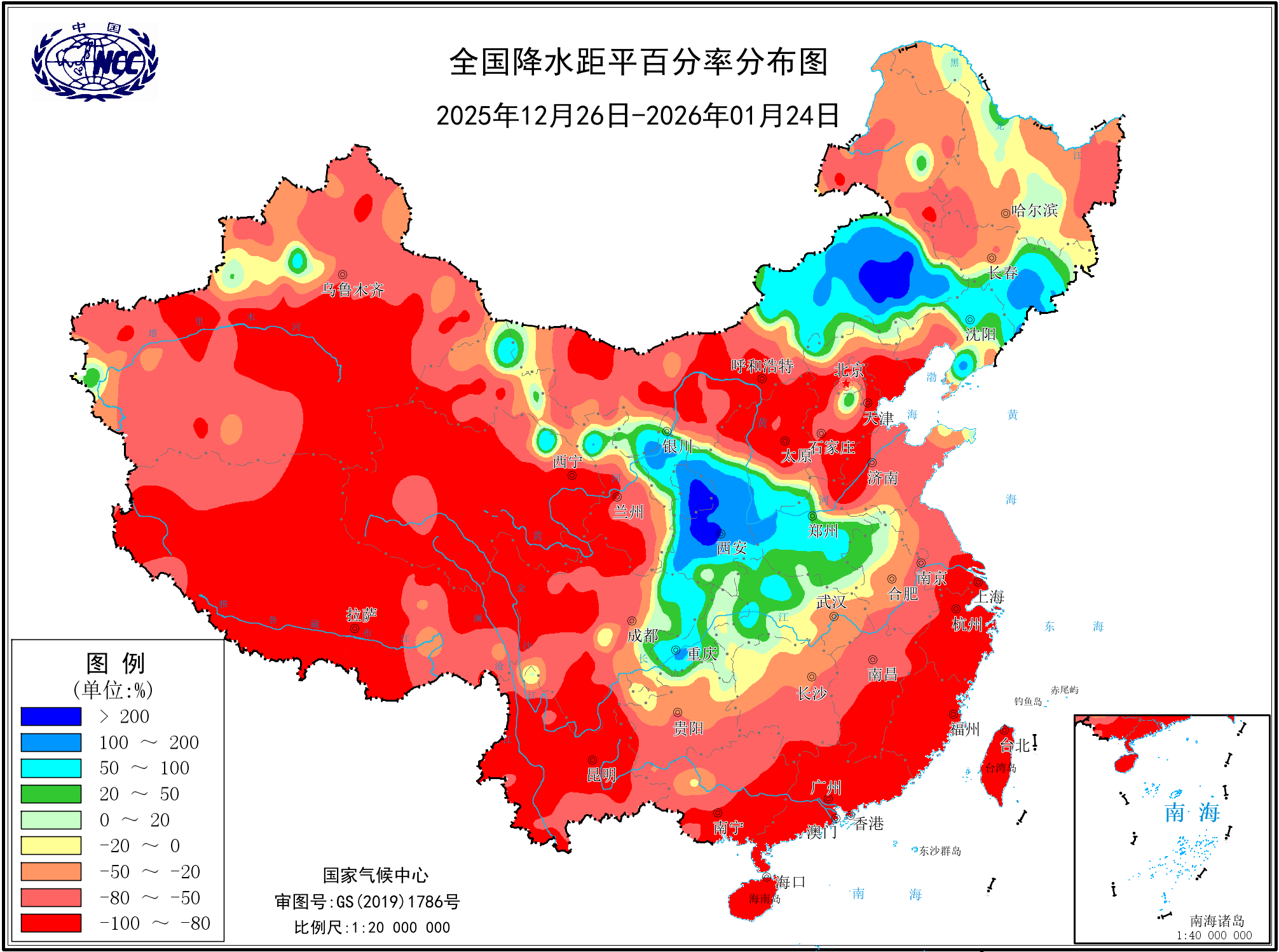 降水距平百分率(最近20天)