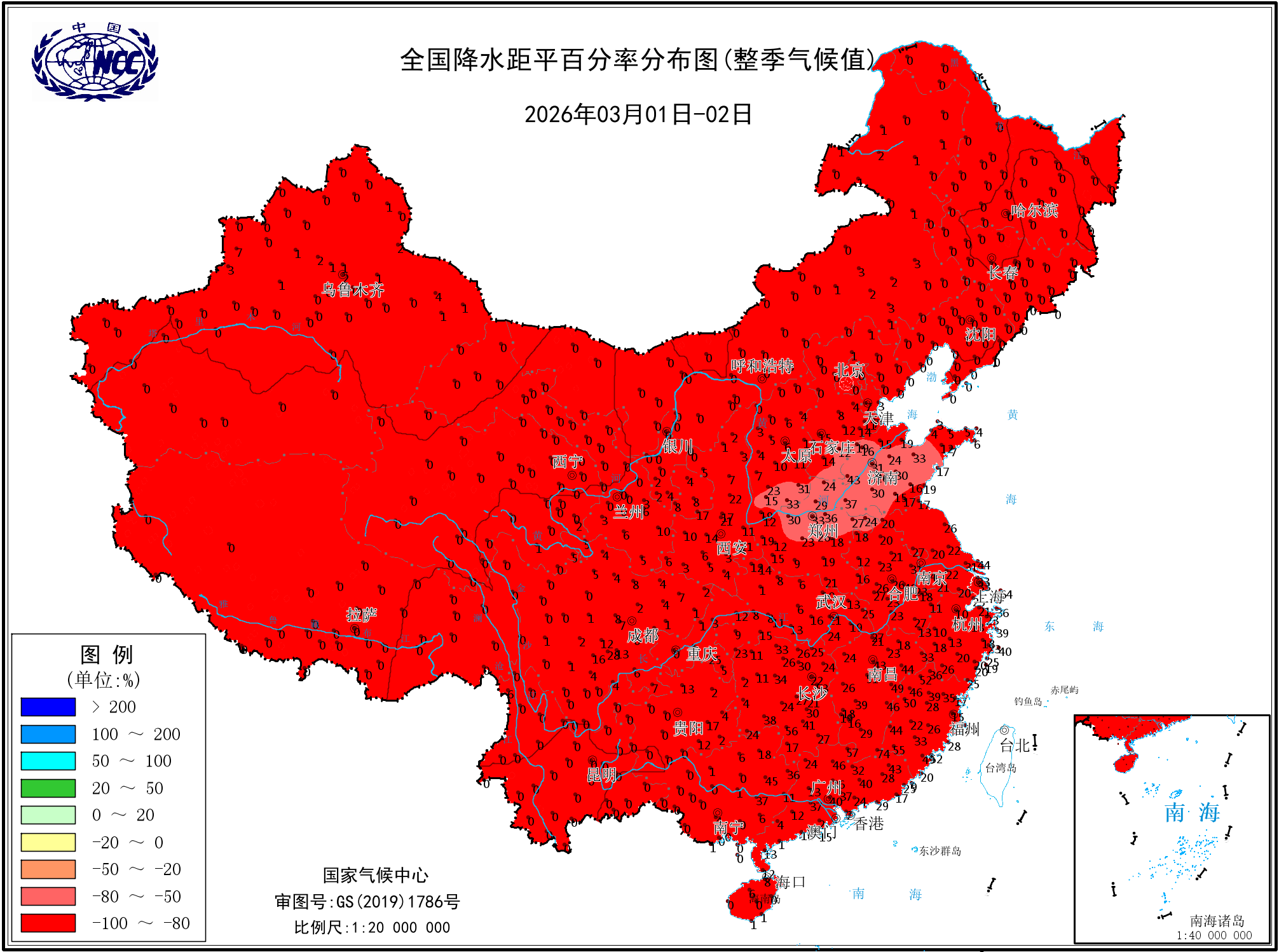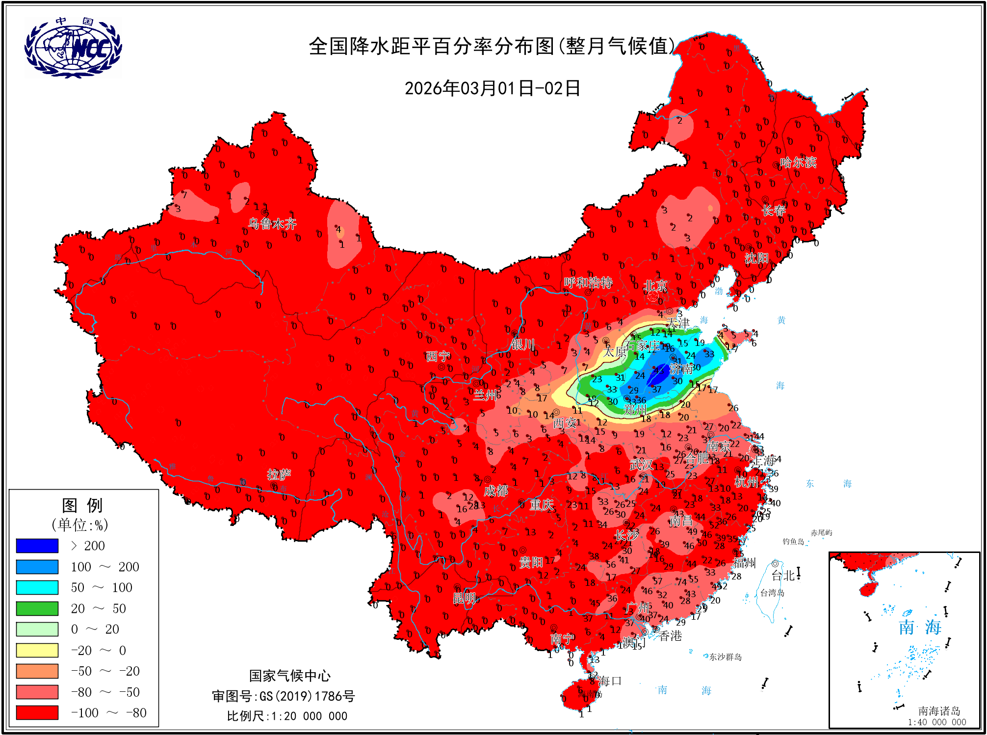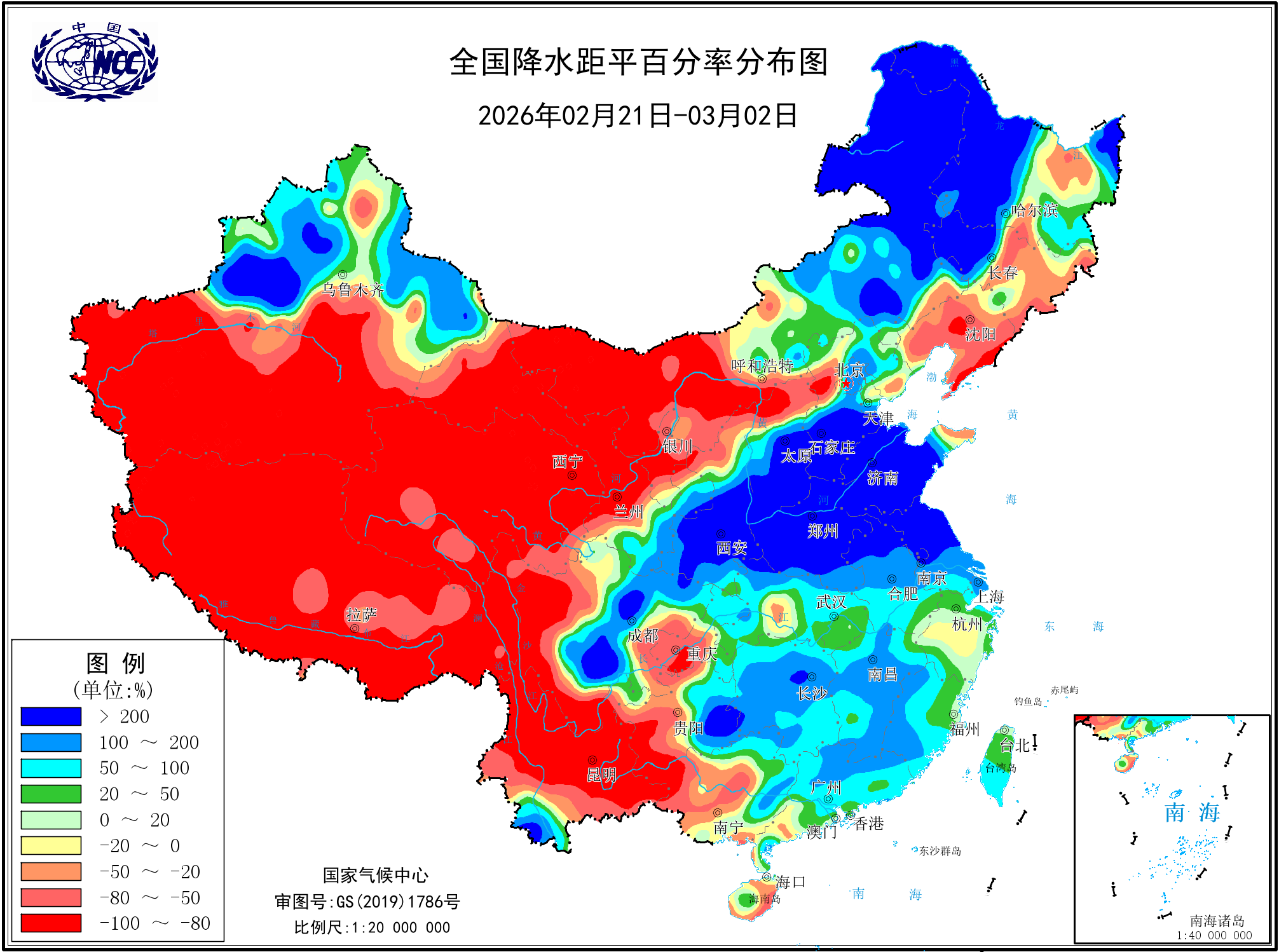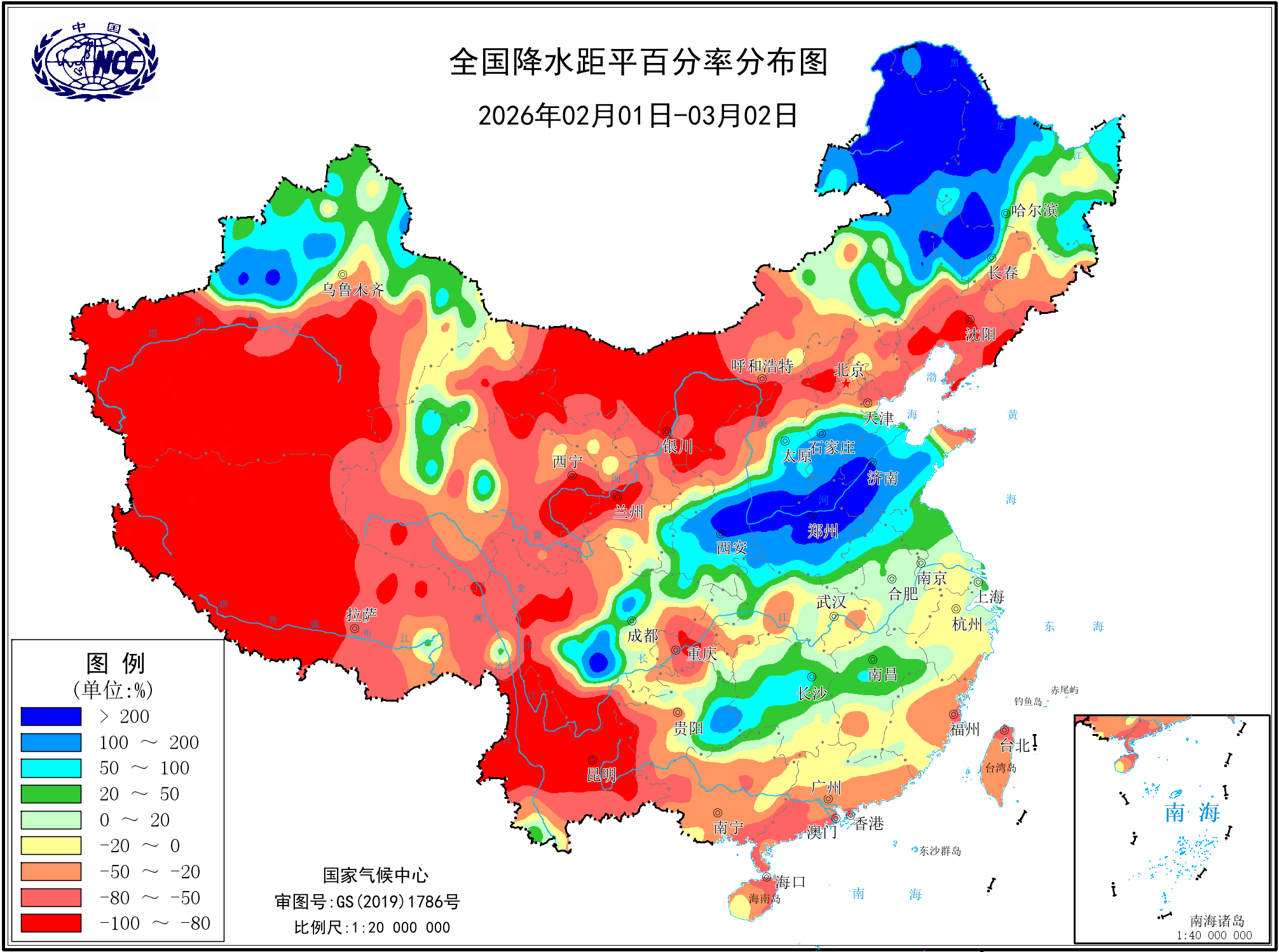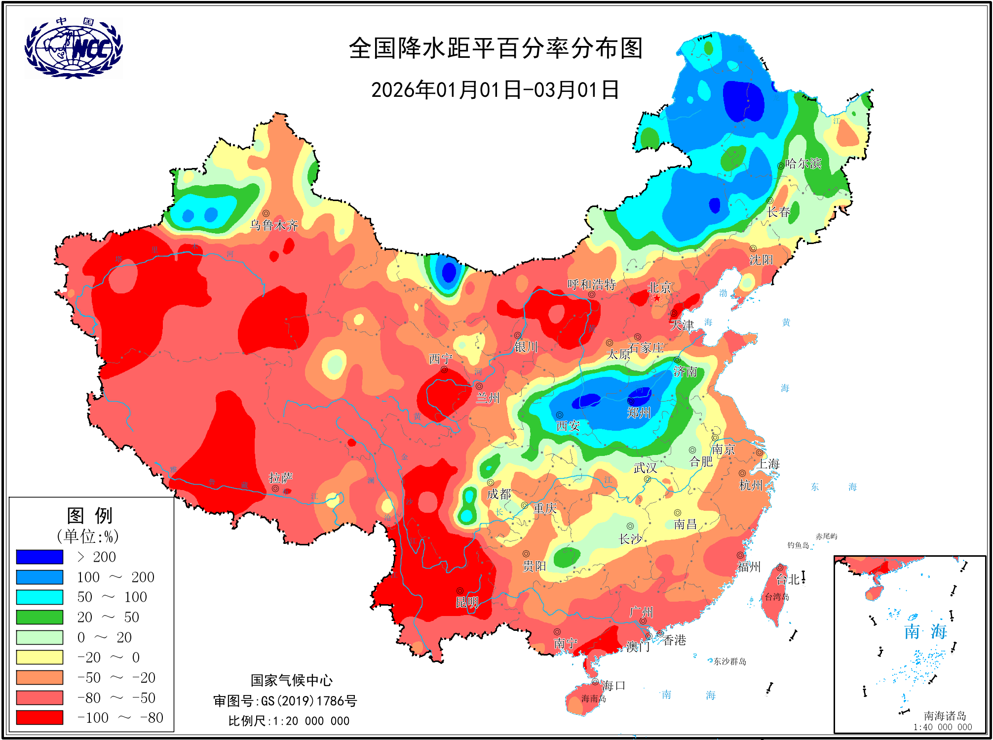 降水距平百分率(最近20天)
