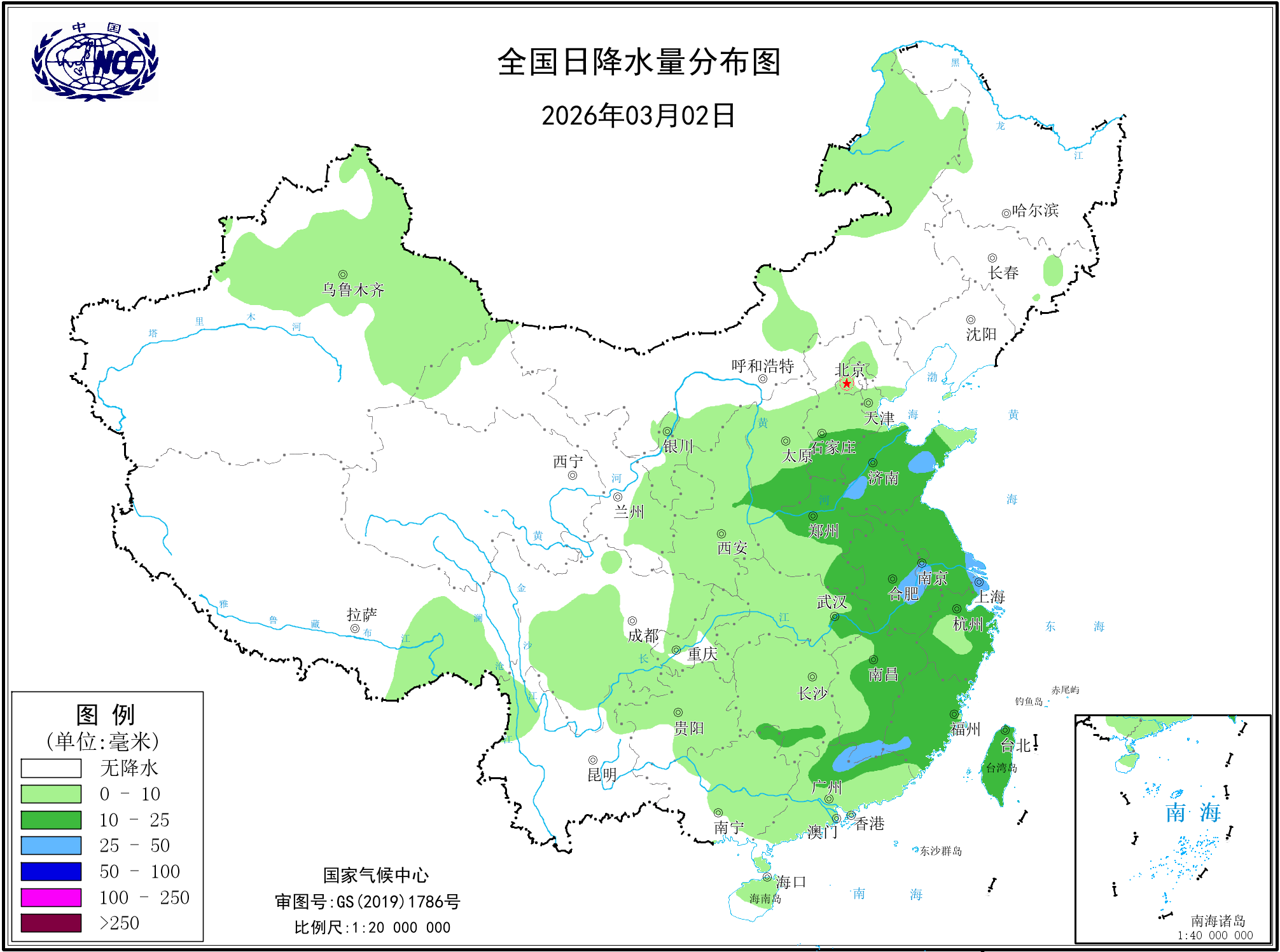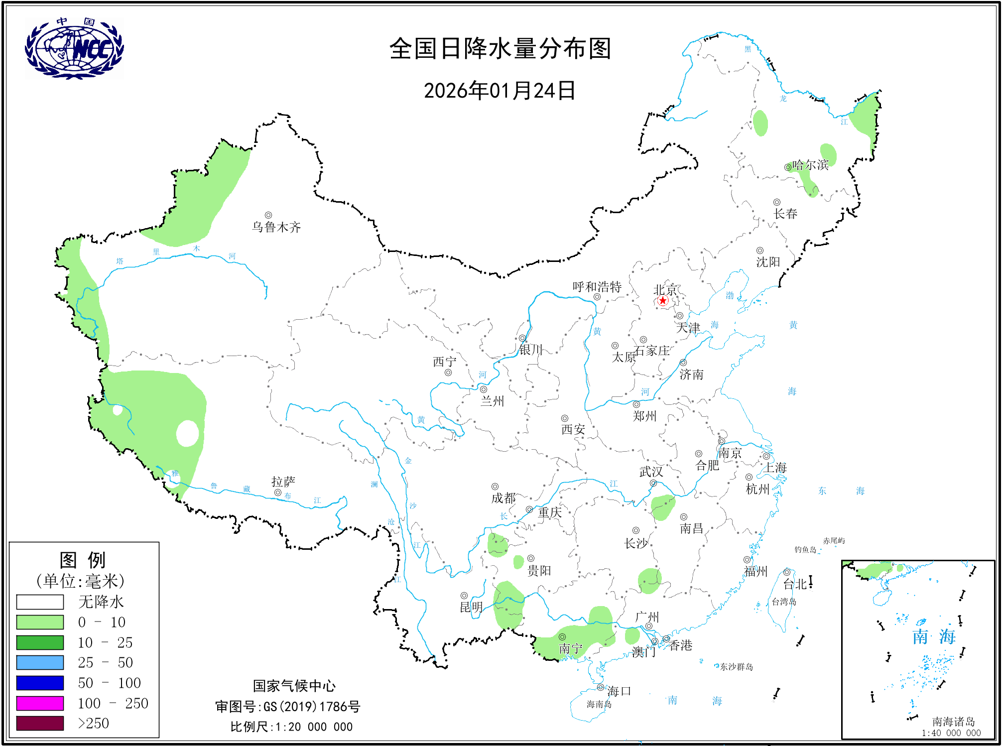 日降水量分布