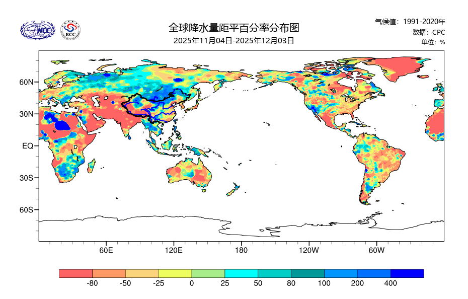 本月以来降水量距平百分率