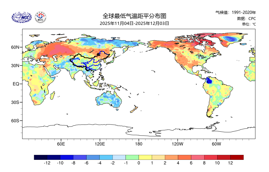 最低气温距平(最近30天)