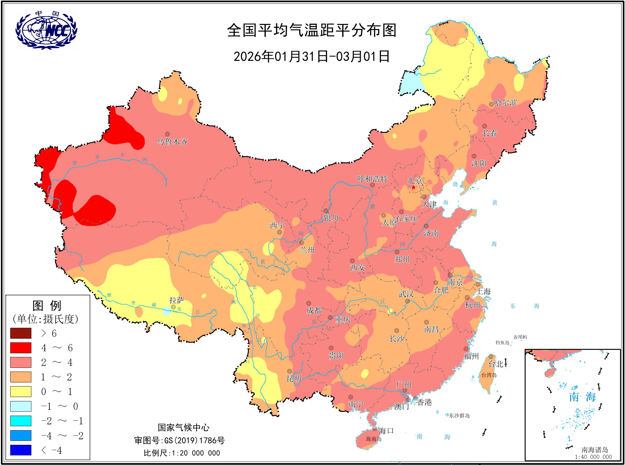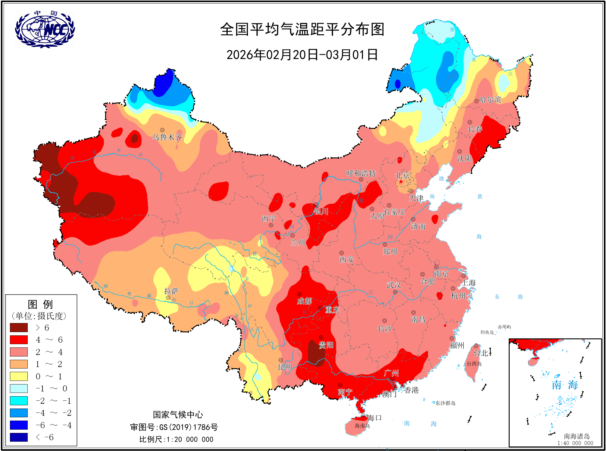 近20天平均气温距平