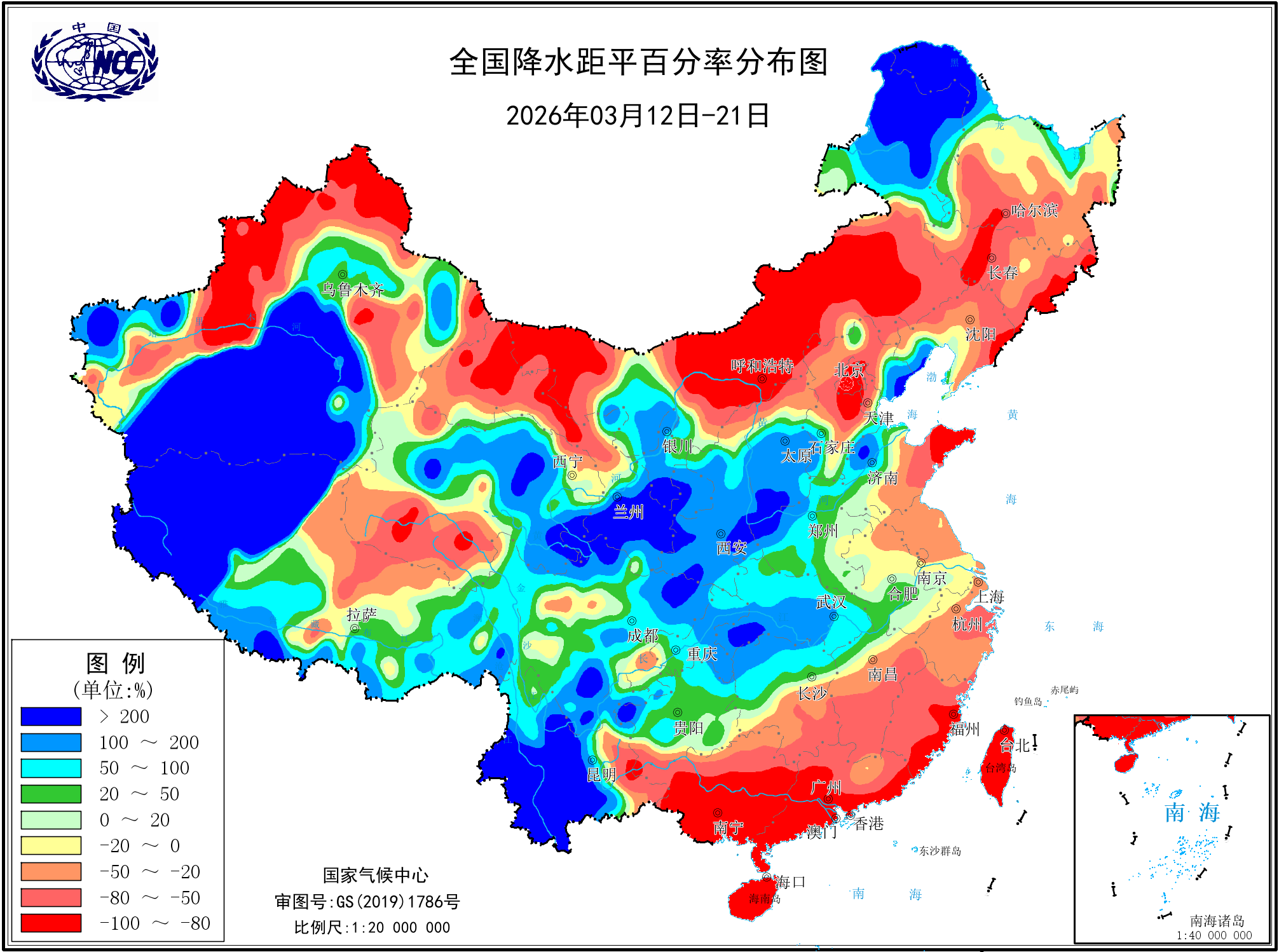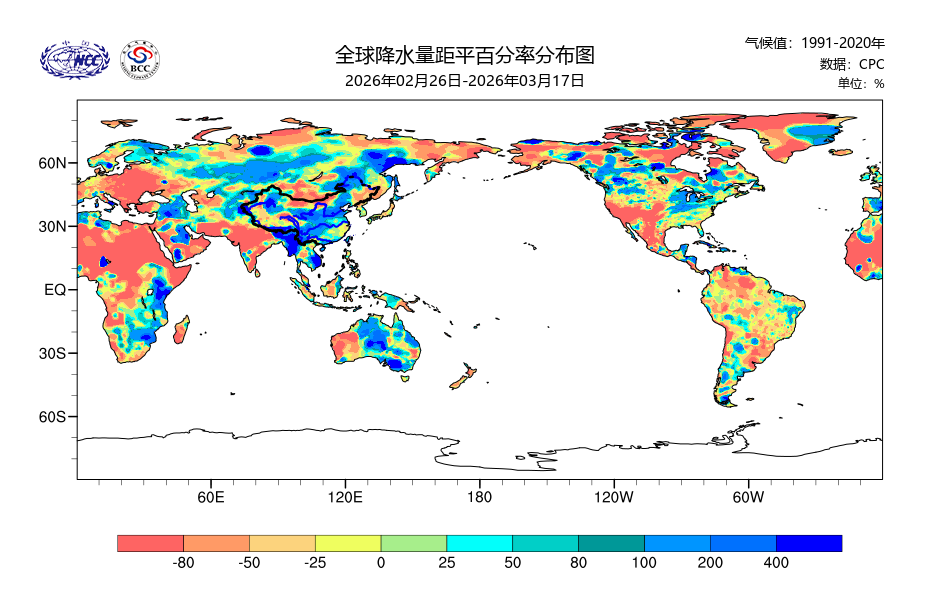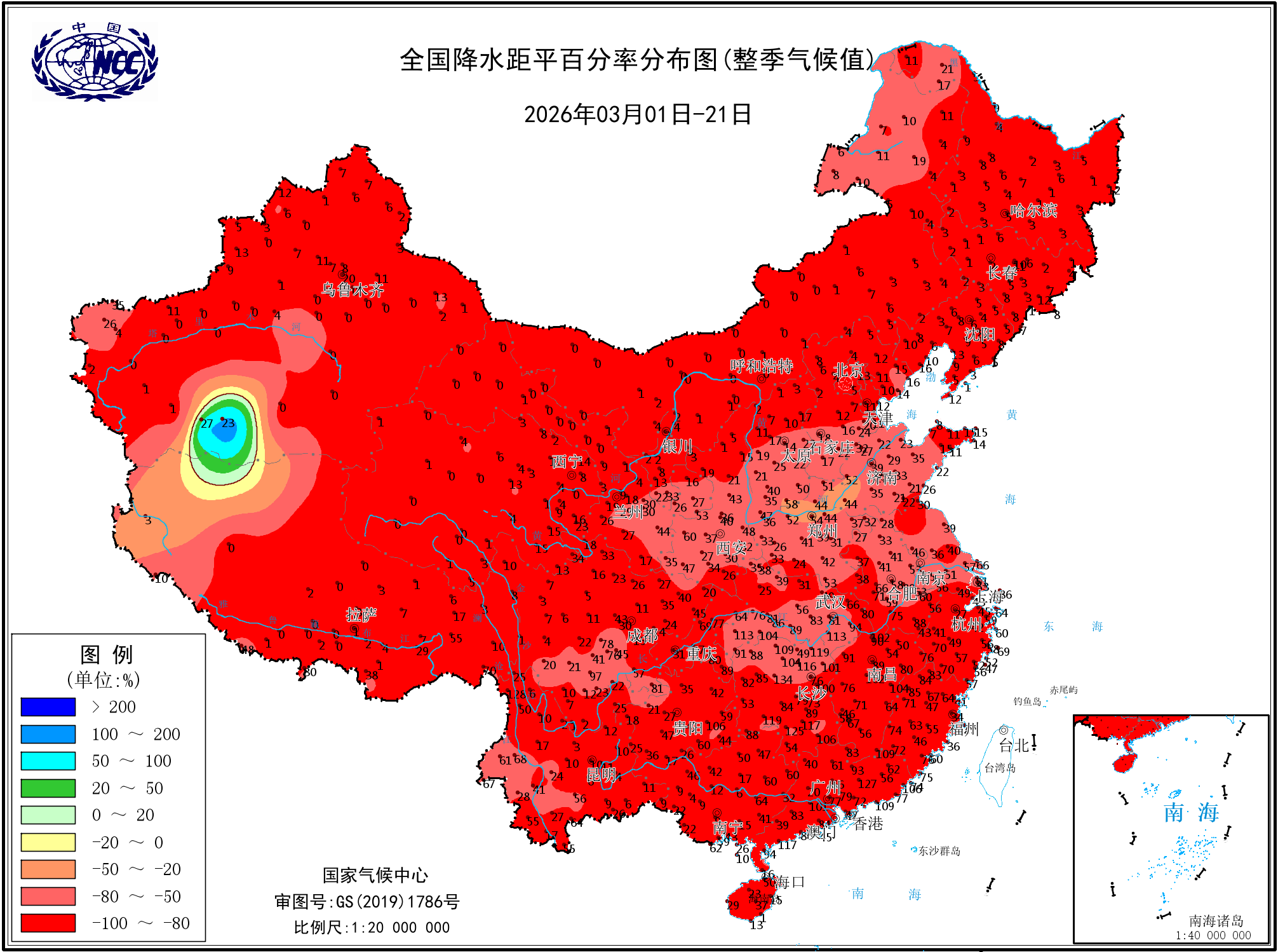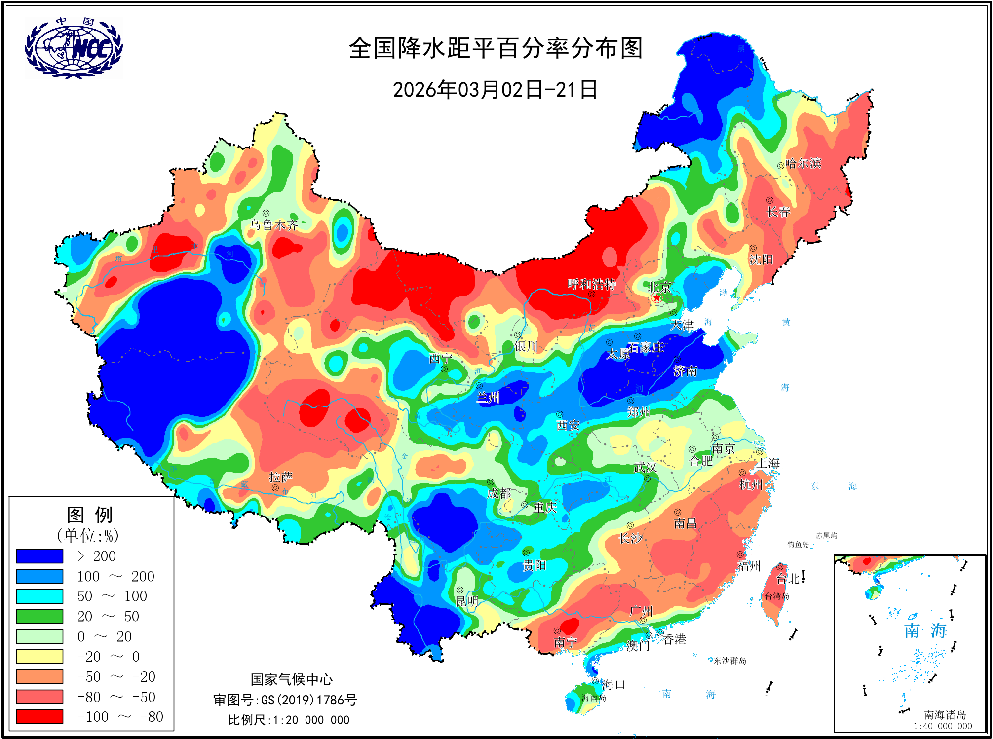 降水距平百分率(最近20天)