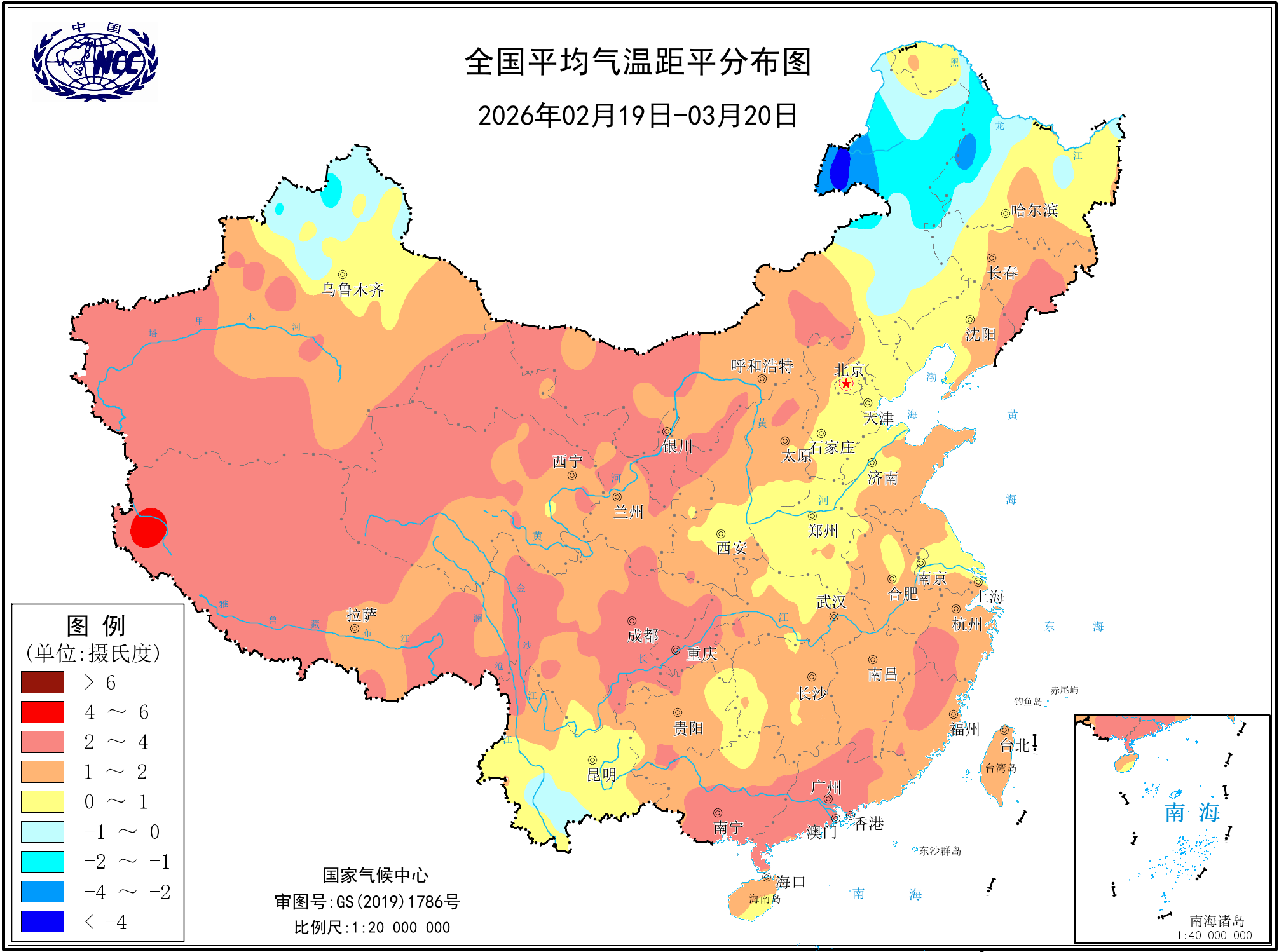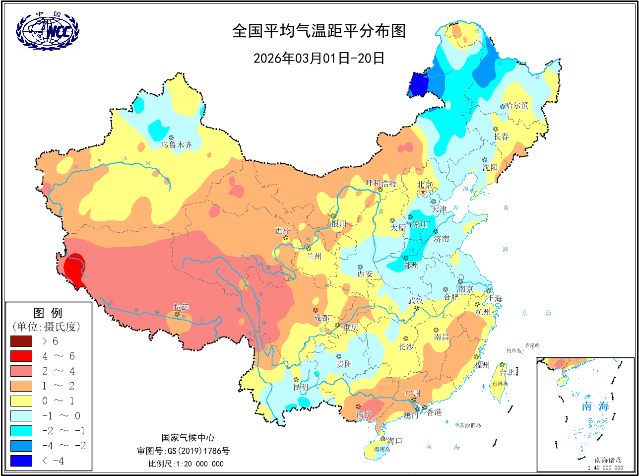 近20天平均气温距平
