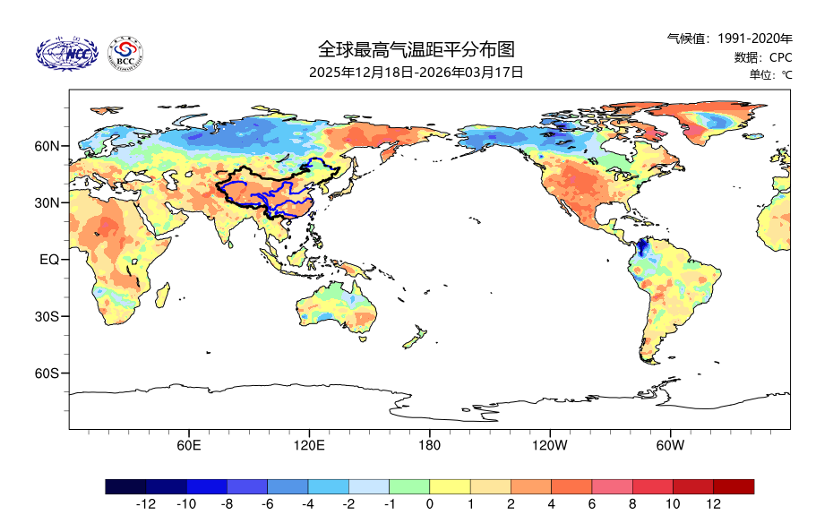 最高气温距平(最近90天)