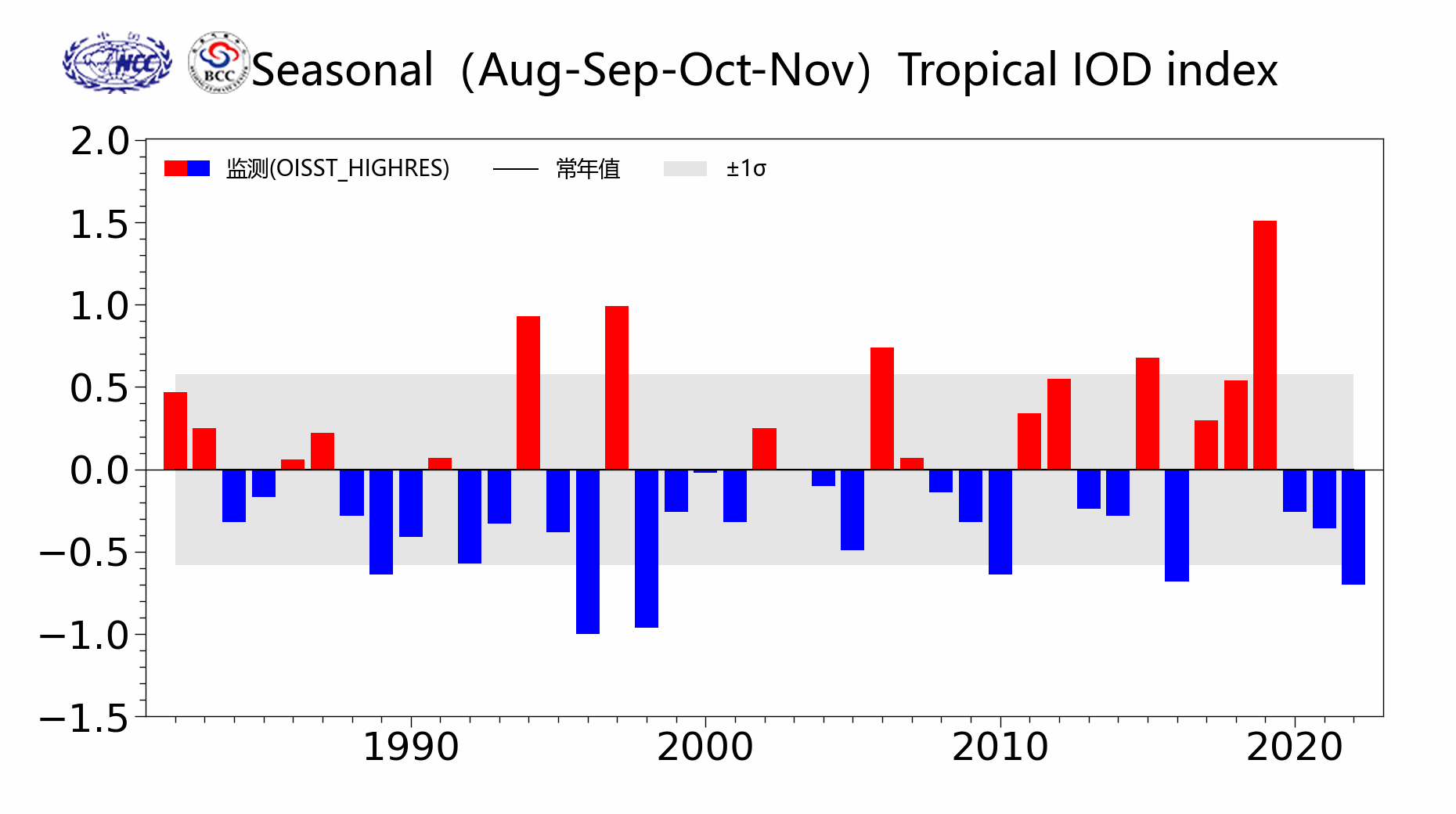Seasonal (Aug-Sep-Oct-Nov) Tropical IOD index