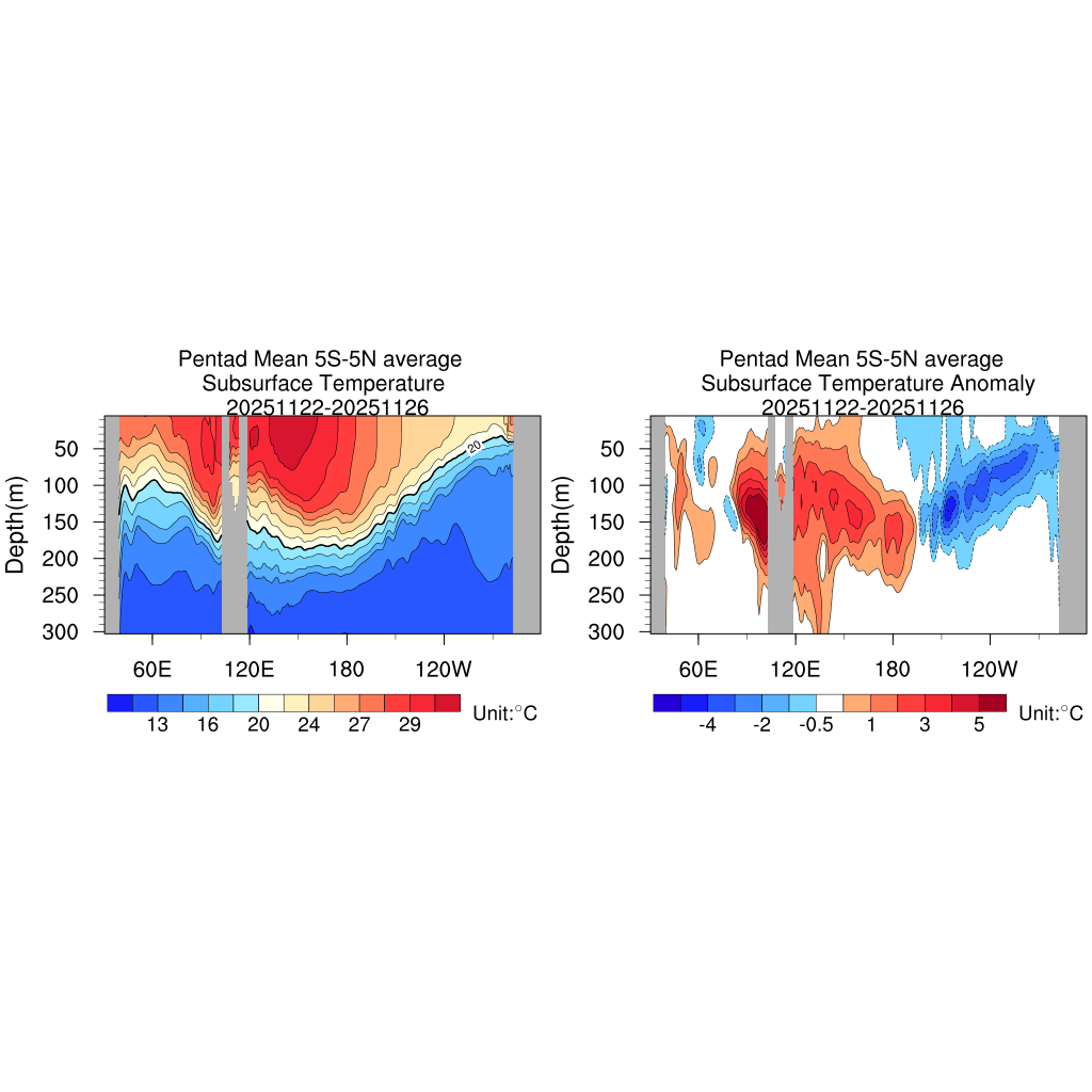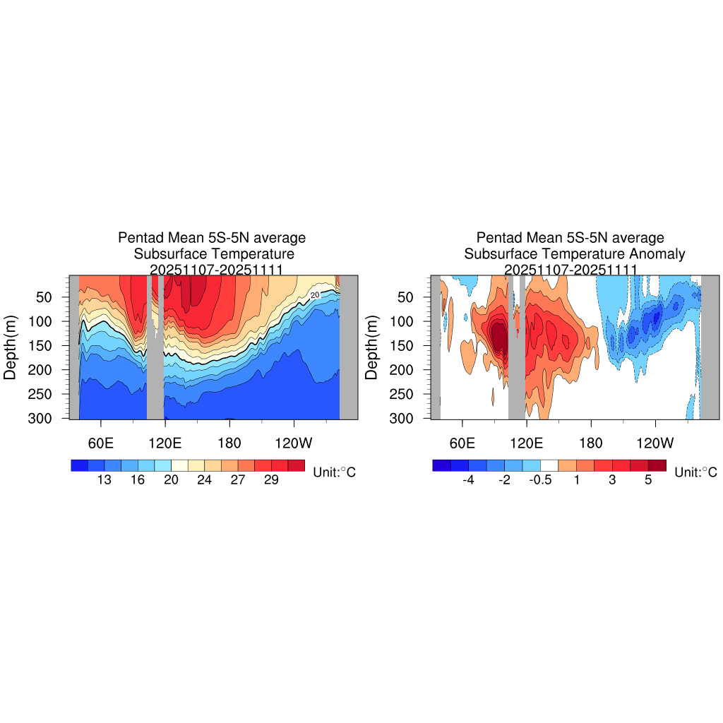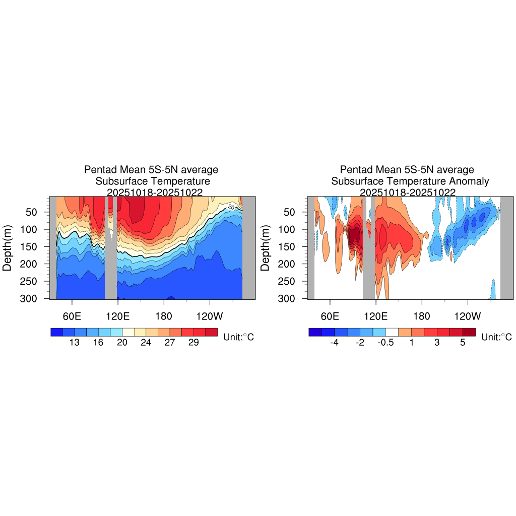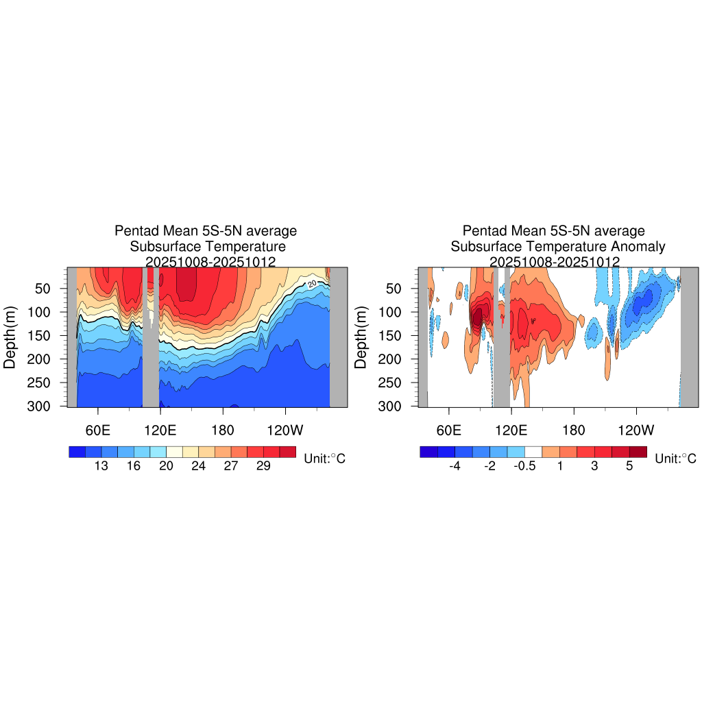 Pentad Mean Subsurface Temperature Anomaly Monthly Mean Subsurface Temperature Anomaly Pentad Mean Upper Ocean Heat Content Anomaly