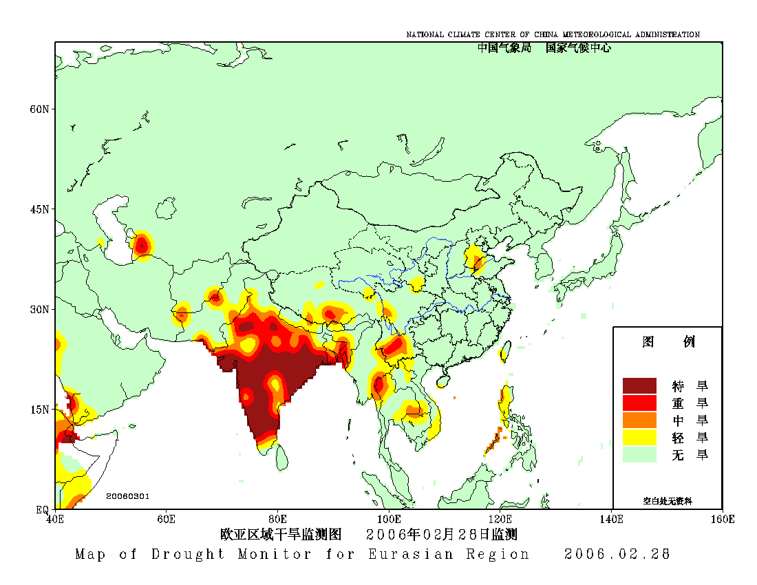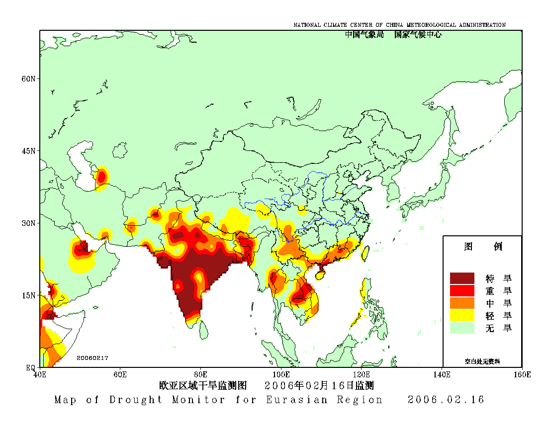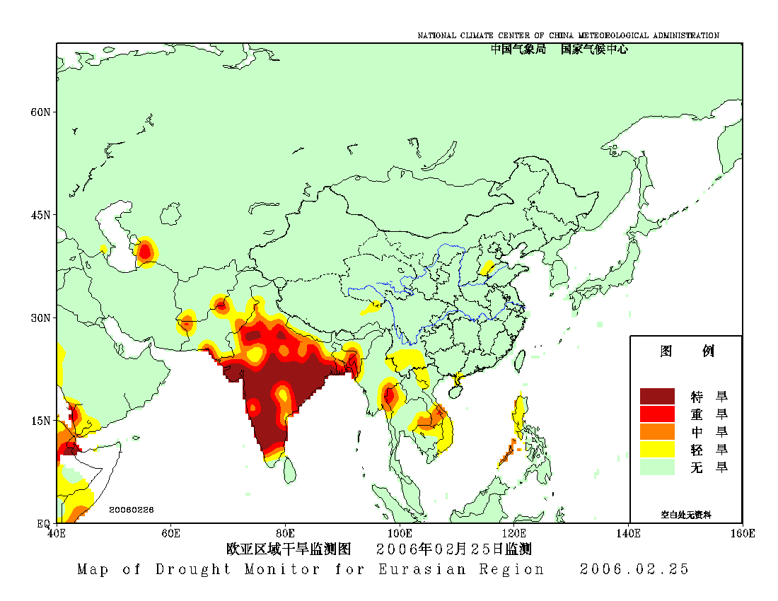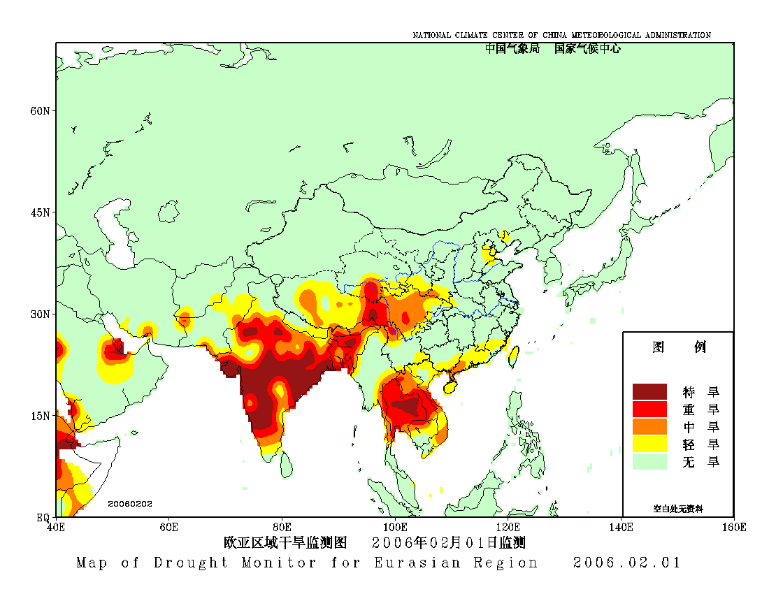 [中国](高分辨率):中国旱涝监测   [亚欧]:亚欧旱涝指数   [全球]:全球旱涝指数   [旱涝指数]:指数文件   [SPI]:SPI指数   [降水]:降水距平百分率   [土壤]:土壤相对湿度   [公报]:中国旱涝气候公报