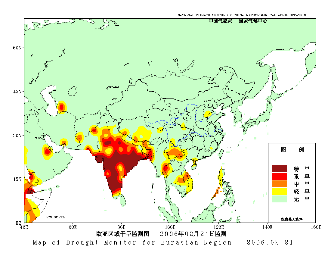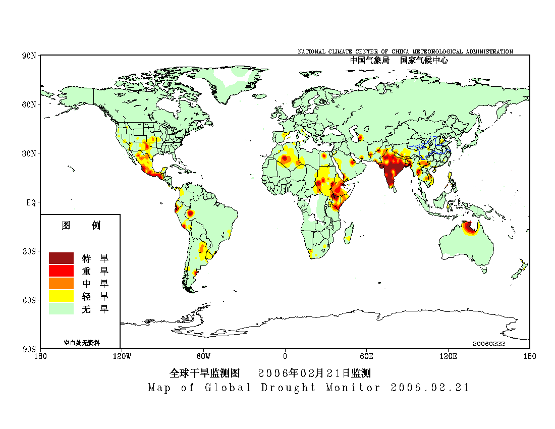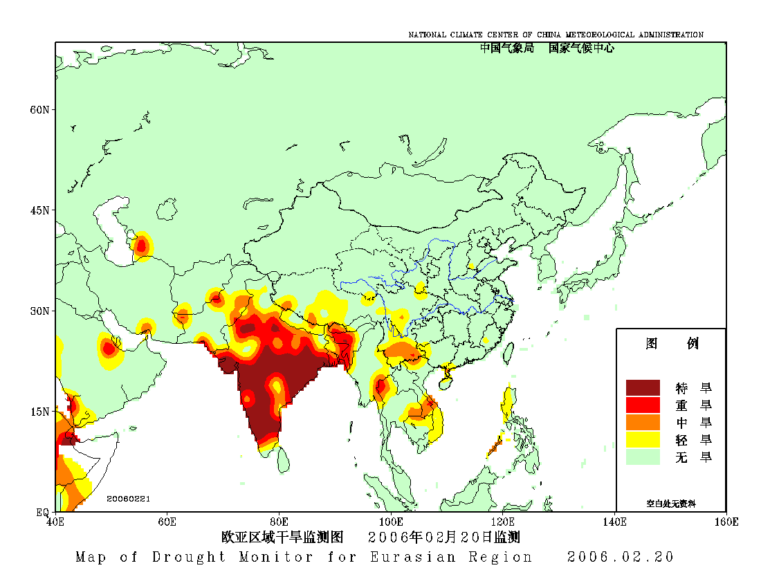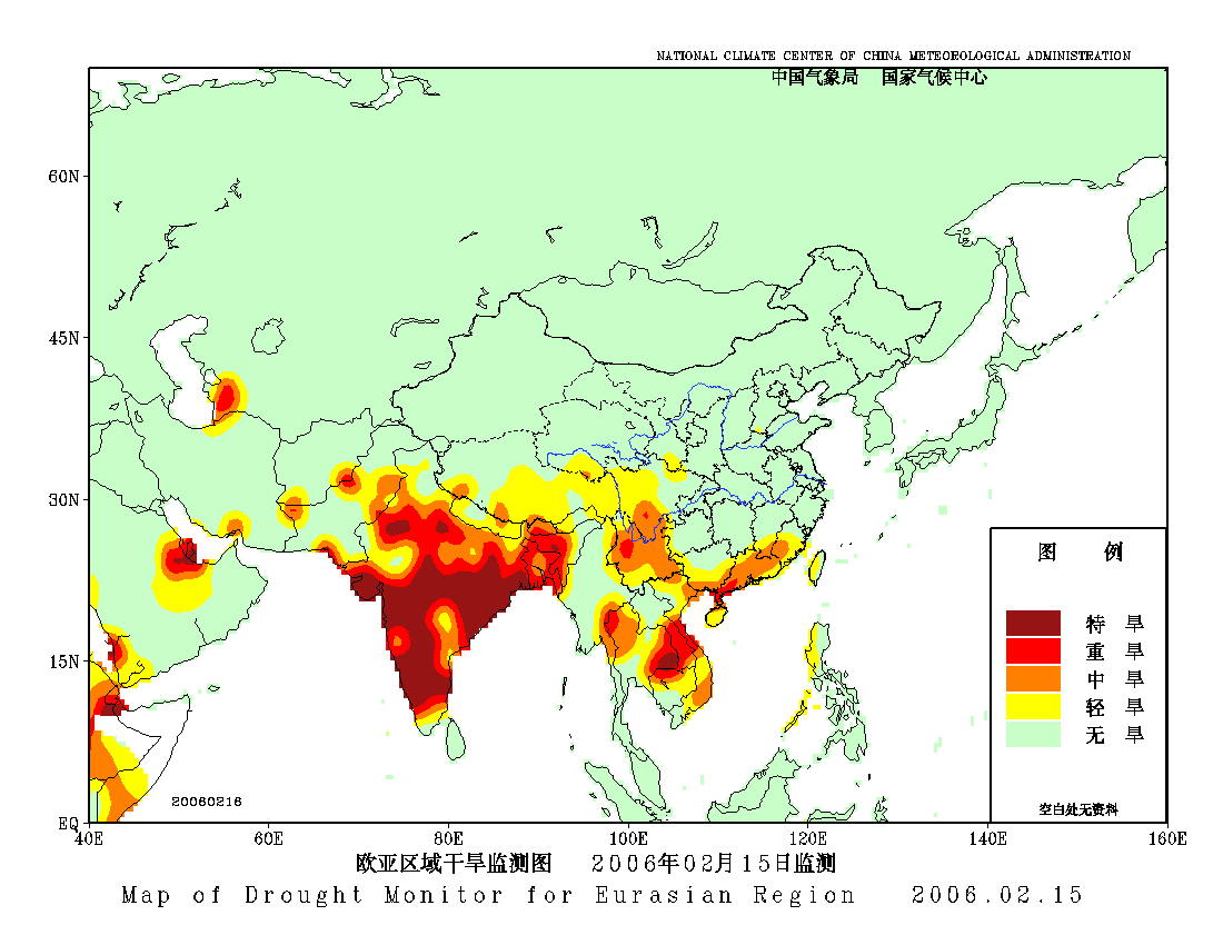 [中国](高分辨率):中国旱涝监测   [亚欧]:亚欧旱涝指数   [全球]:全球旱涝指数   [旱涝指数]:指数文件   [SPI]:SPI指数   [降水]:降水距平百分率   [土壤]:土壤相对湿度   [公报]:中国旱涝气候公报