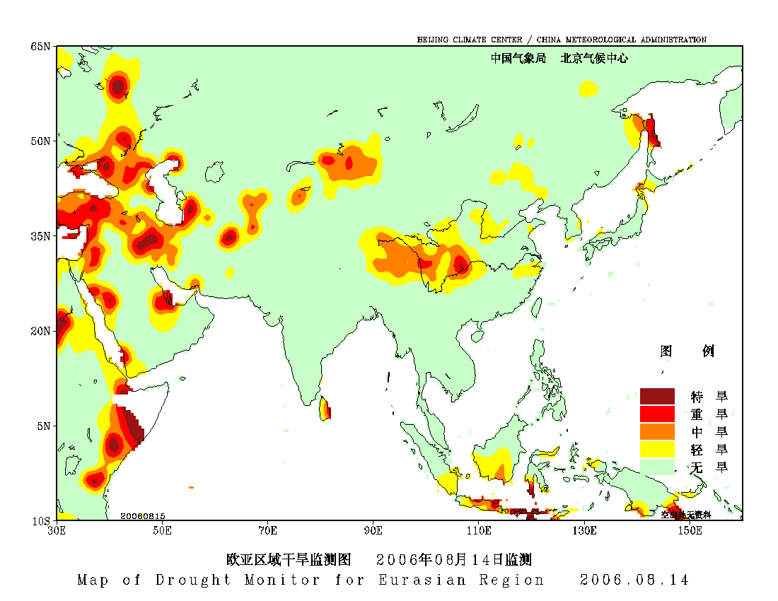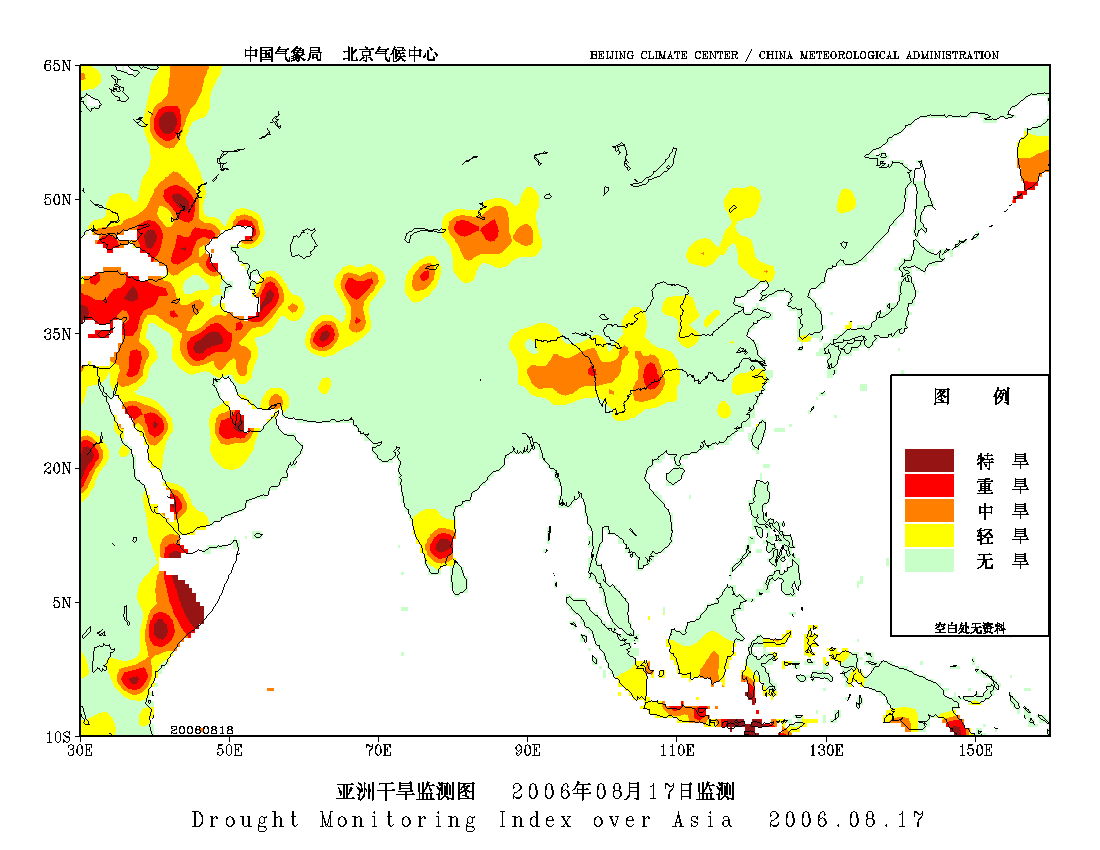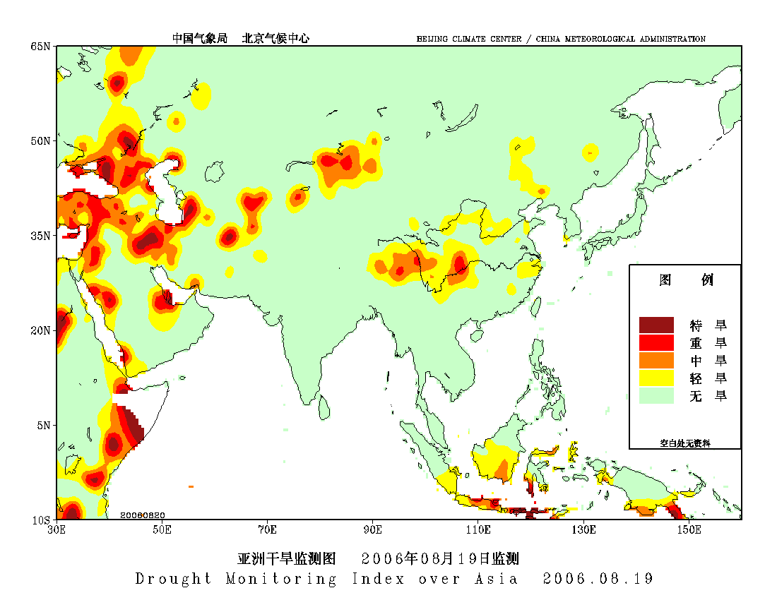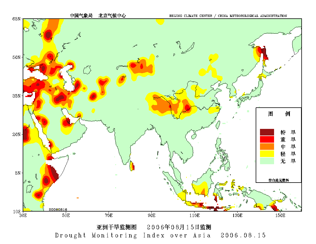 [中国](高分辨率):中国旱涝监测   [亚欧]:亚欧旱涝指数   [全球]:全球旱涝指数   [旱涝指数]:指数文件   [SPI]:SPI指数   [降水]:降水距平百分率   [土壤]:土壤相对湿度   [公报]:中国旱涝气候公报