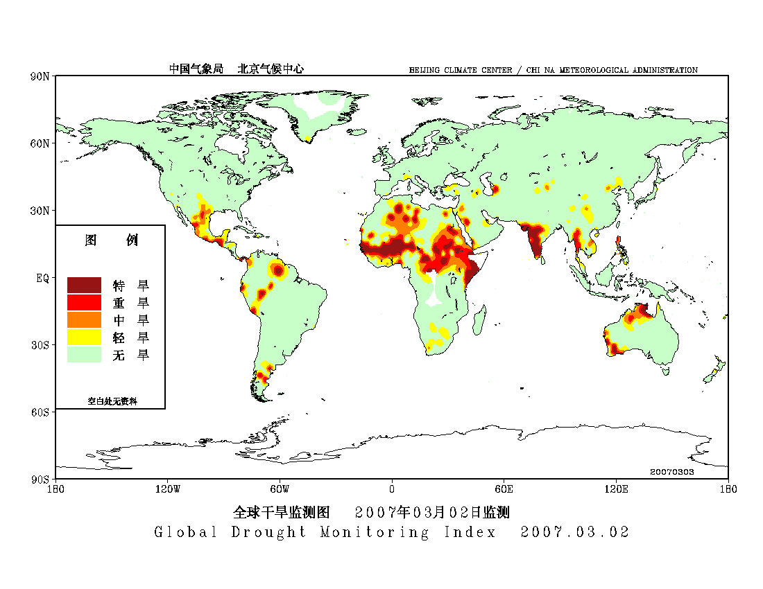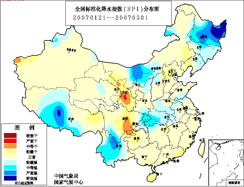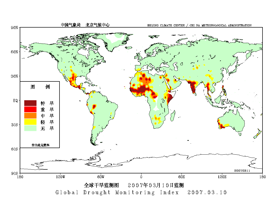 [中国](高分辨率):中国旱涝监测   [亚欧]:亚欧旱涝指数   [全球]:全球旱涝指数   [旱涝指数]:指数文件   [SPI]:SPI指数   [降水]:降水距平百分率   [土壤]:土壤相对湿度   [公报]:中国旱涝气候公报