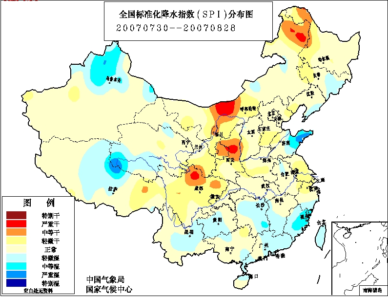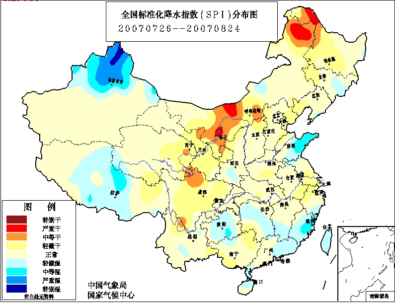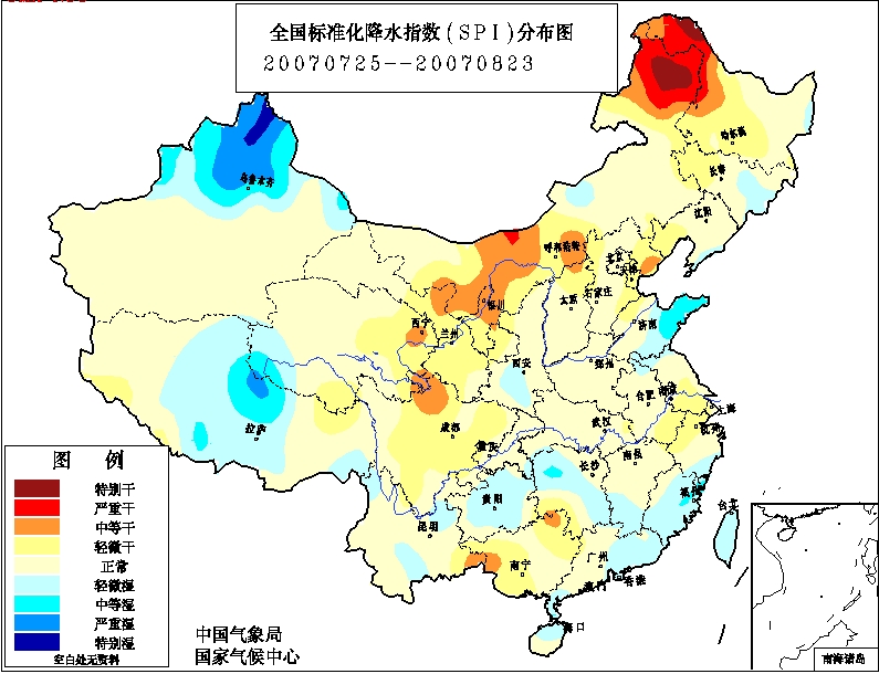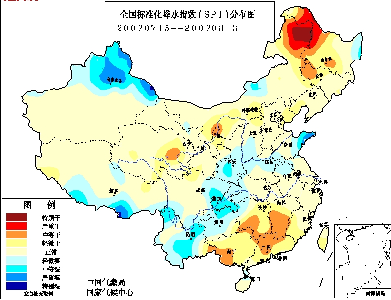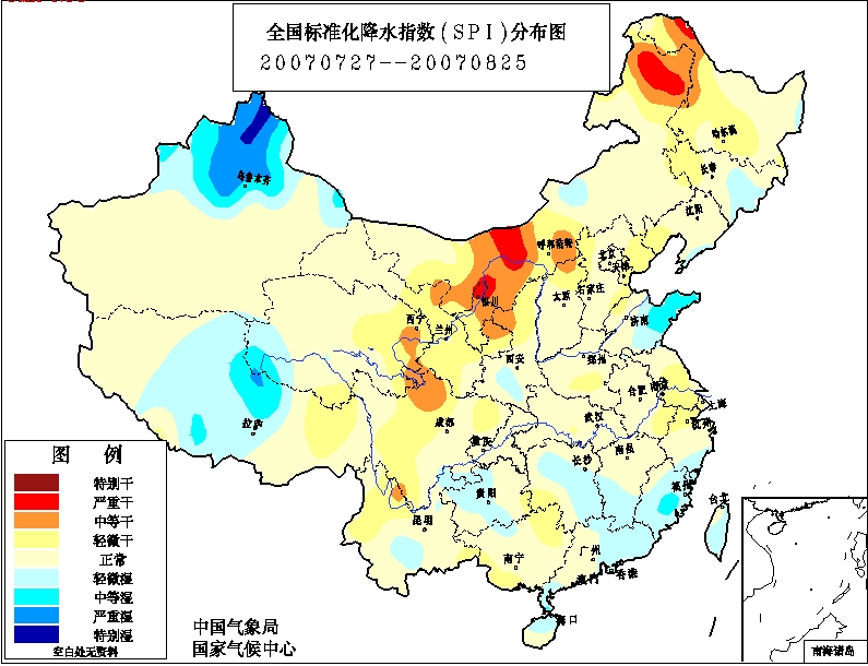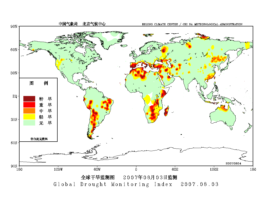[中国](高分辨率):中国旱涝监测   [亚欧]:亚欧旱涝指数   [全球]:全球旱涝指数   [旱涝指数]:指数文件   [SPI]:SPI指数   [降水]:降水距平百分率   [土壤]:土壤相对湿度   [公报]:中国旱涝气候公报