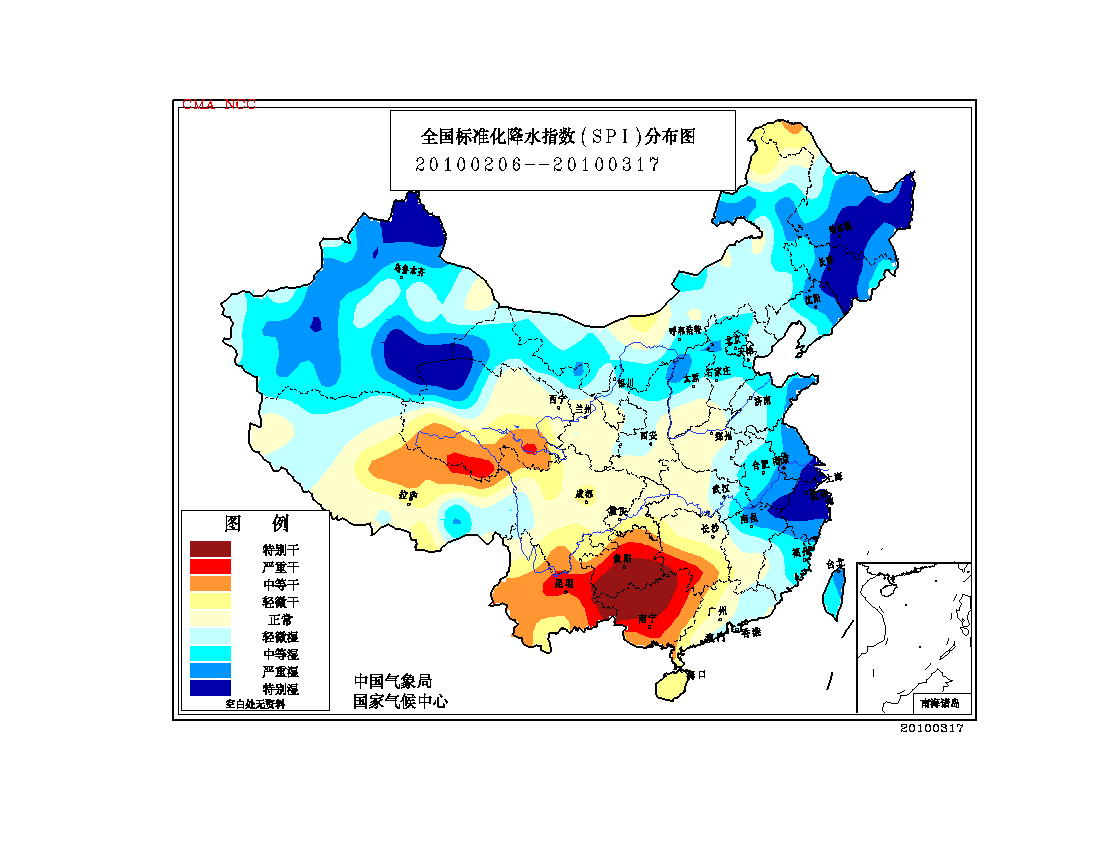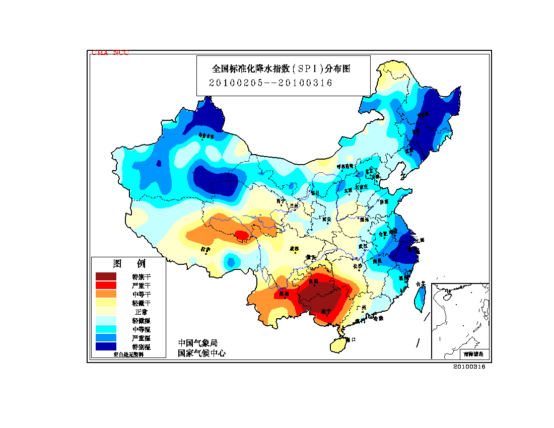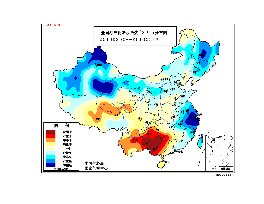 [中国](高分辨率):中国旱涝监测   [亚欧]:亚欧旱涝指数   [全球]:全球旱涝指数   [旱涝指数]:指数文件   [SPI]:SPI指数   [降水]:降水距平百分率   [土壤]:土壤相对湿度   [公报]:中国旱涝气候公报