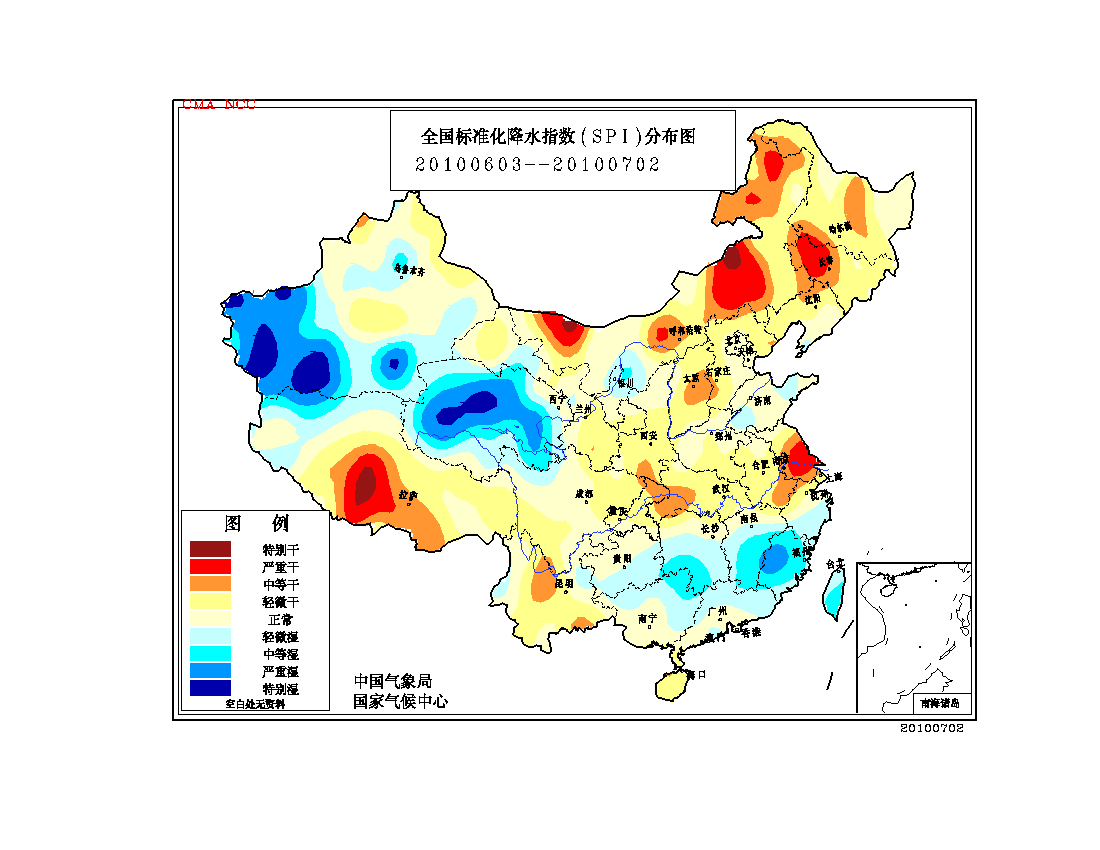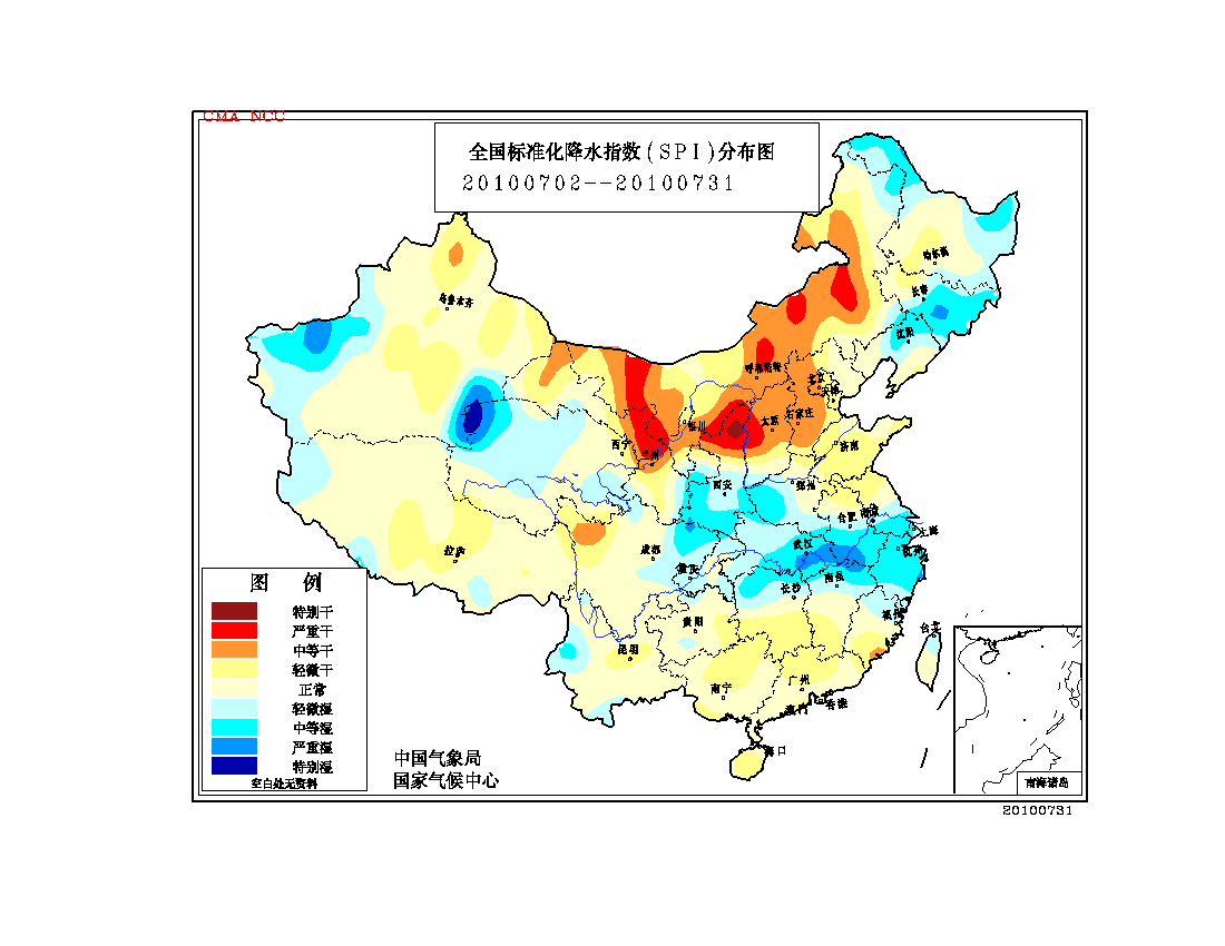 [中国](高分辨率):中国旱涝监测   [亚欧]:亚欧旱涝指数   [全球]:全球旱涝指数   [旱涝指数]:指数文件   [SPI]:SPI指数   [降水]:降水距平百分率   [土壤]:土壤相对湿度   [公报]:中国旱涝气候公报