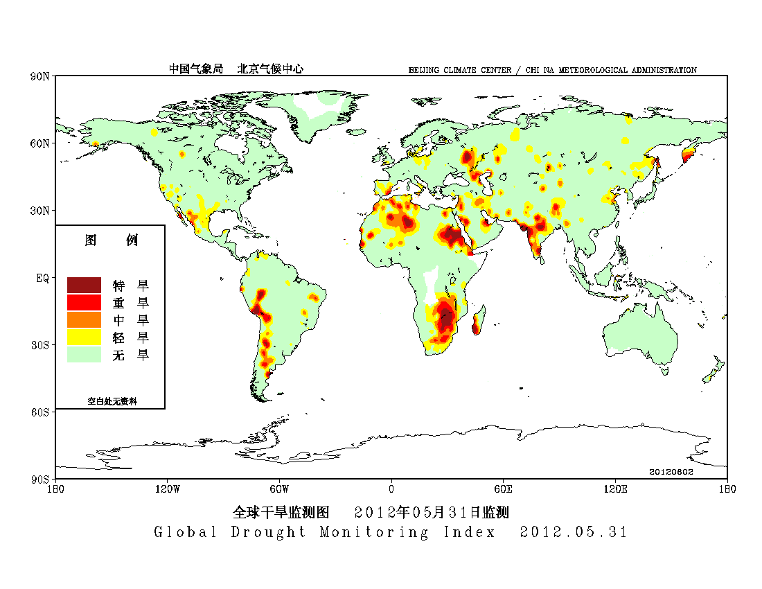 [中国](高分辨率):中国旱涝监测   [亚欧]:亚欧旱涝指数   [全球]:全球旱涝指数   [旱涝指数]:指数文件   [SPI]:SPI指数   [降水]:降水距平百分率   [土壤]:土壤相对湿度   [公报]:中国旱涝气候公报