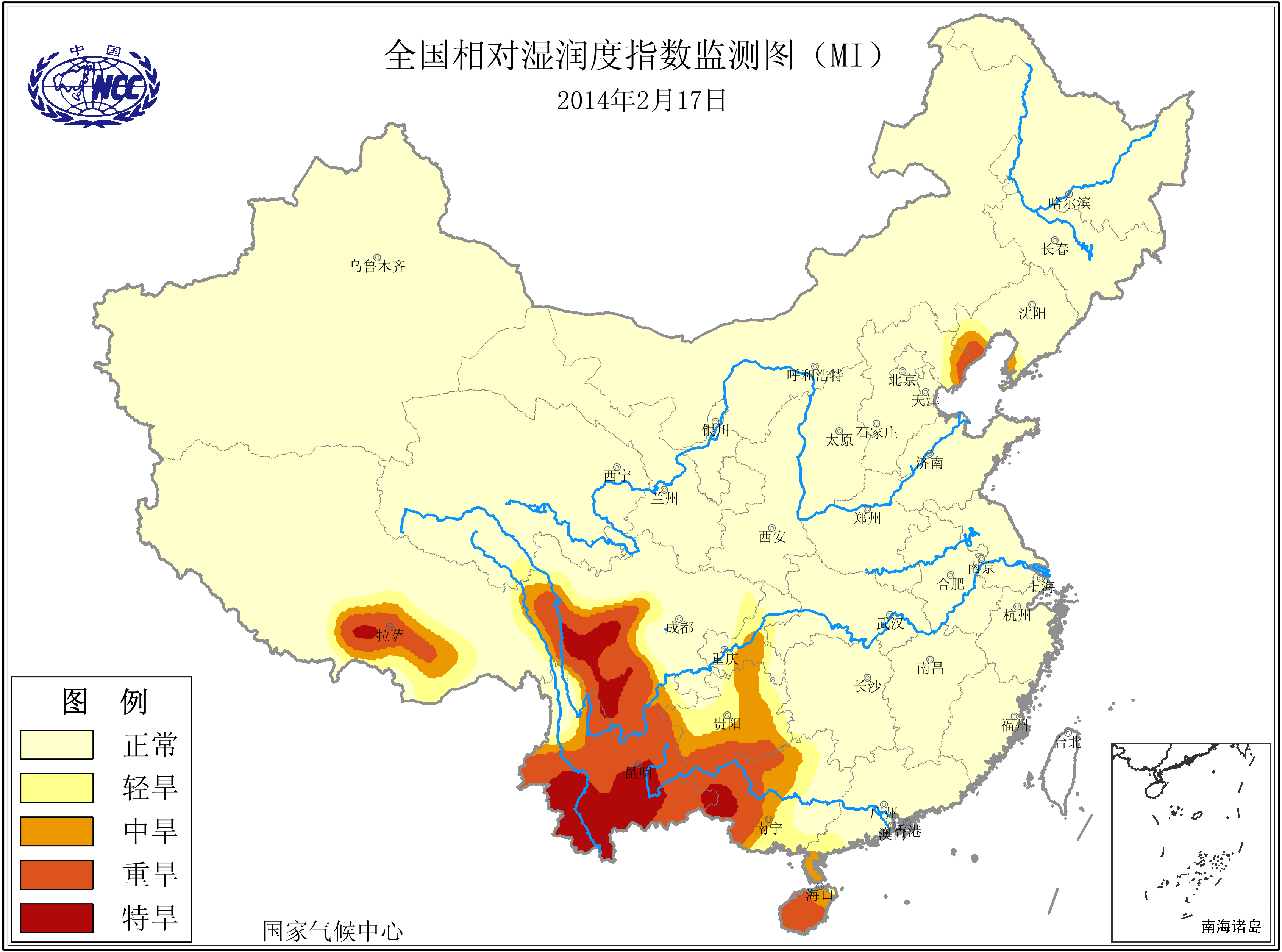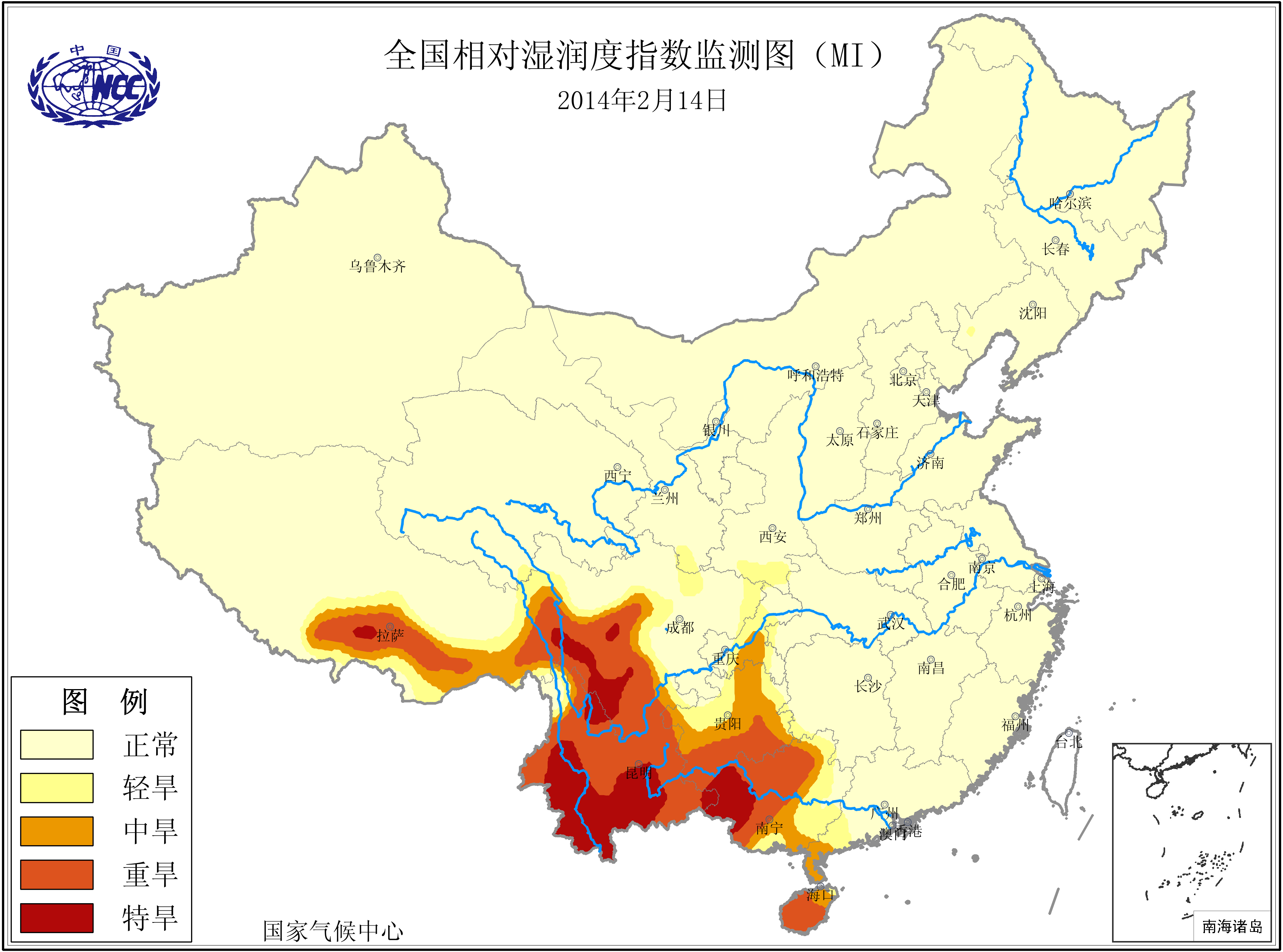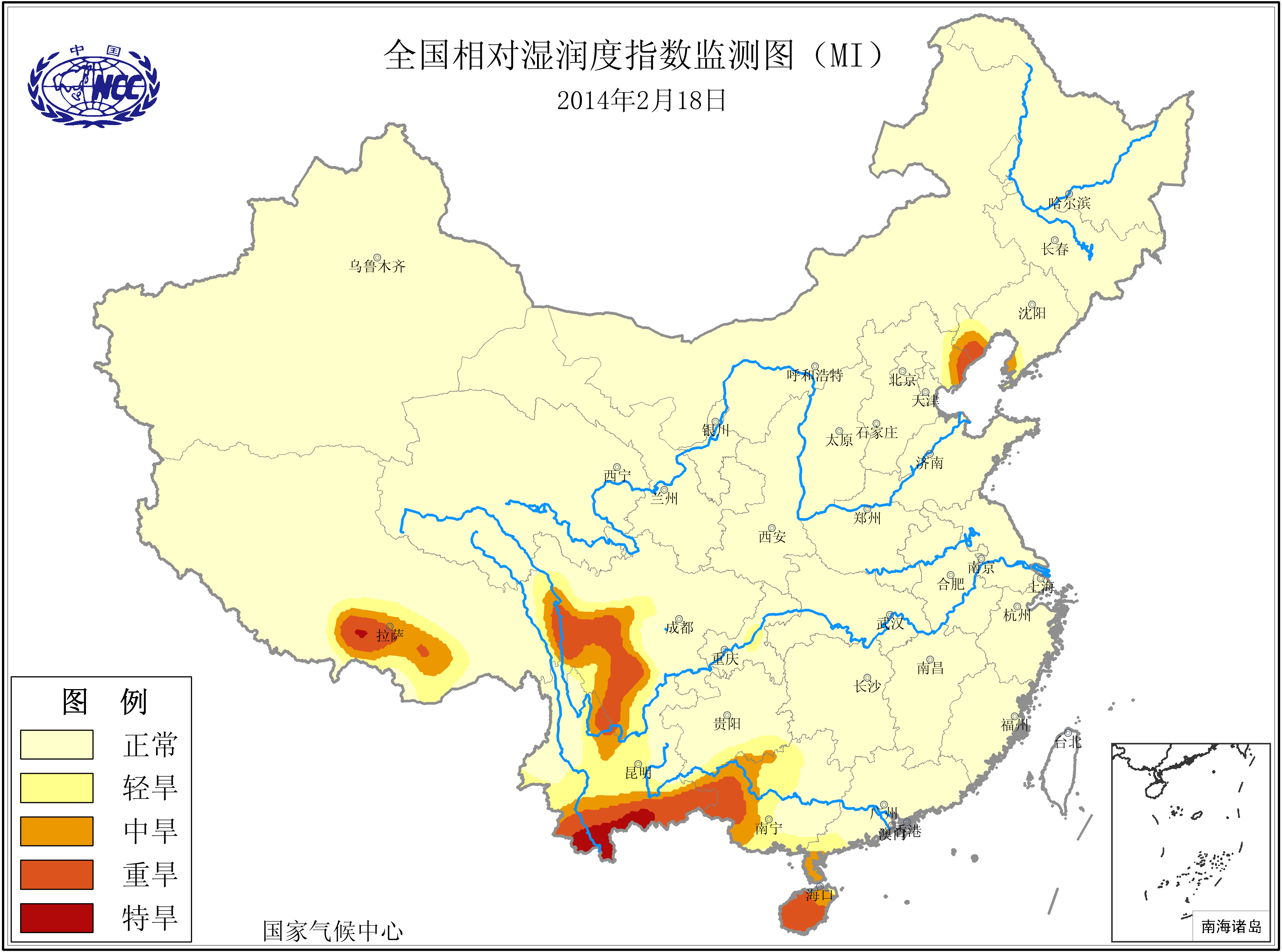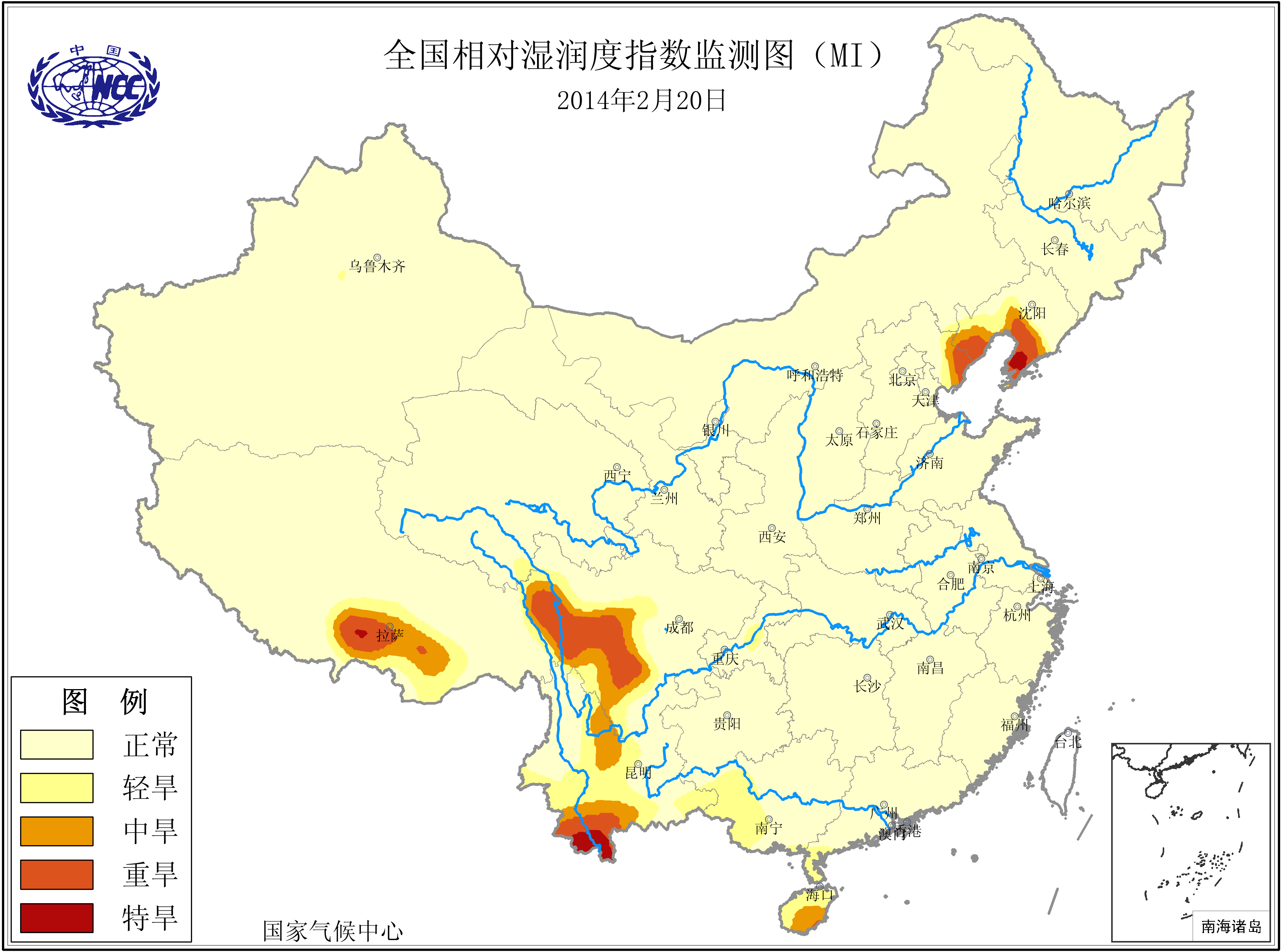 [中国](高分辨率):中国旱涝监测   [亚欧]:亚欧旱涝指数   [全球]:全球旱涝指数   [旱涝指数]:指数文件   [SPI]:SPI指数   [降水]:降水距平百分率   [土壤]:土壤相对湿度   [公报]:中国旱涝气候公报