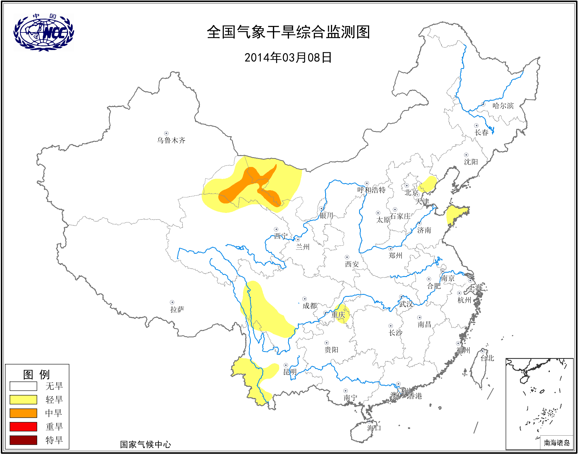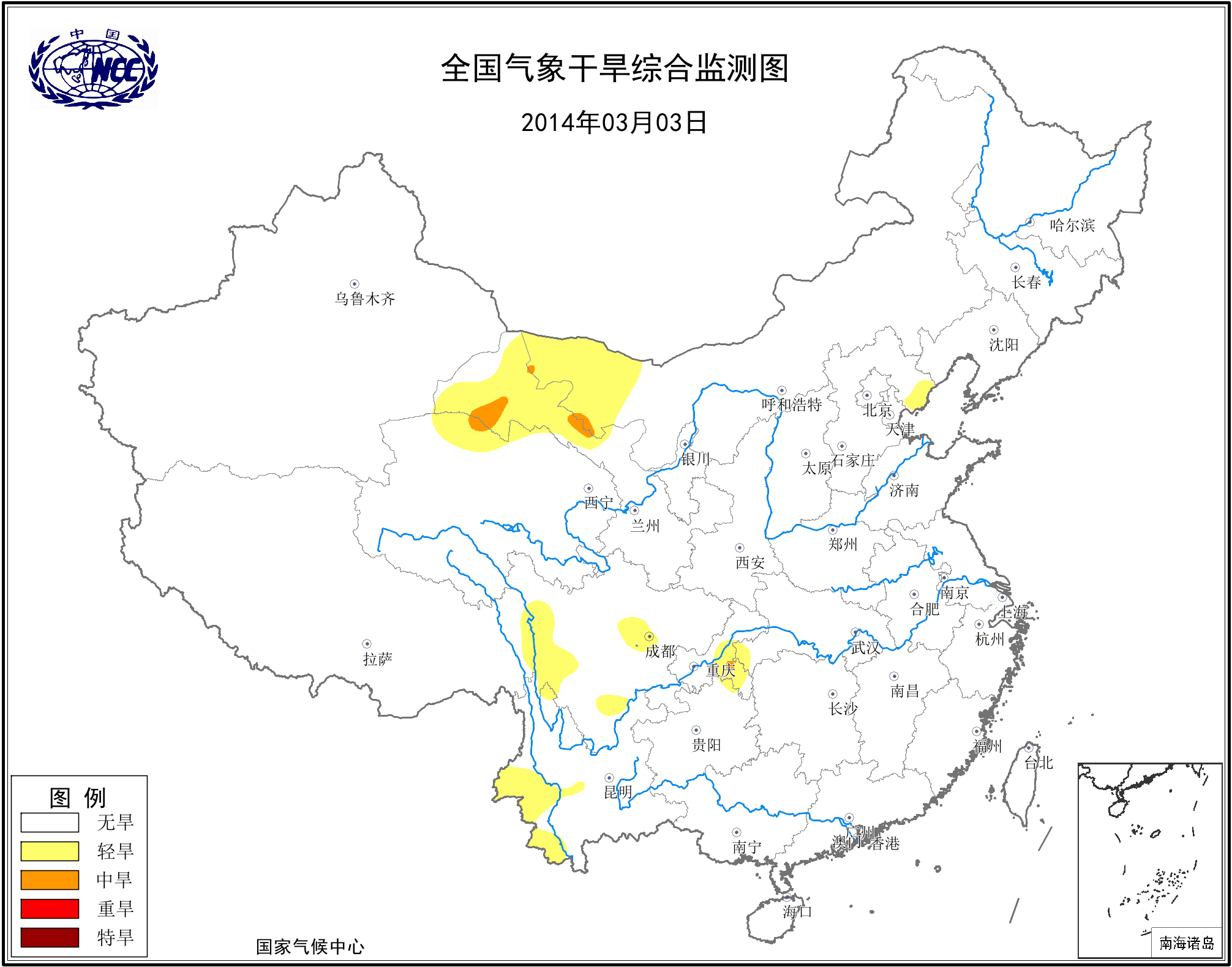 [中国](高分辨率):中国旱涝监测   [亚欧]:亚欧旱涝指数   [全球]:全球旱涝指数   [旱涝指数]:指数文件   [SPI]:SPI指数   [降水]:降水距平百分率   [土壤]:土壤相对湿度   [公报]:中国旱涝气候公报