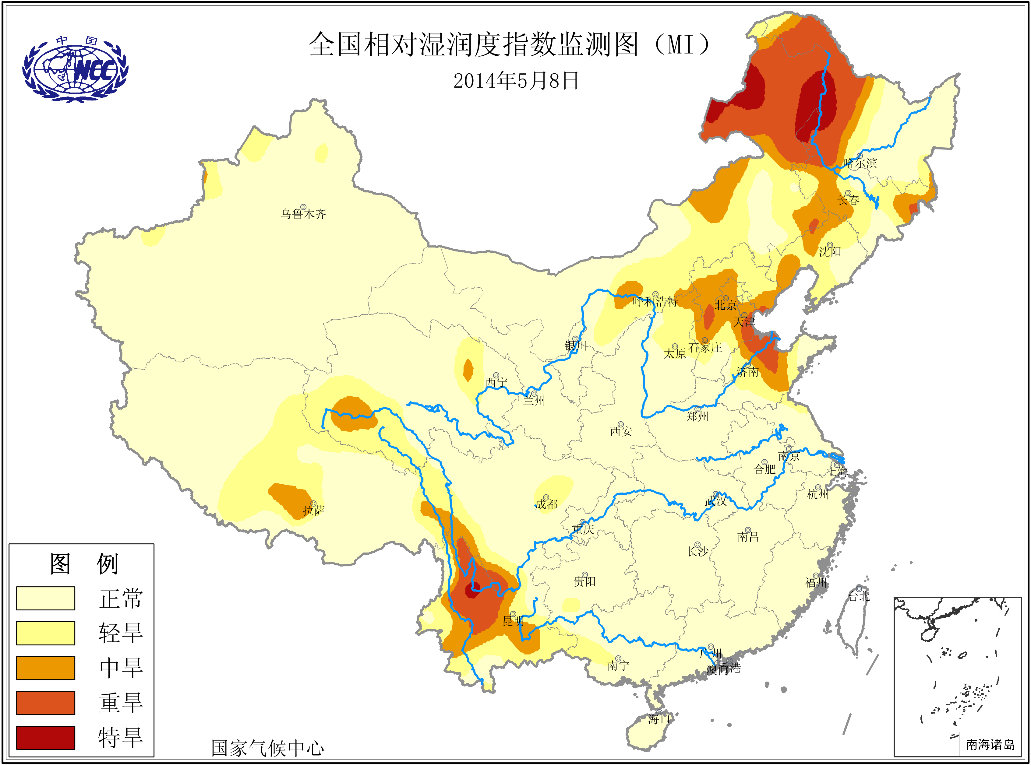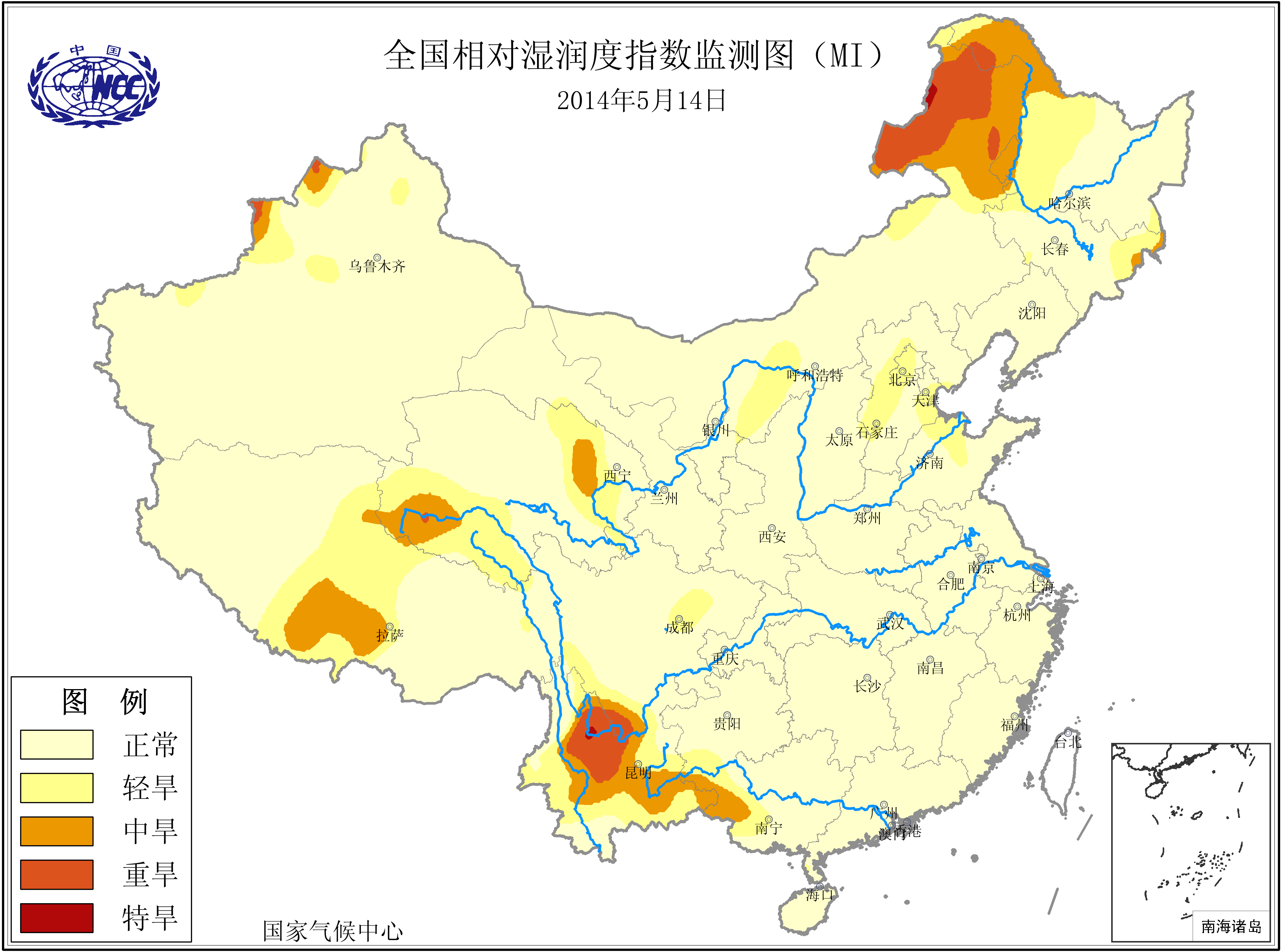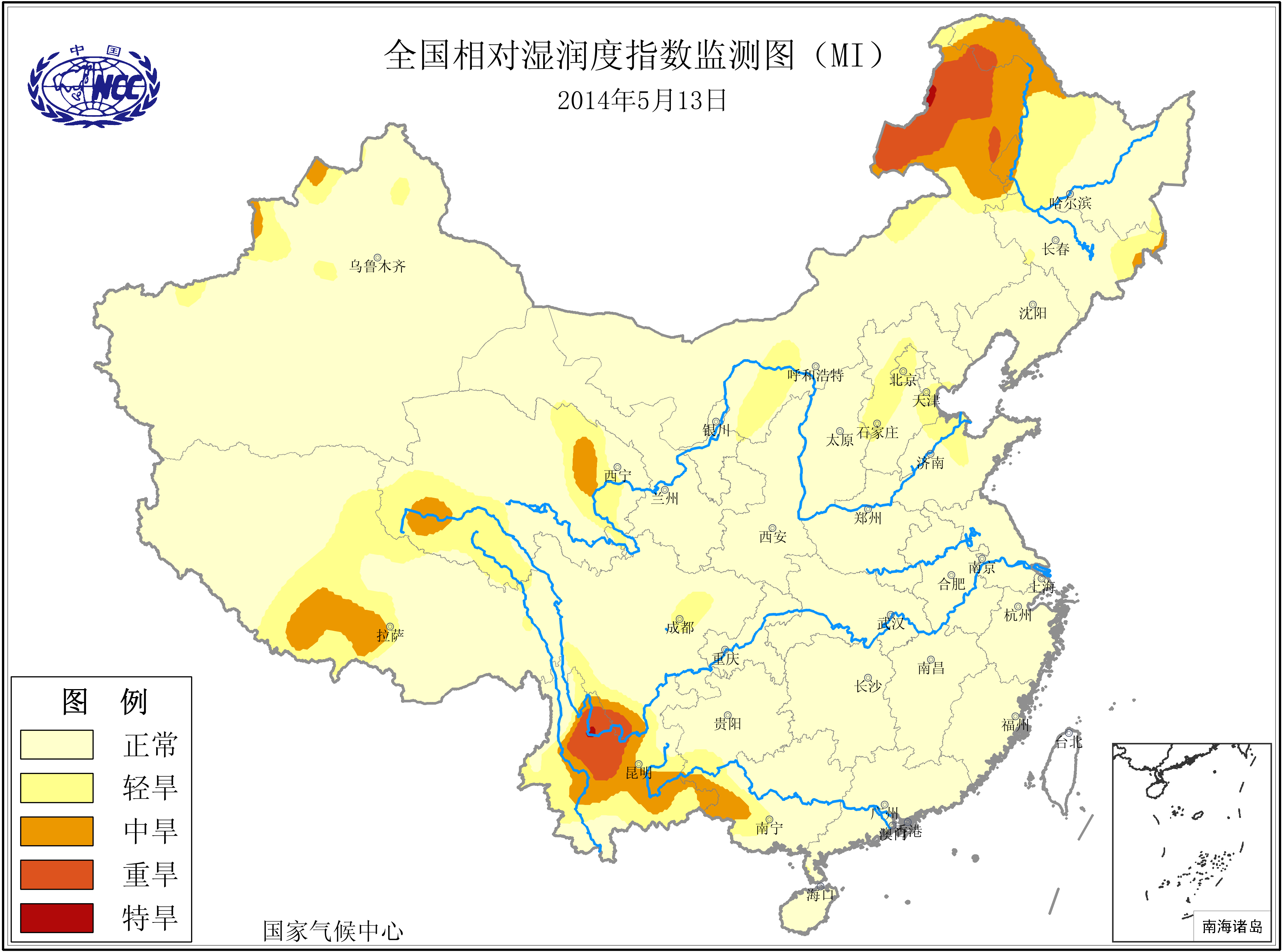 [中国](高分辨率):中国旱涝监测   [亚欧]:亚欧旱涝指数   [全球]:全球旱涝指数   [旱涝指数]:指数文件   [SPI]:SPI指数   [降水]:降水距平百分率   [土壤]:土壤相对湿度   [公报]:中国旱涝气候公报