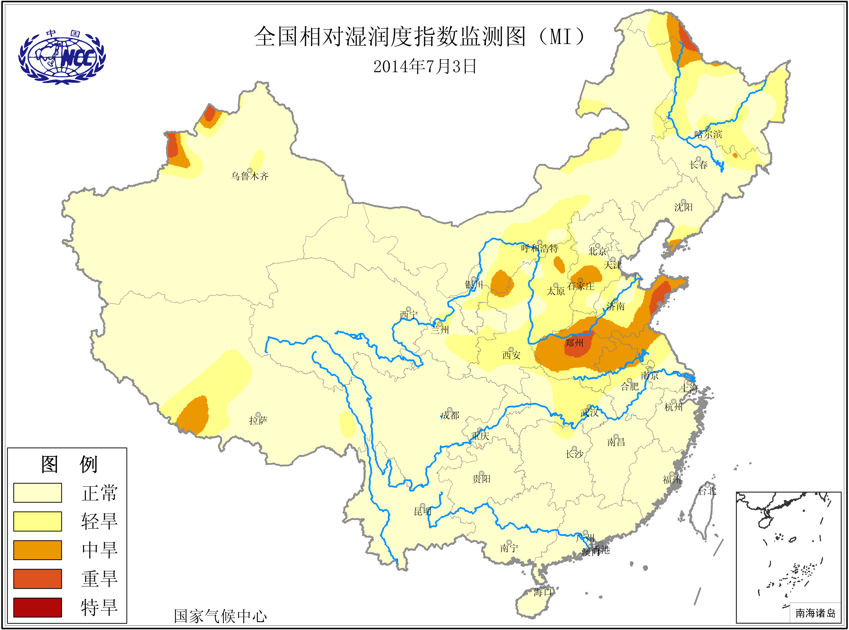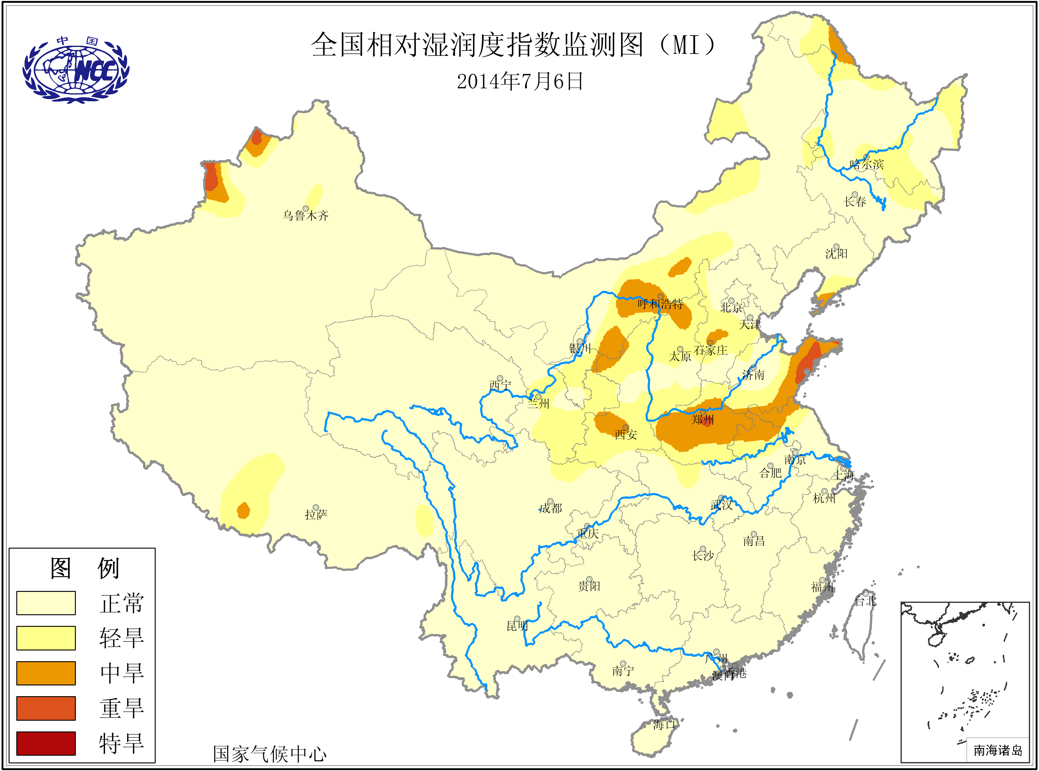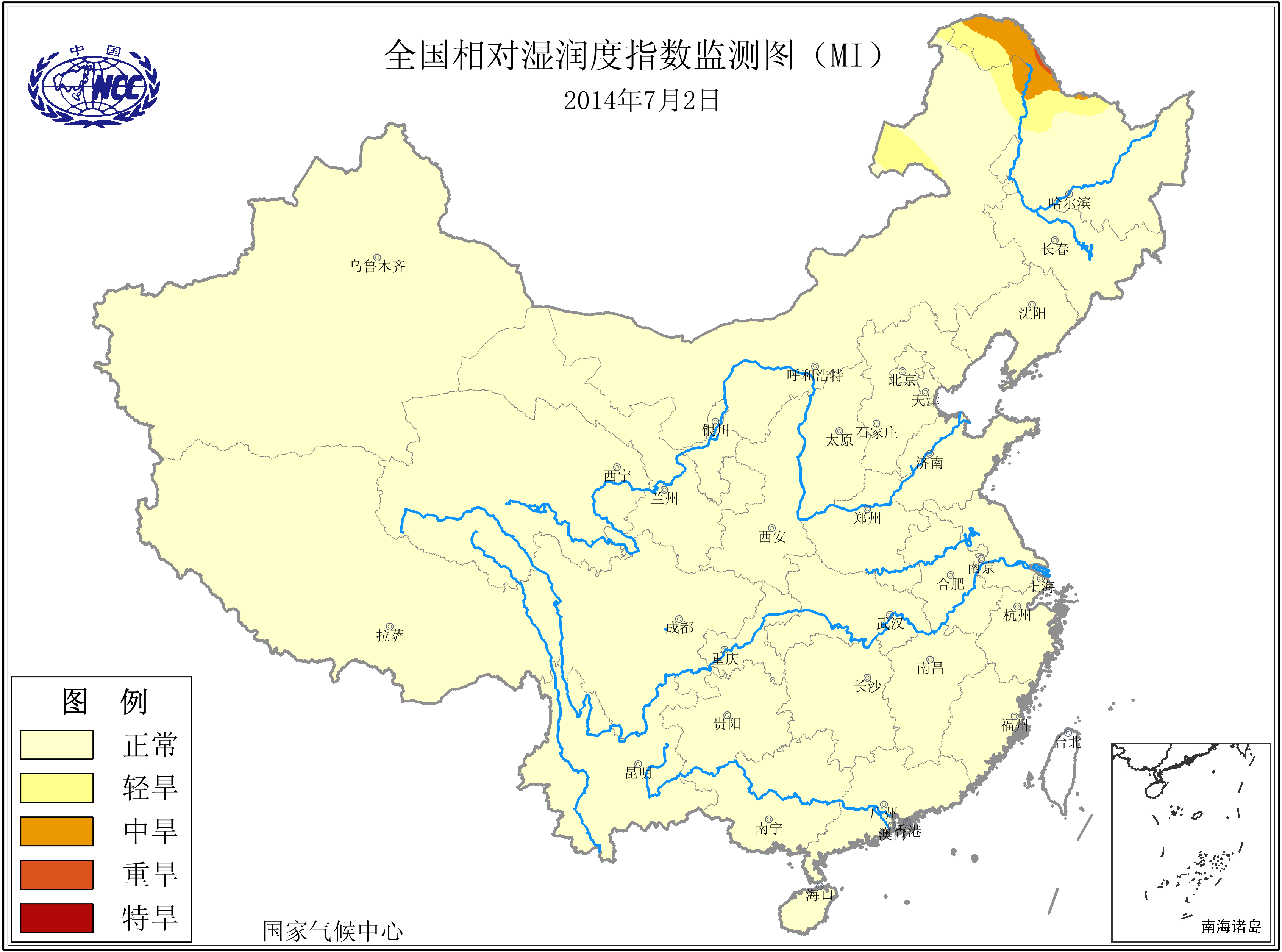 [中国](高分辨率):中国旱涝监测   [亚欧]:亚欧旱涝指数   [全球]:全球旱涝指数   [旱涝指数]:指数文件   [SPI]:SPI指数   [降水]:降水距平百分率   [土壤]:土壤相对湿度   [公报]:中国旱涝气候公报