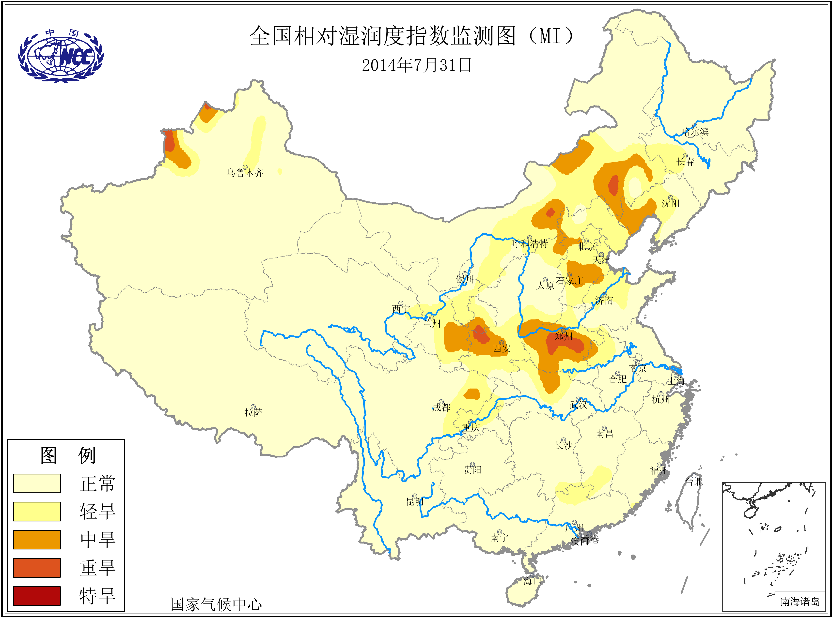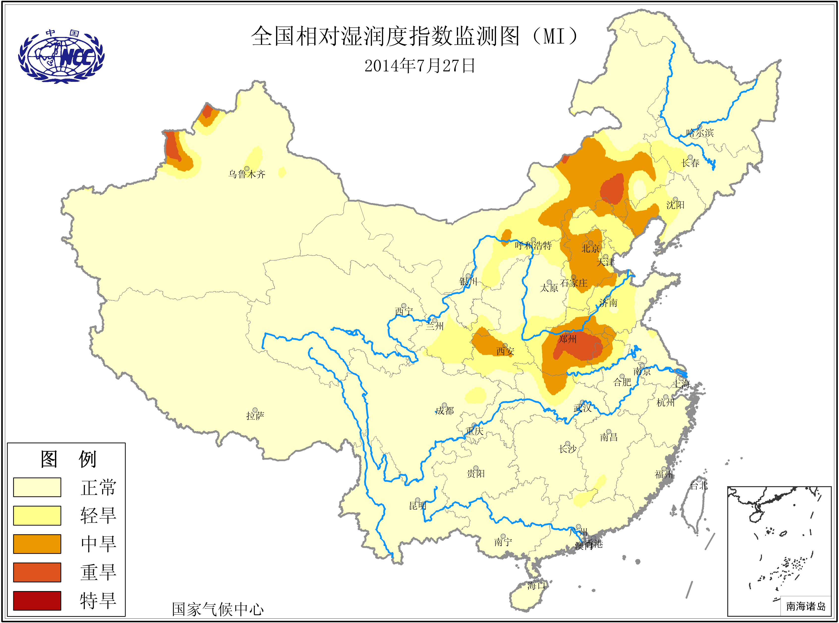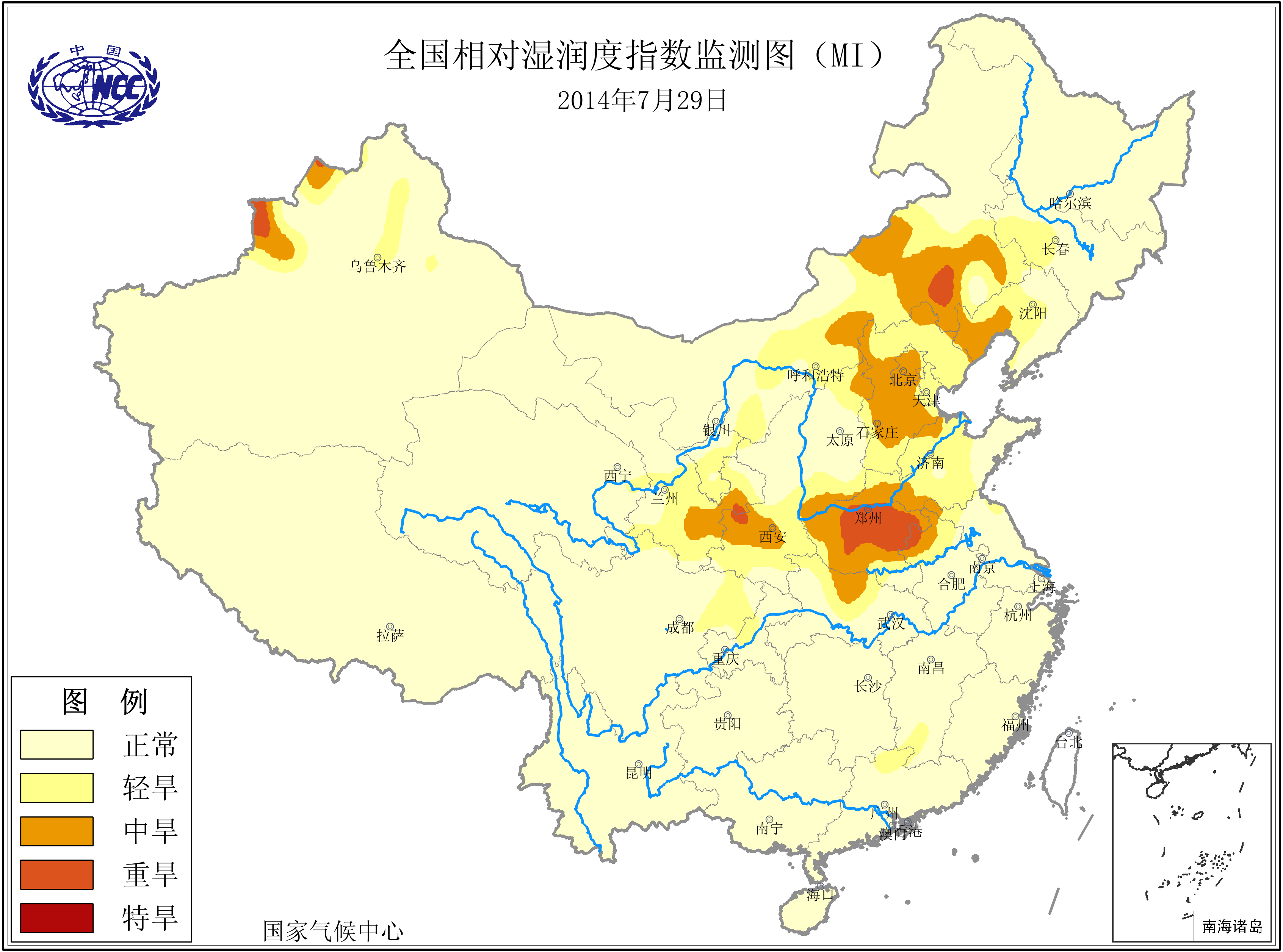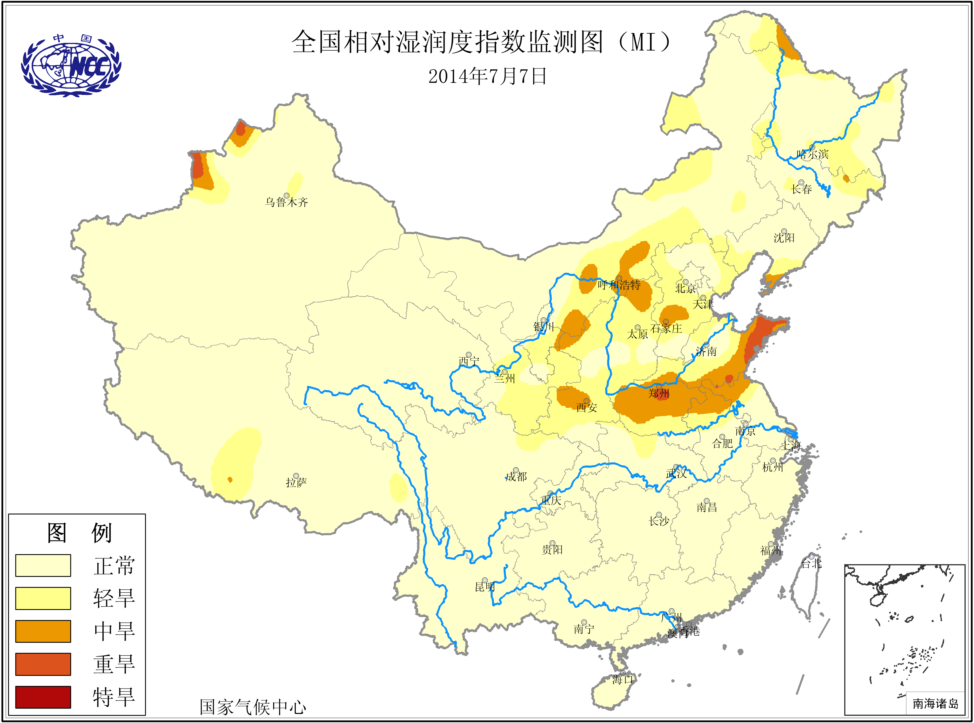 [中国](高分辨率):中国旱涝监测   [亚欧]:亚欧旱涝指数   [全球]:全球旱涝指数   [旱涝指数]:指数文件   [SPI]:SPI指数   [降水]:降水距平百分率   [土壤]:土壤相对湿度   [公报]:中国旱涝气候公报