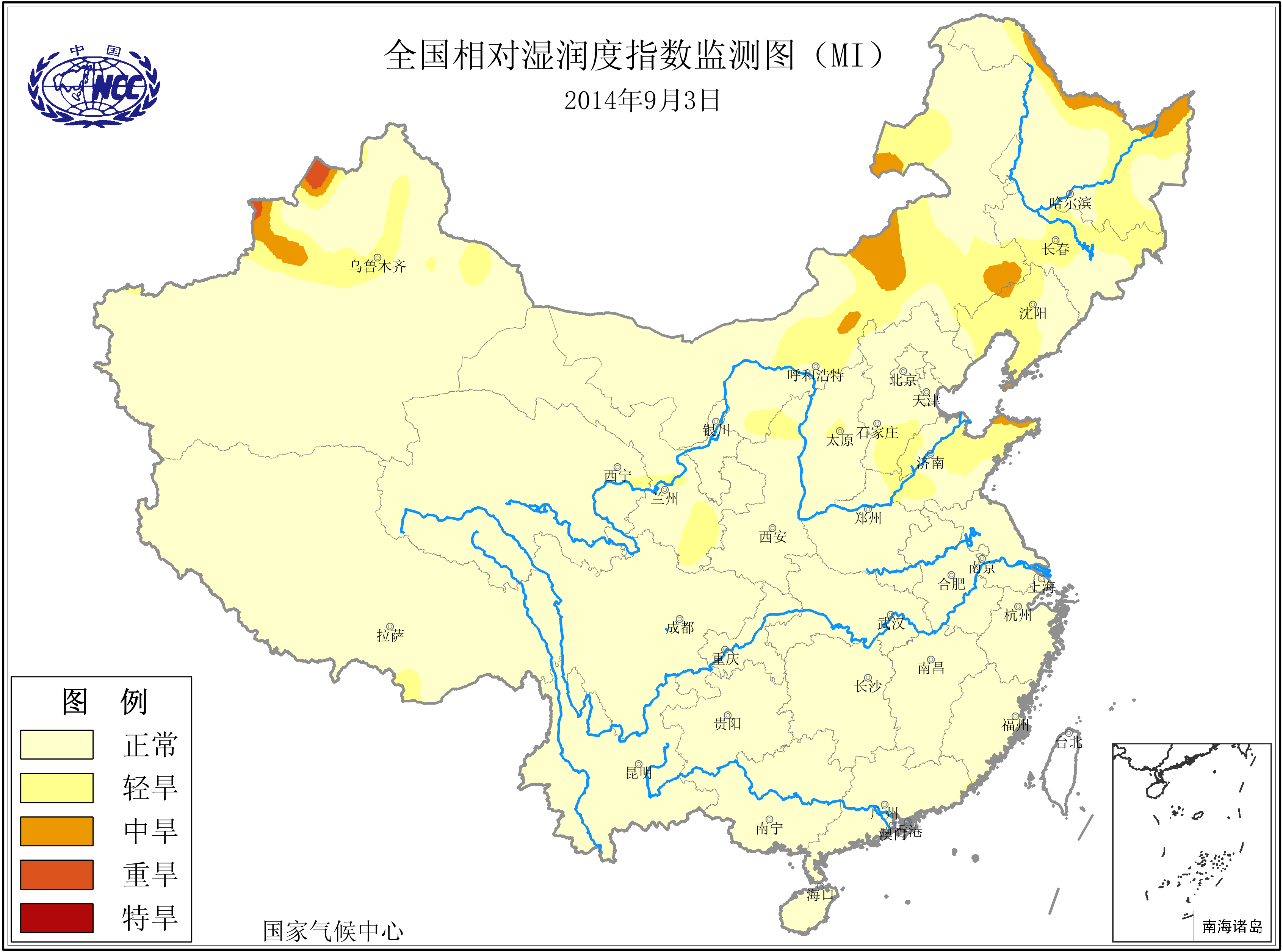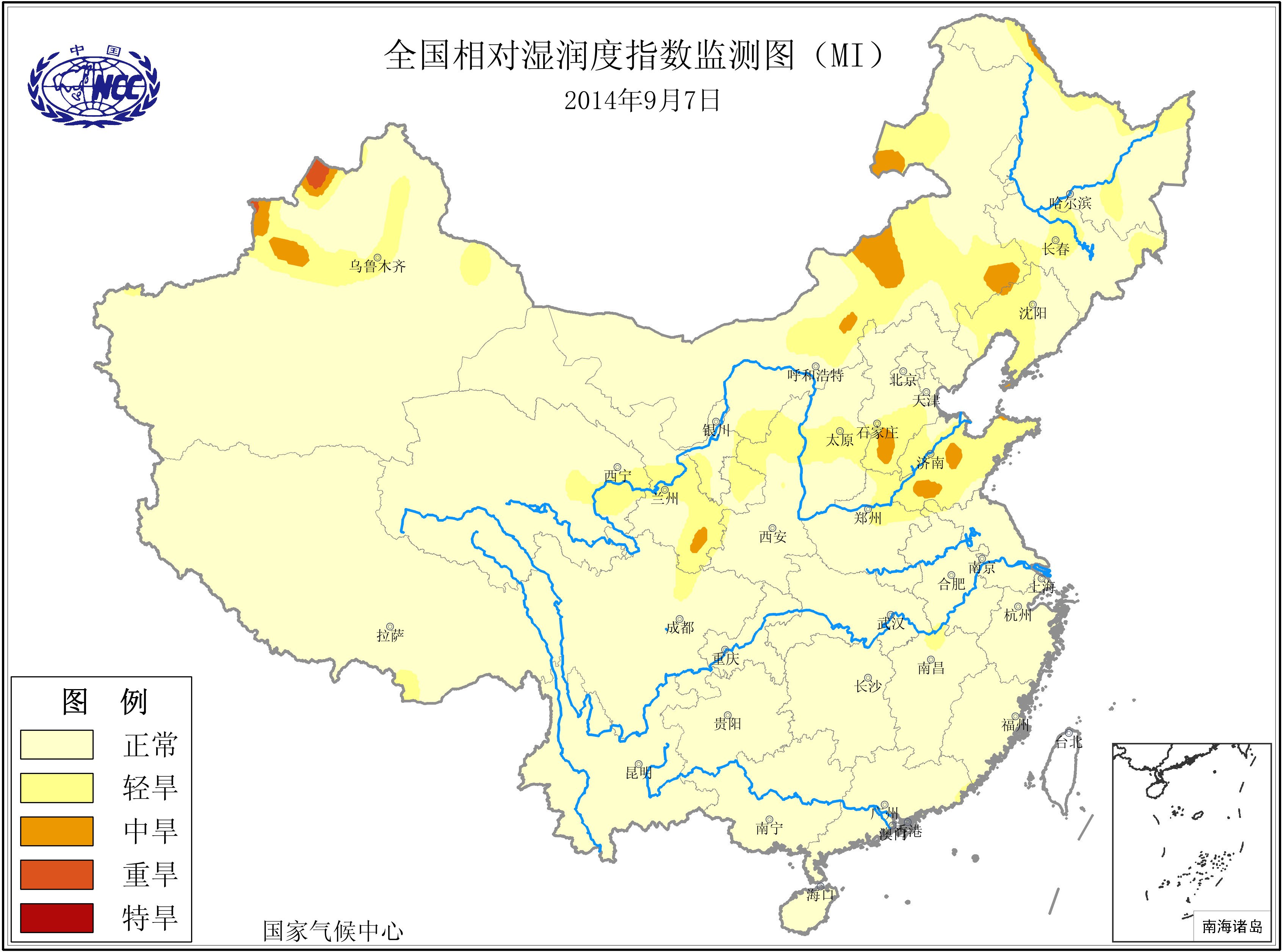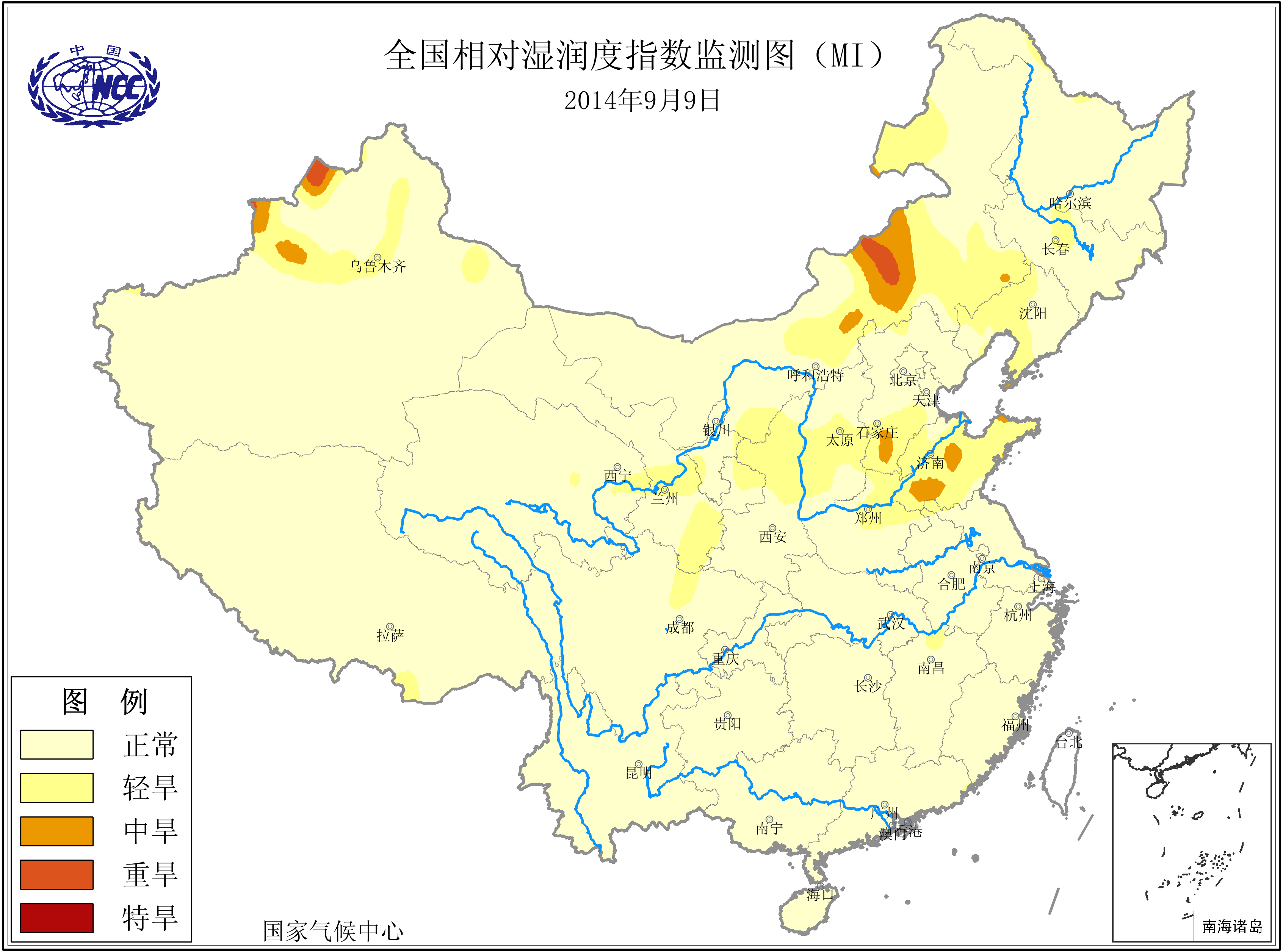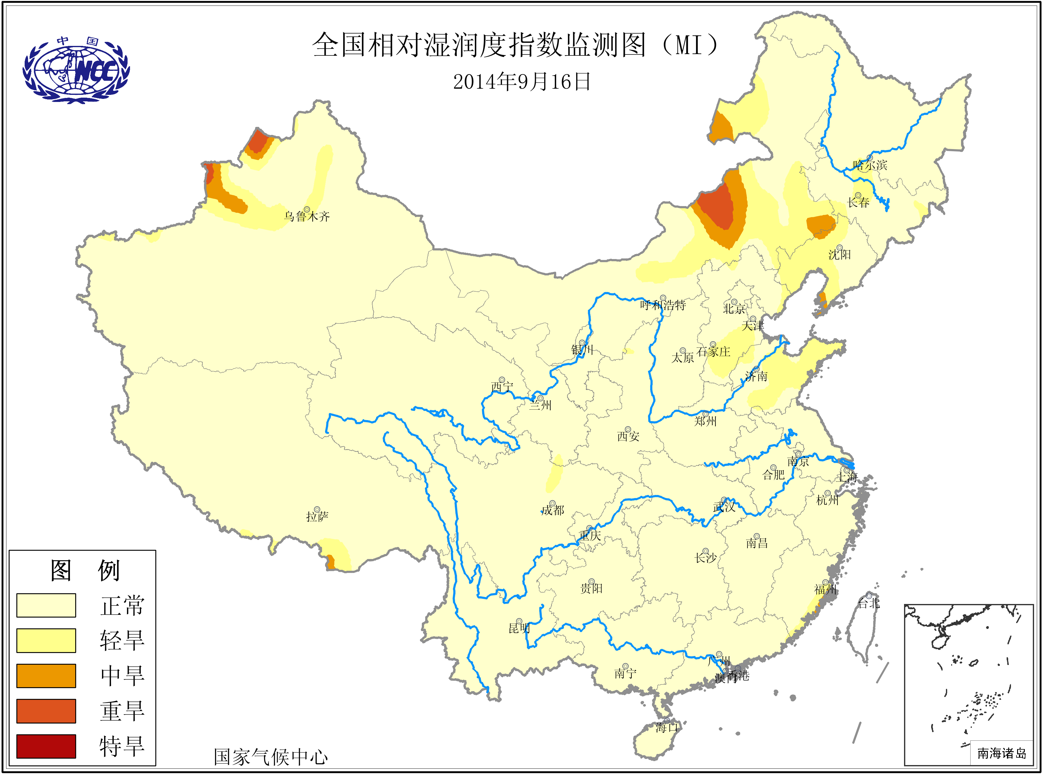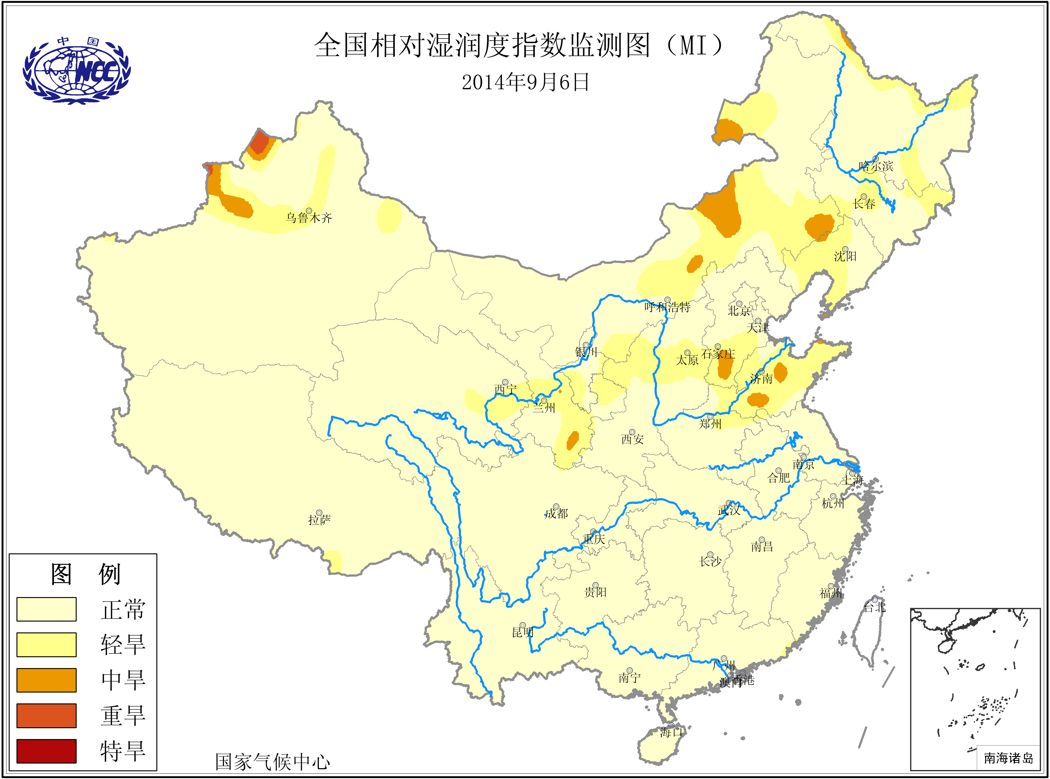 [中国](高分辨率):中国旱涝监测   [亚欧]:亚欧旱涝指数   [全球]:全球旱涝指数   [旱涝指数]:指数文件   [SPI]:SPI指数   [降水]:降水距平百分率   [土壤]:土壤相对湿度   [公报]:中国旱涝气候公报