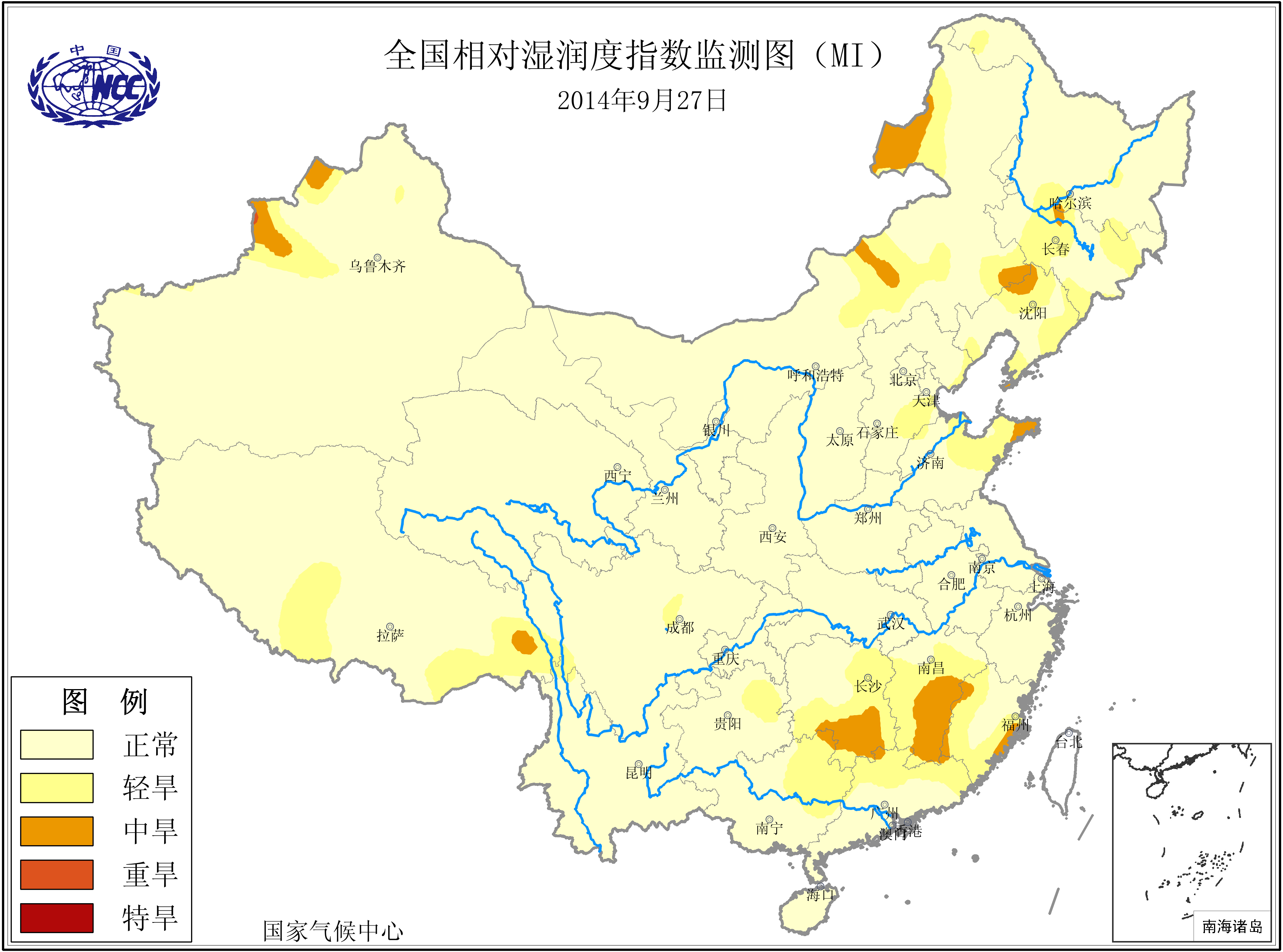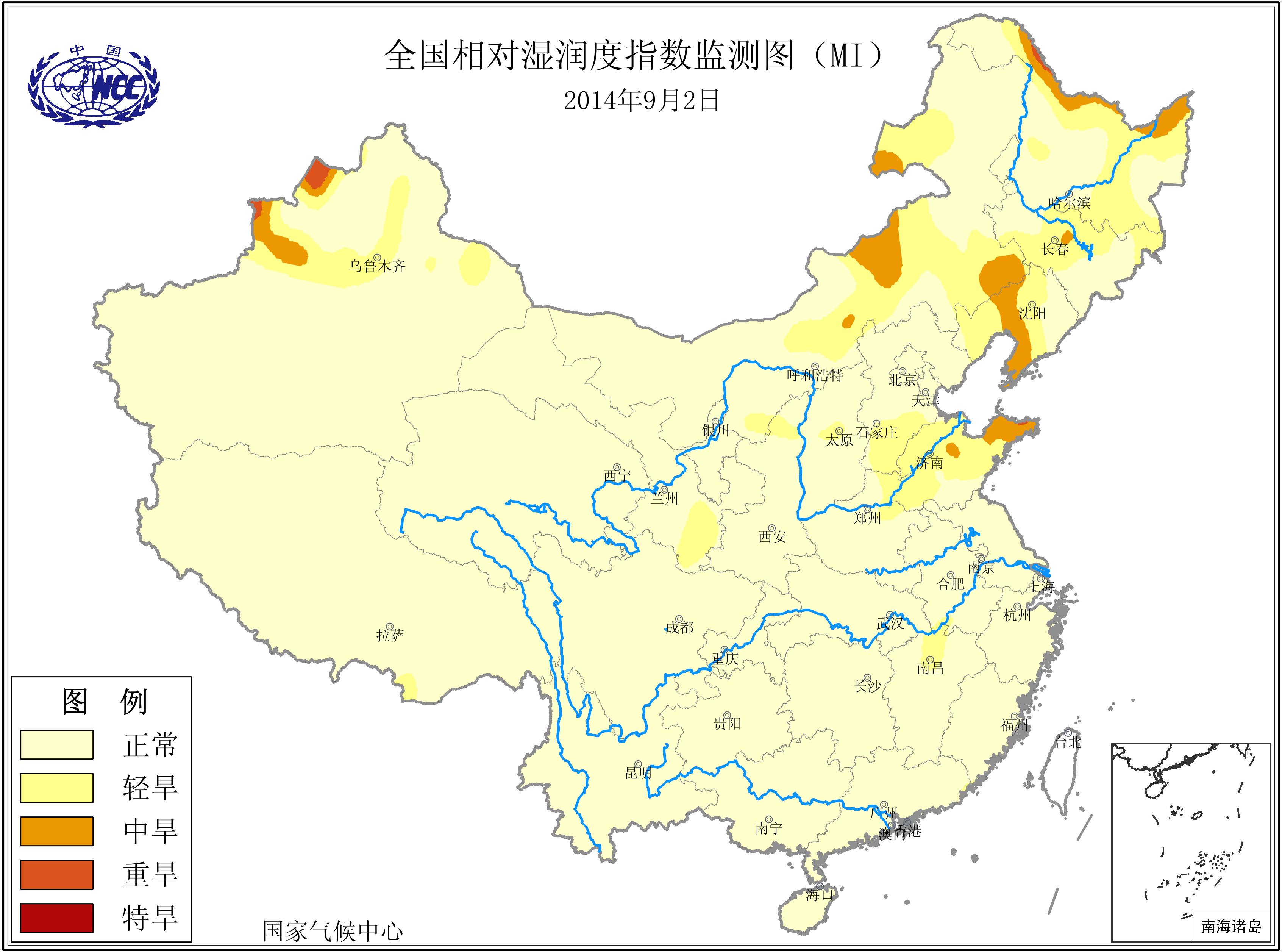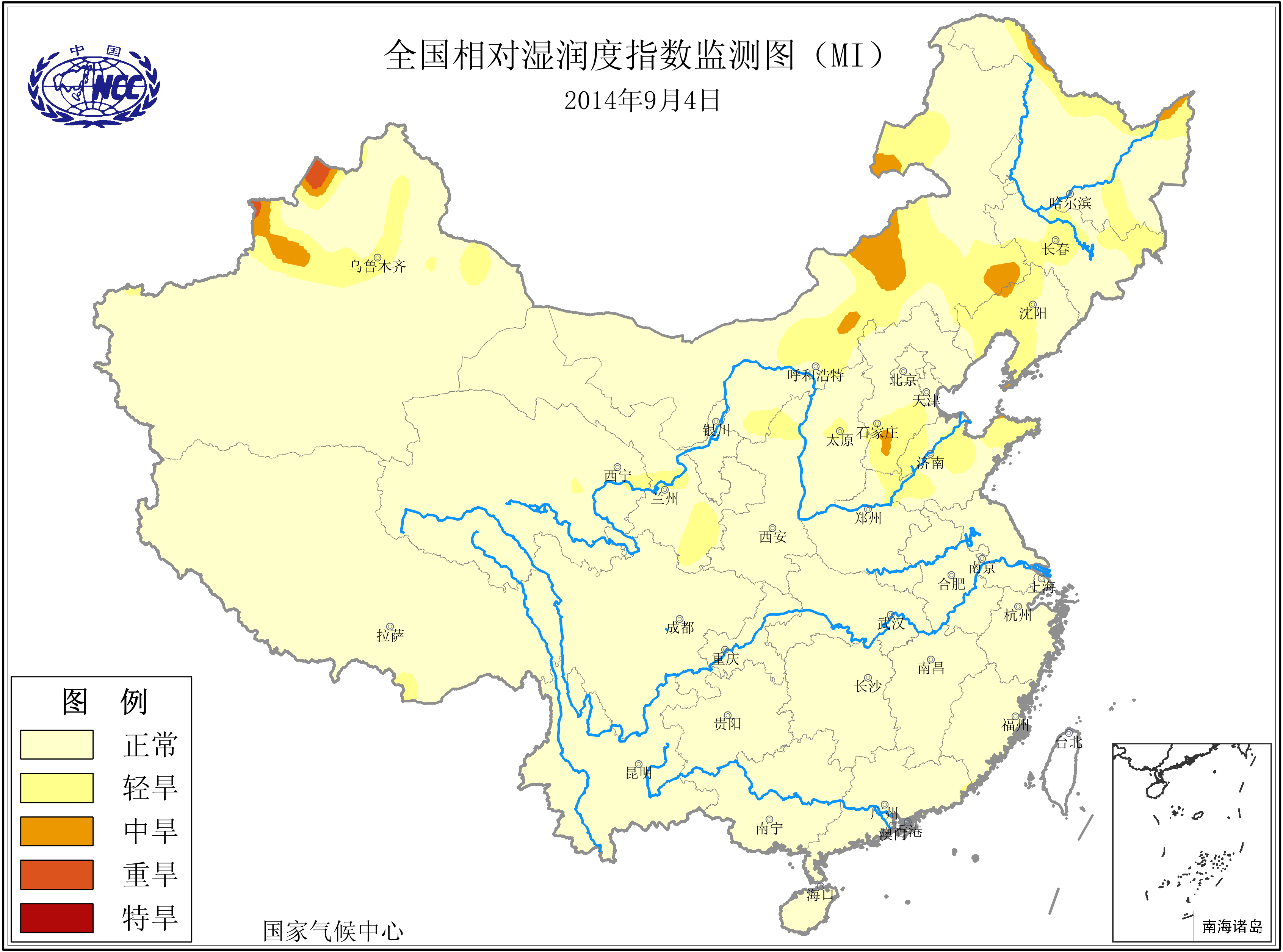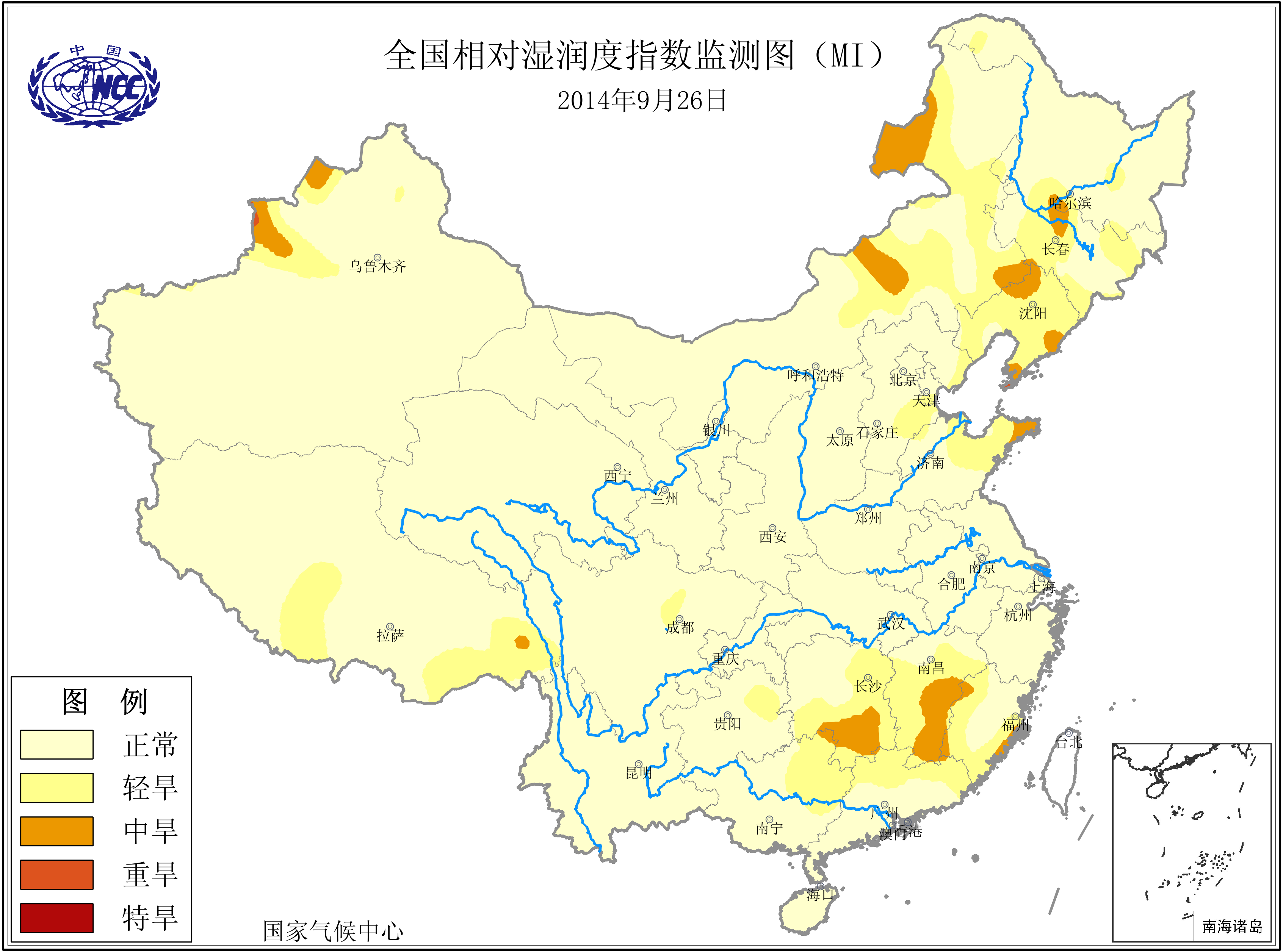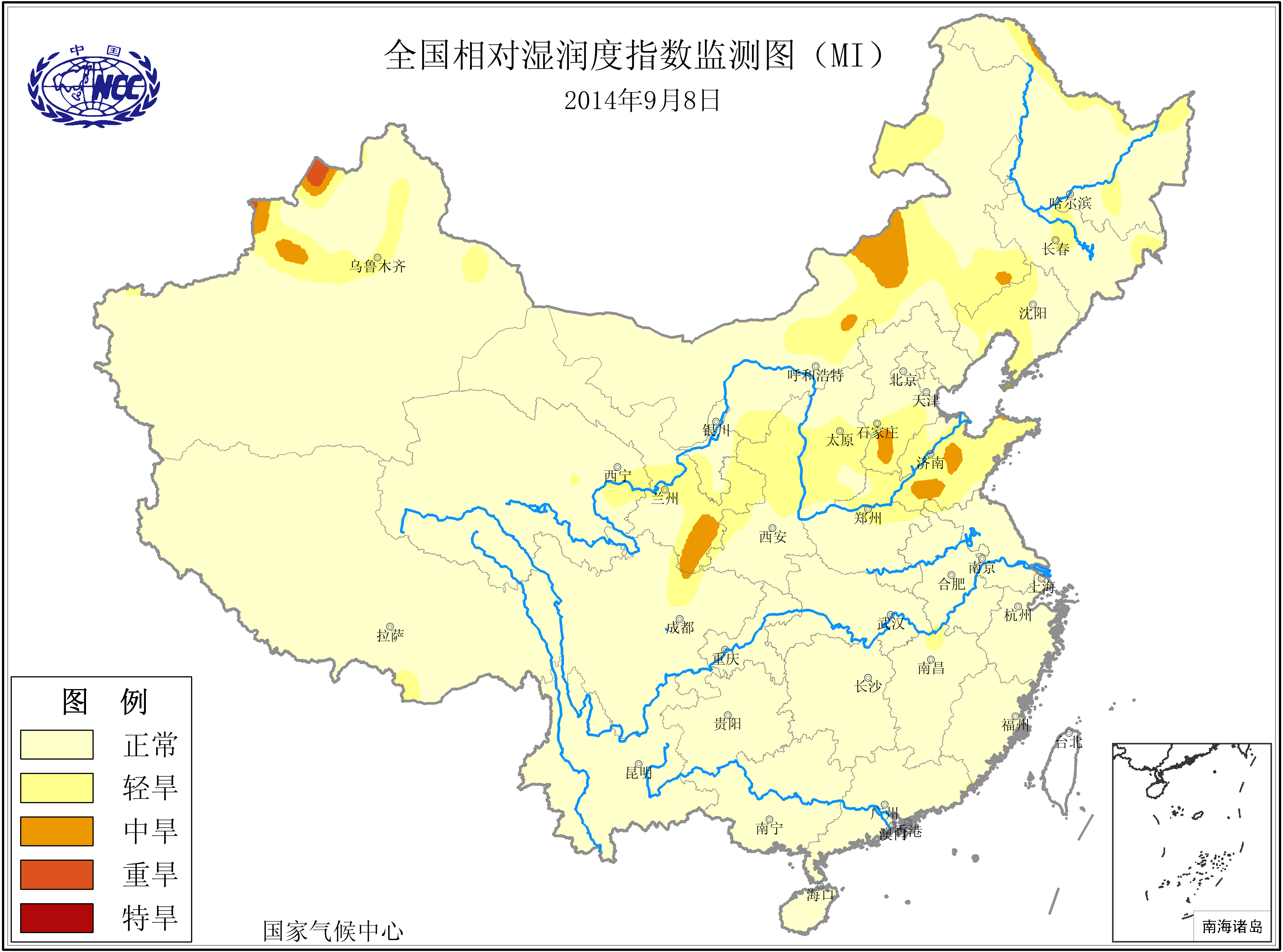 [中国](高分辨率):中国旱涝监测   [亚欧]:亚欧旱涝指数   [全球]:全球旱涝指数   [旱涝指数]:指数文件   [SPI]:SPI指数   [降水]:降水距平百分率   [土壤]:土壤相对湿度   [公报]:中国旱涝气候公报