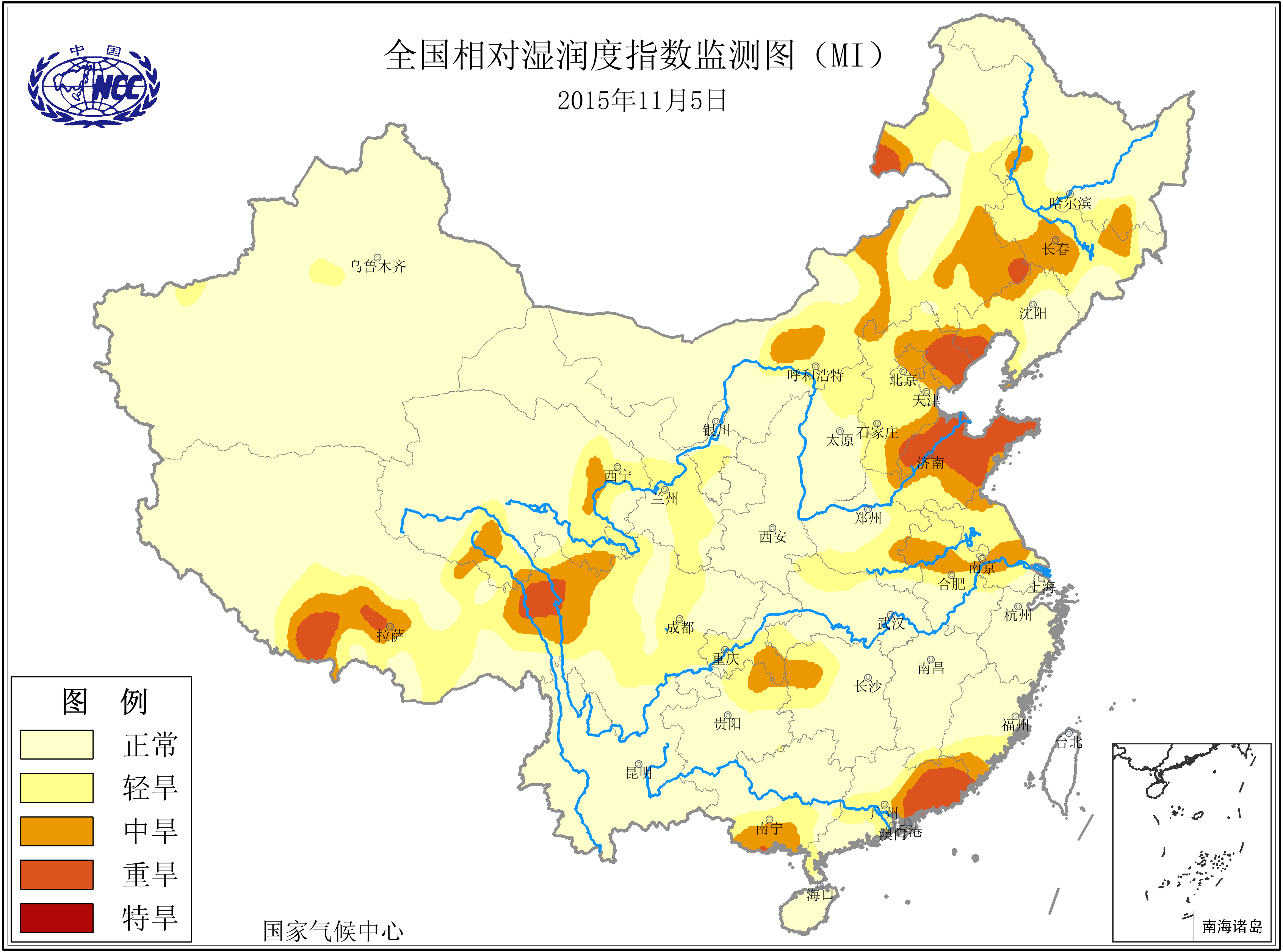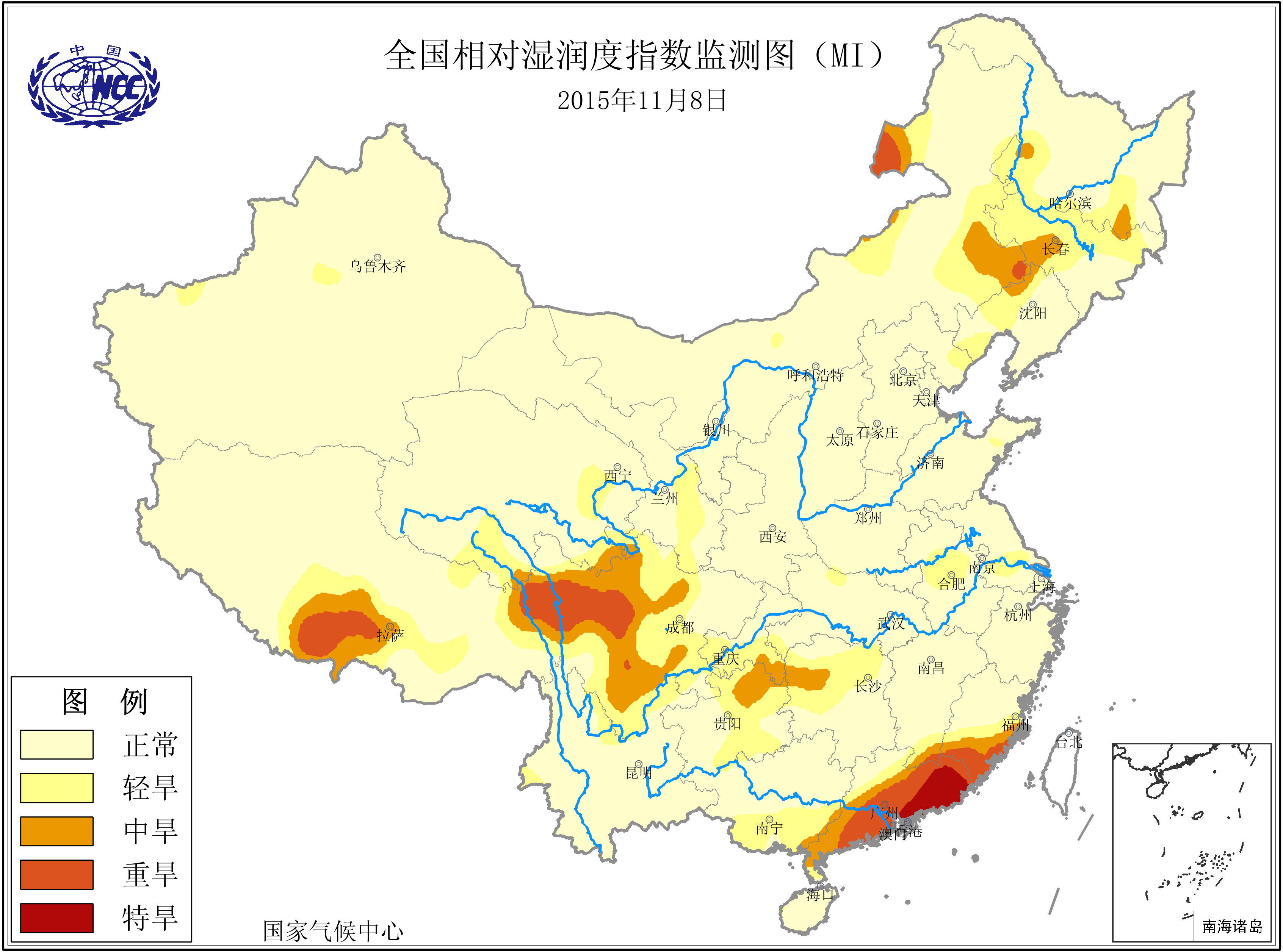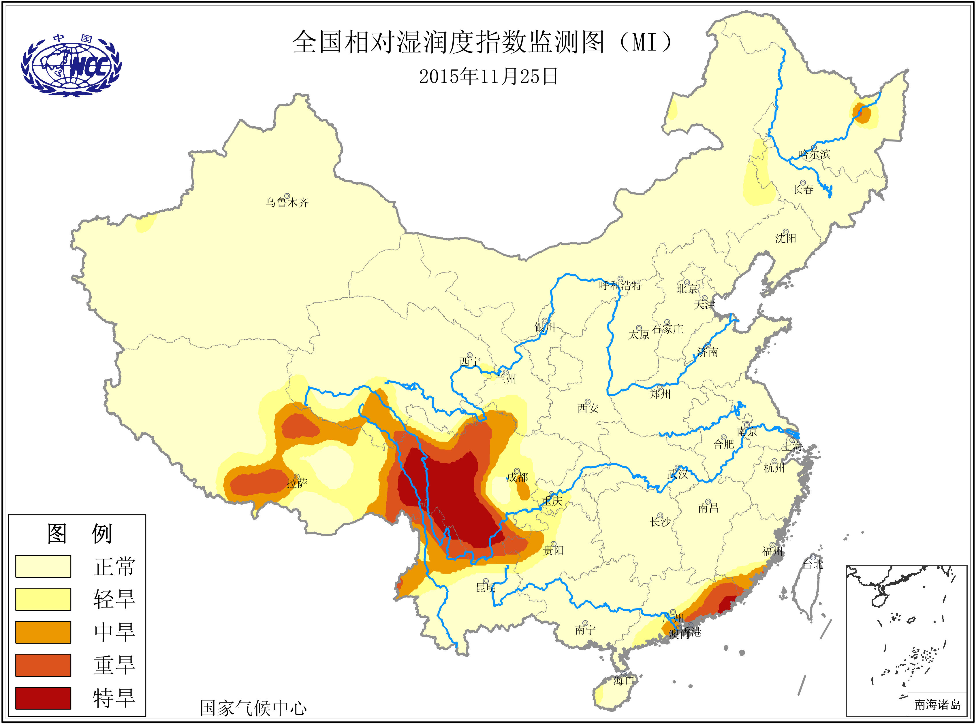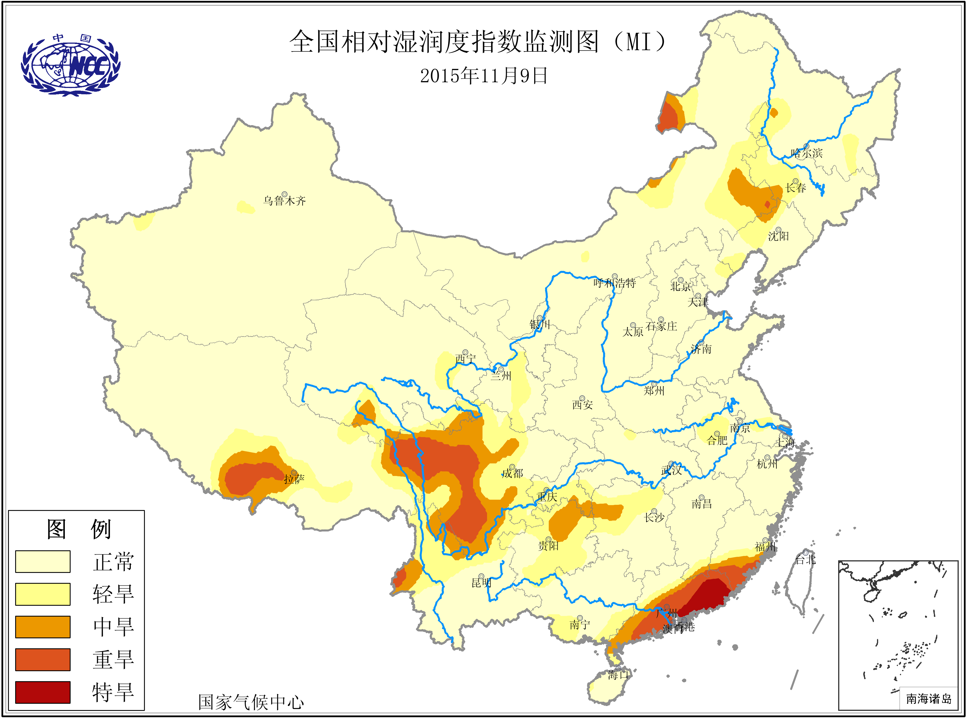 [中国](高分辨率):中国旱涝监测   [亚欧]:亚欧旱涝指数   [全球]:全球旱涝指数   [旱涝指数]:指数文件   [SPI]:SPI指数   [降水]:降水距平百分率   [土壤]:土壤相对湿度   [公报]:中国旱涝气候公报