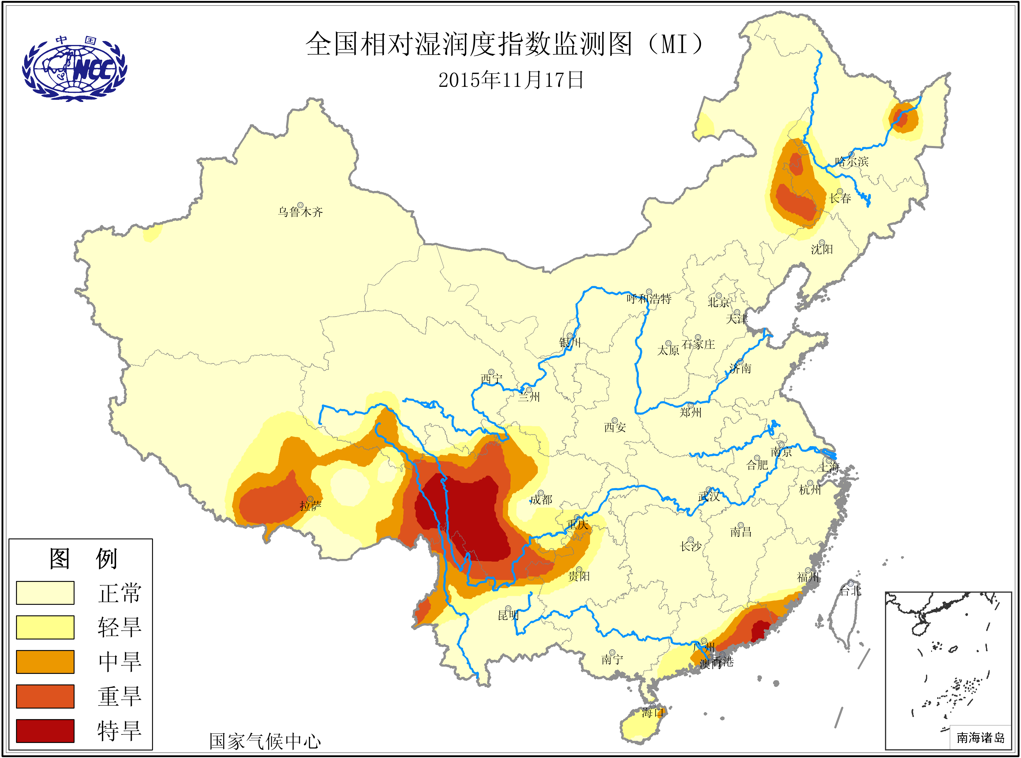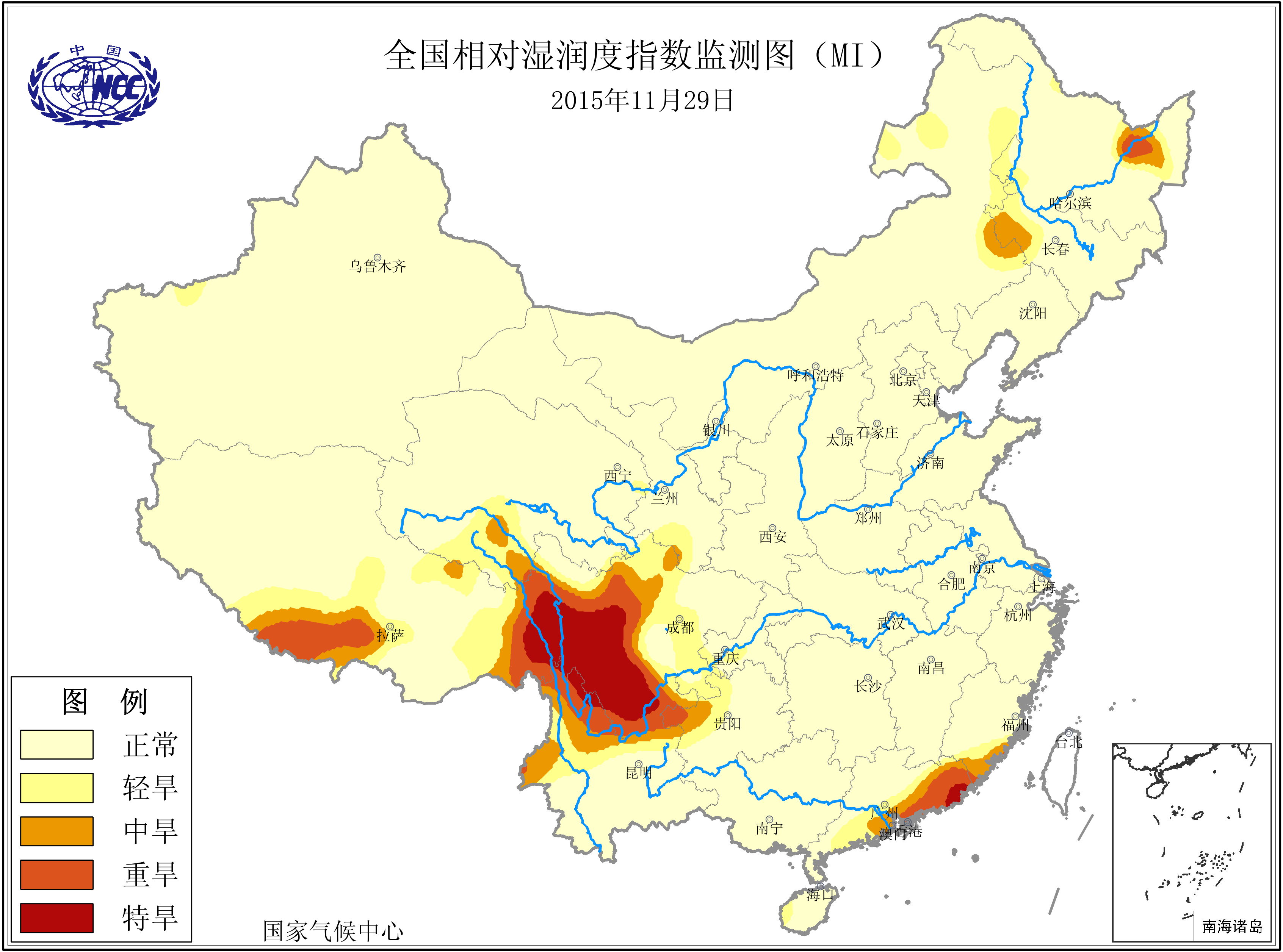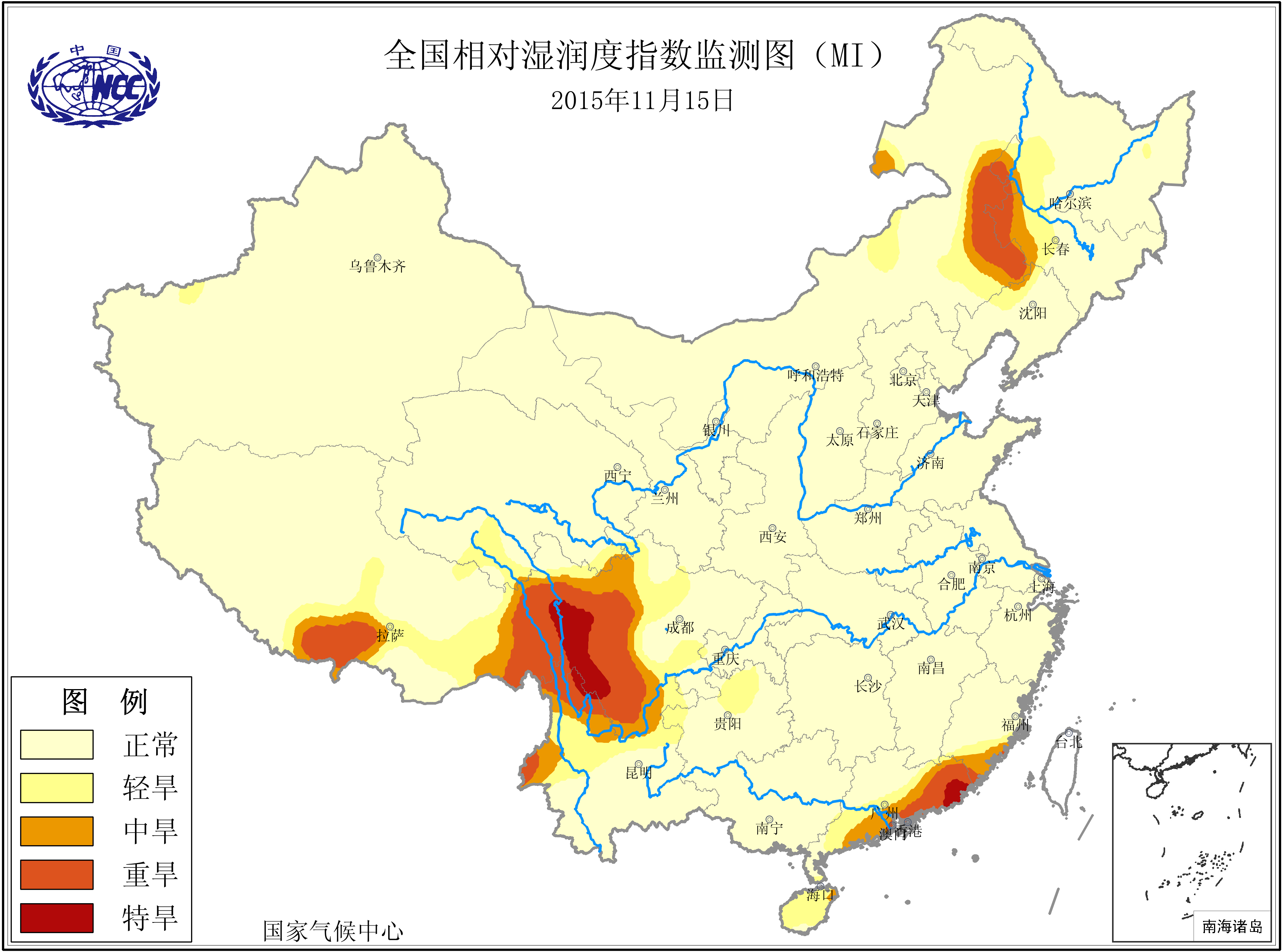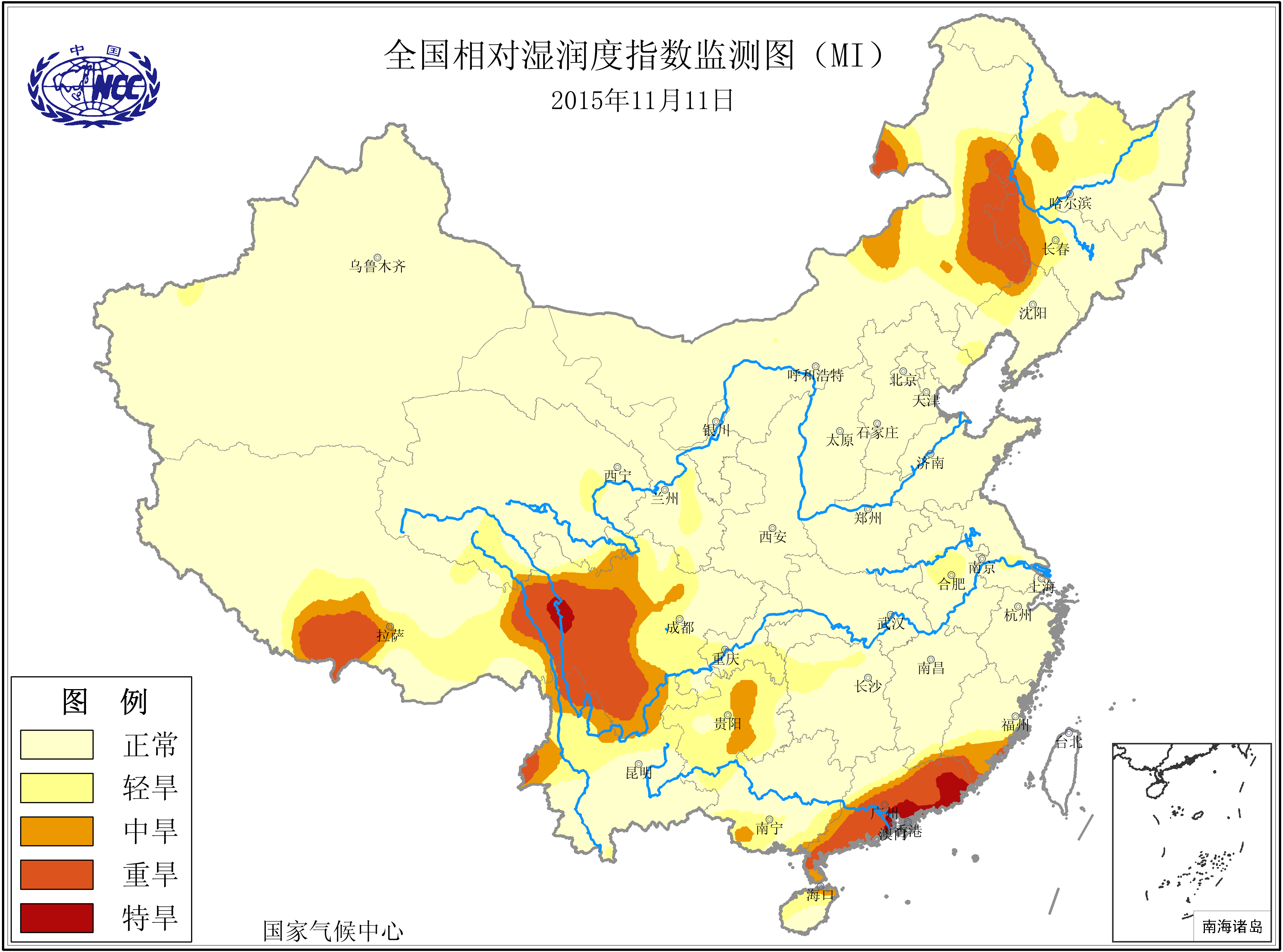 [中国](高分辨率):中国旱涝监测   [亚欧]:亚欧旱涝指数   [全球]:全球旱涝指数   [旱涝指数]:指数文件   [SPI]:SPI指数   [降水]:降水距平百分率   [土壤]:土壤相对湿度   [公报]:中国旱涝气候公报