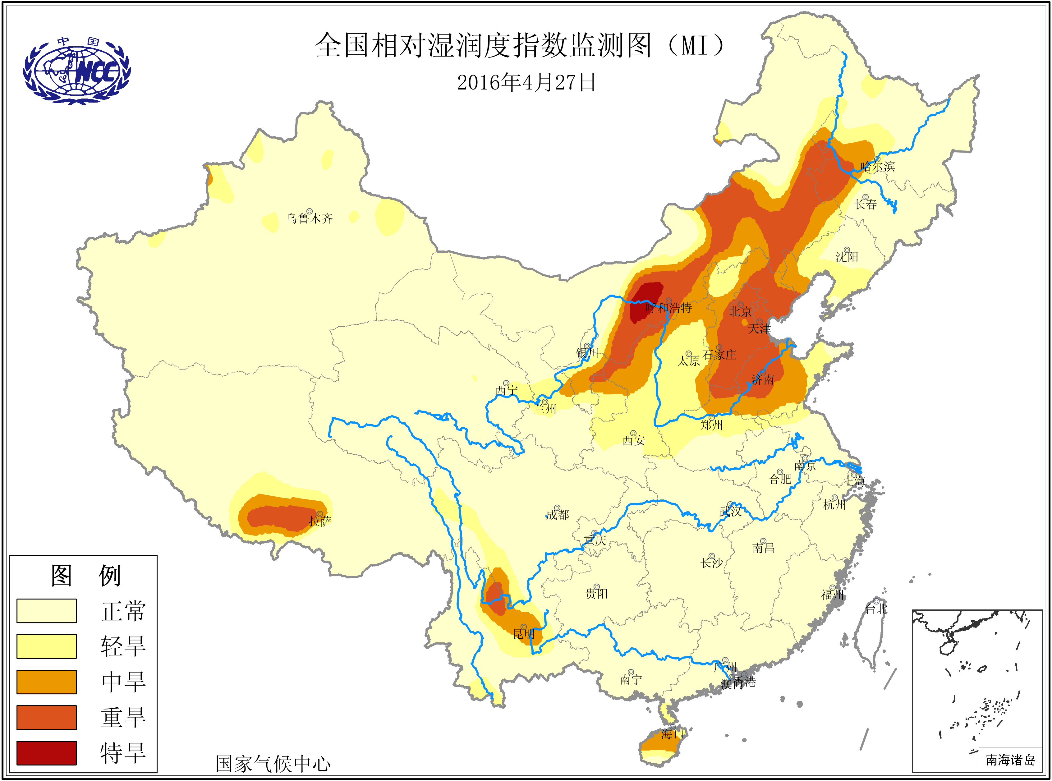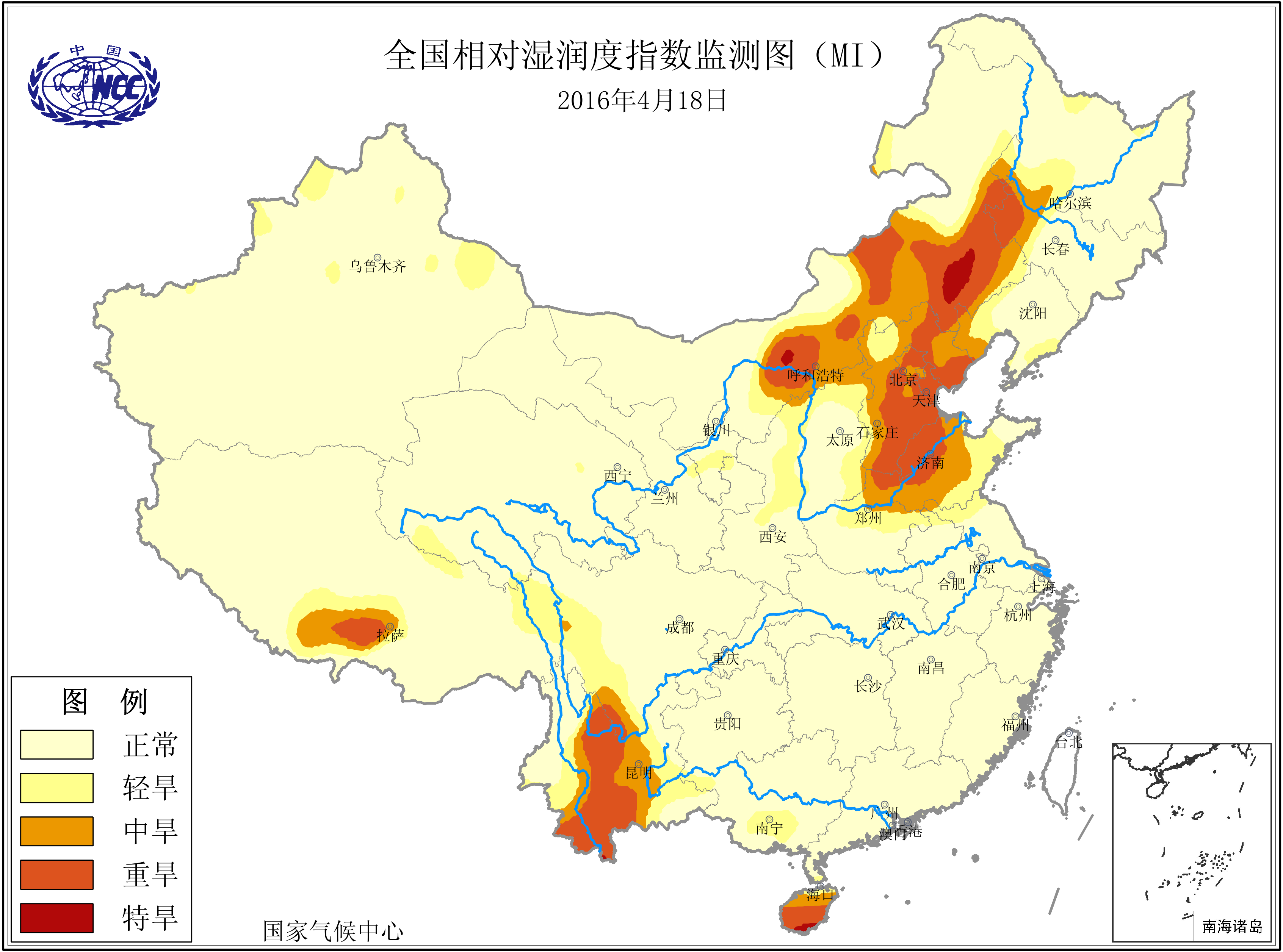 [中国](高分辨率):中国旱涝监测   [亚欧]:亚欧旱涝指数   [全球]:全球旱涝指数   [旱涝指数]:指数文件   [SPI]:SPI指数   [降水]:降水距平百分率   [土壤]:土壤相对湿度   [公报]:中国旱涝气候公报