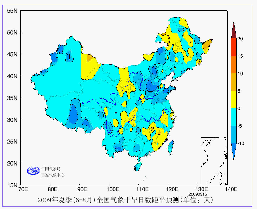 9 YEAR年夏季(6-8月)全国气象干旱日数距平预测 夏季 全国 日数 AAA 预测 2009