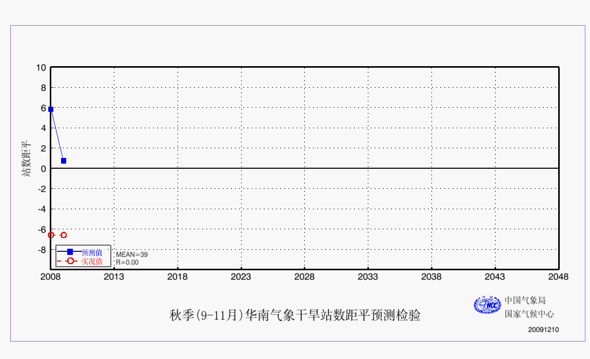 22 秋季(9-11月)华南气象干旱站数距平预测与实况 华南 站数 AAA 预测实况 2009