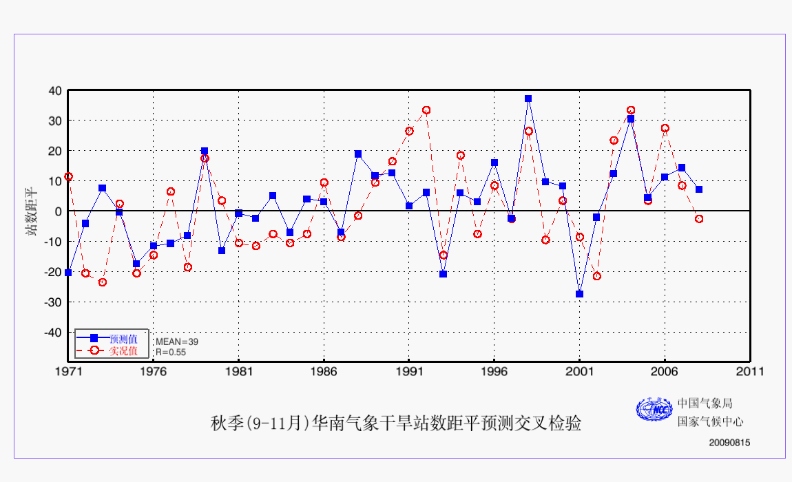 24 秋季(9-11月)华南气象干旱站数距平预测检验 AAA 预测检验 2009