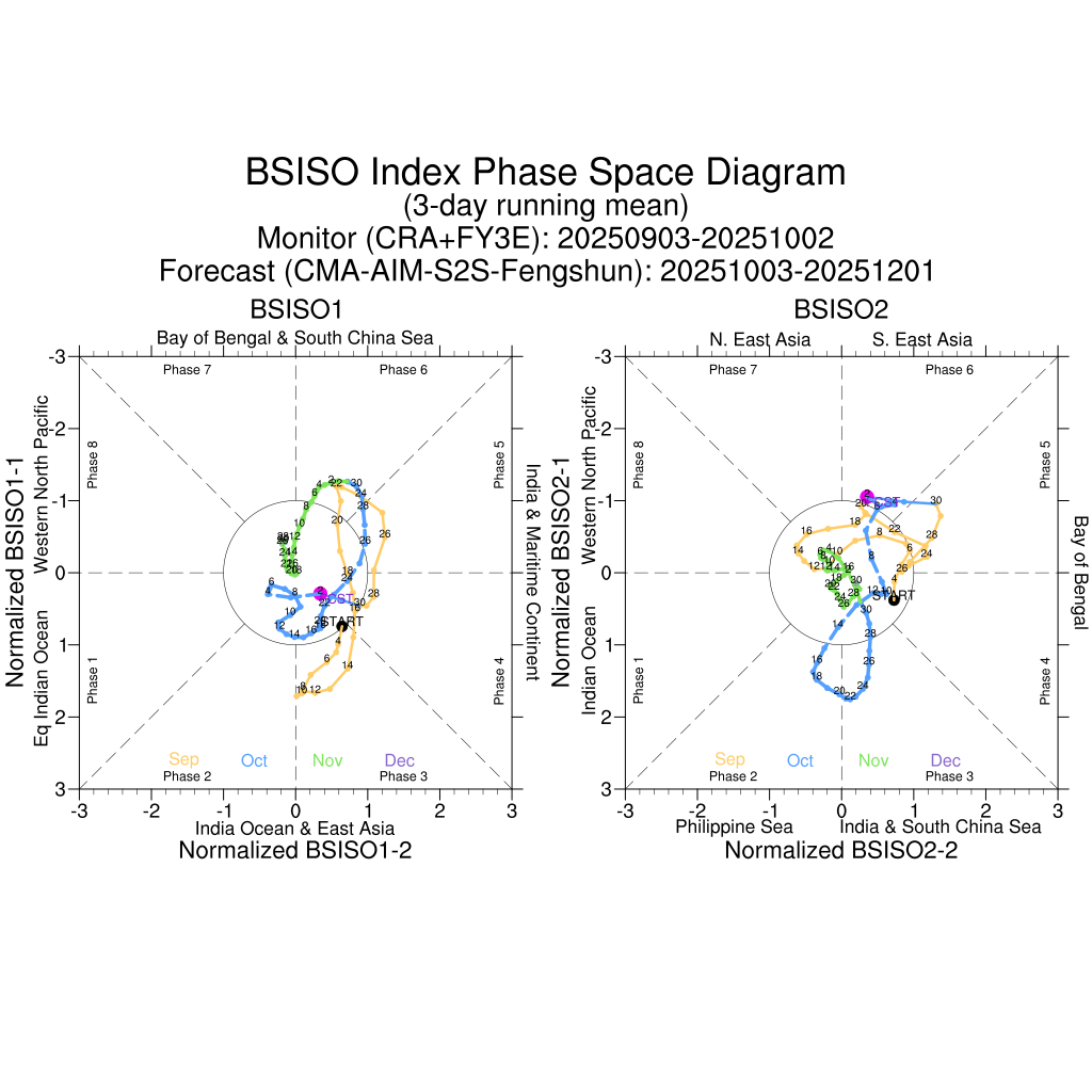 BSISO指数空间位相图(过去30天监测与未来60天预测)