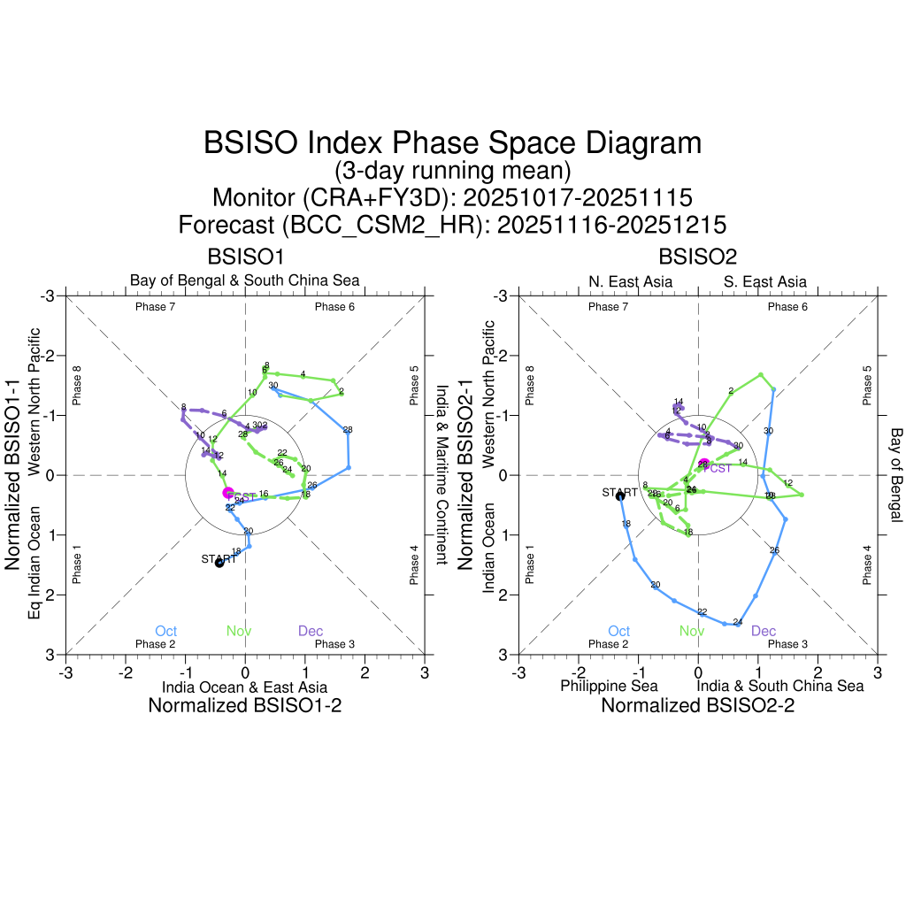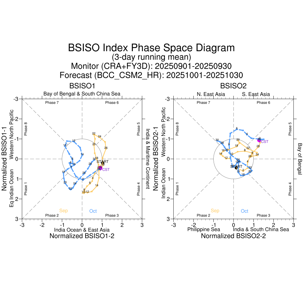 BSISO指数空间位相图(过去30天监测与未来30天预测)