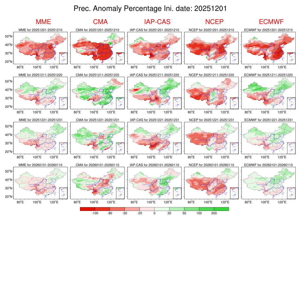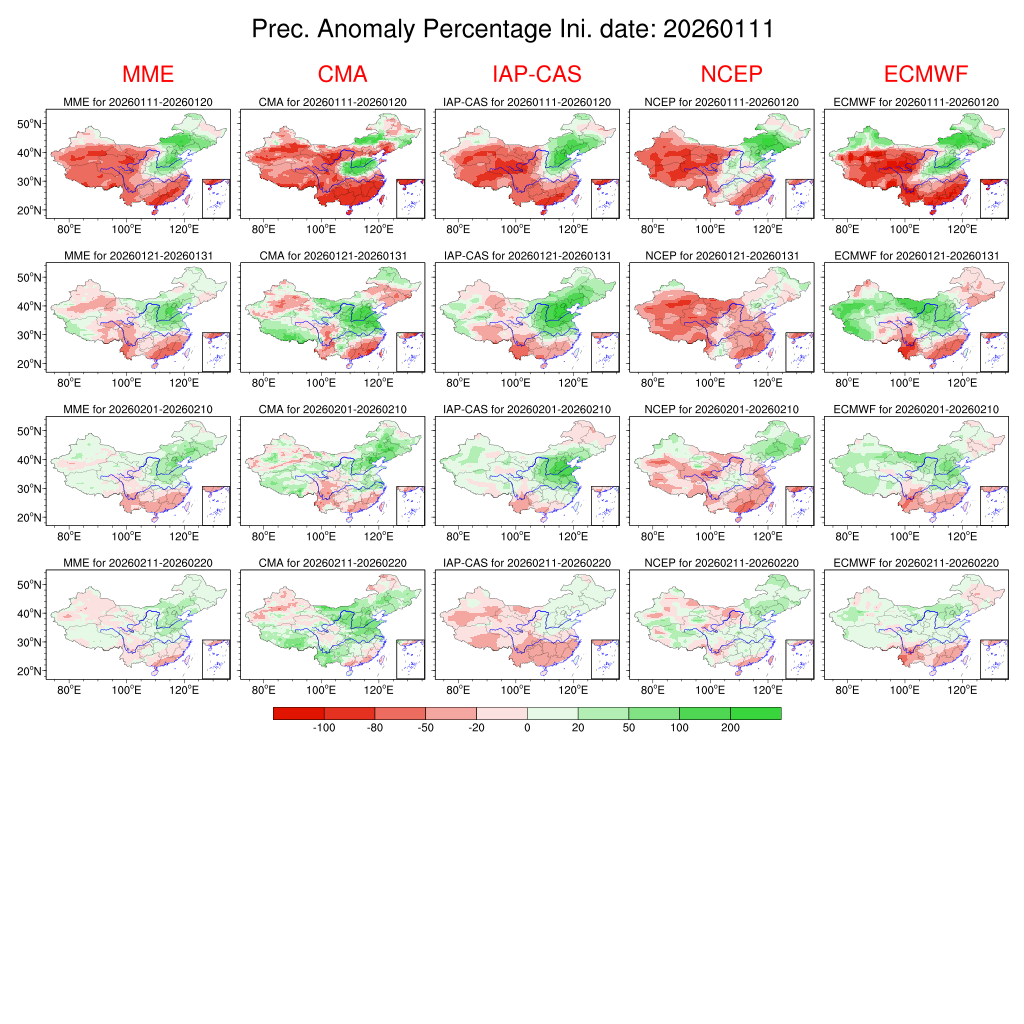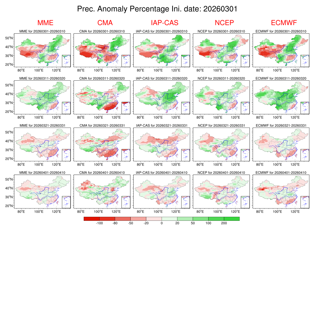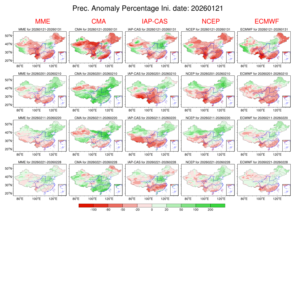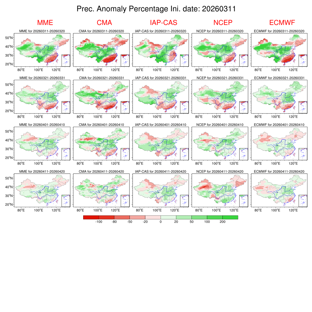 | 月尺度预测产品 | 旬尺度预测产品 | 候尺度预测产品 | 过程预测产品 | ||||||||