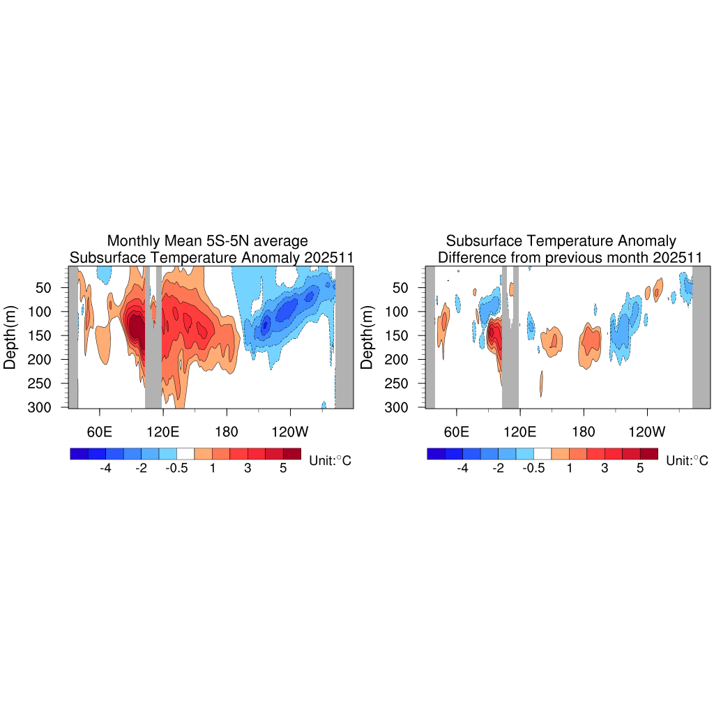 次表层海温深度-经度剖面——月尺度