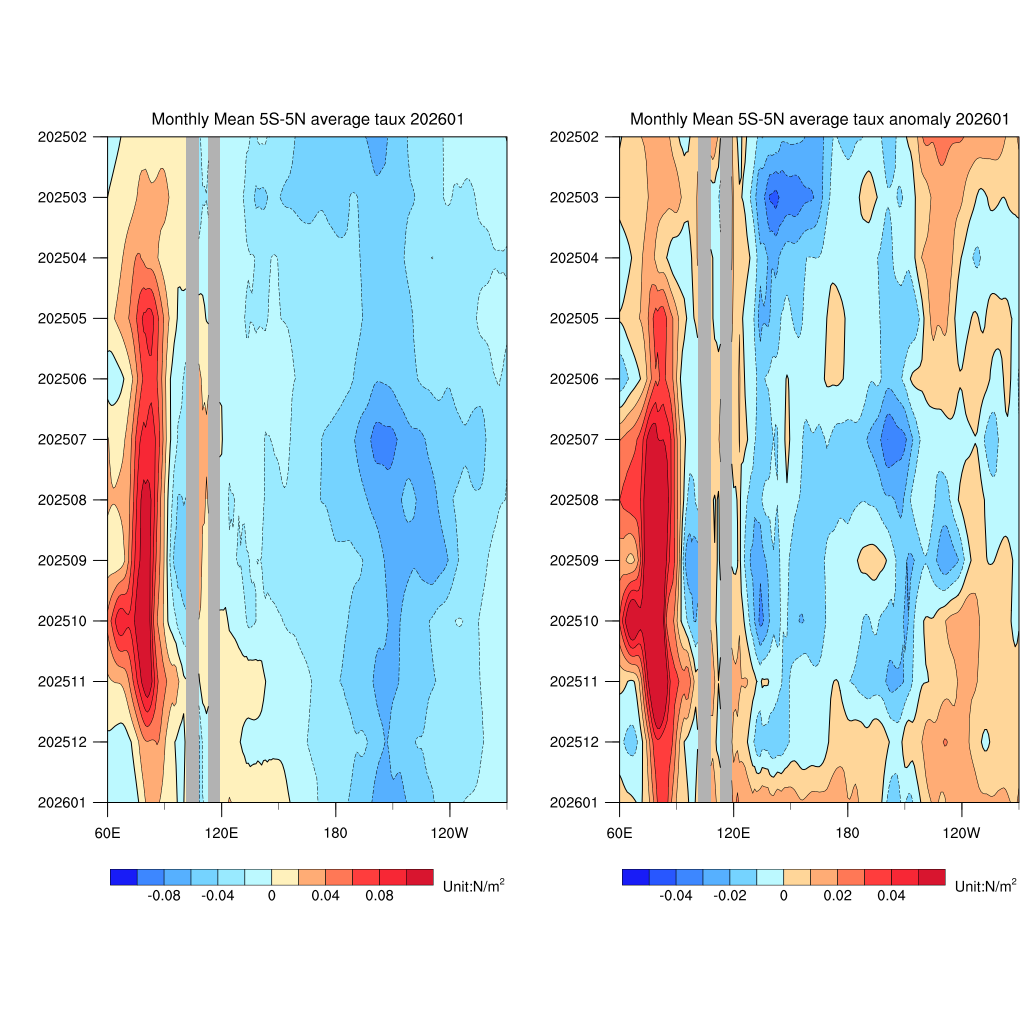 数据来源:美国国家海洋和大气管理局(NOAA)国家环境预报中心(NCEP)提供的全球海洋同化系统(GODAS;Behringer and Xue, 2004)。资料纬度范围75oS-65oN,水平分辨率1o×1o,其中赤道10oS-10oN范围内为(1/3)o,垂直方向从表层5米至次表层约4500米,共40层。包括逐候数据和逐月数据,起始时间1980年1月。