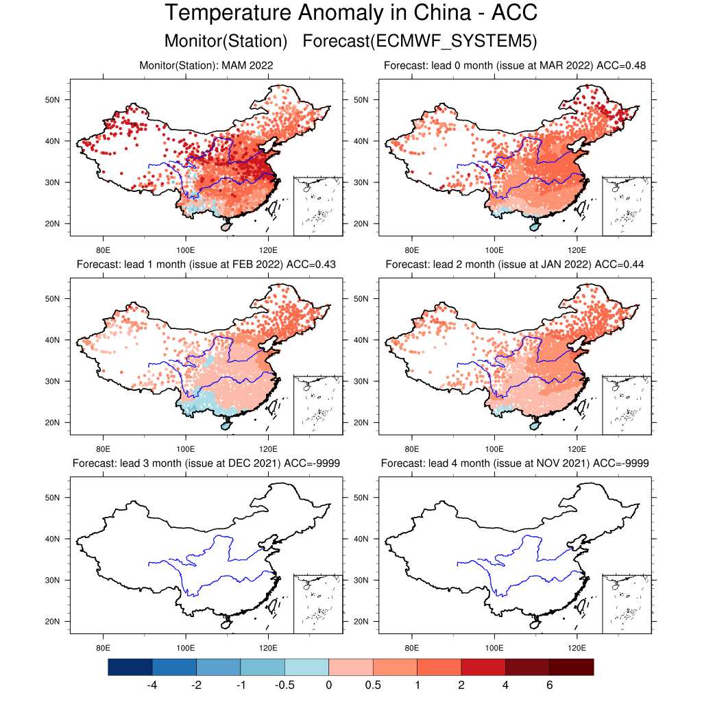 预报与实况对比和空间距平相似系数(ACC)