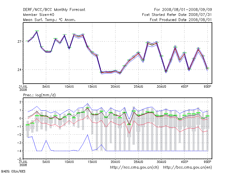 延 安 (LAT:36.60 LON:109.50) 2008-08-01        预测