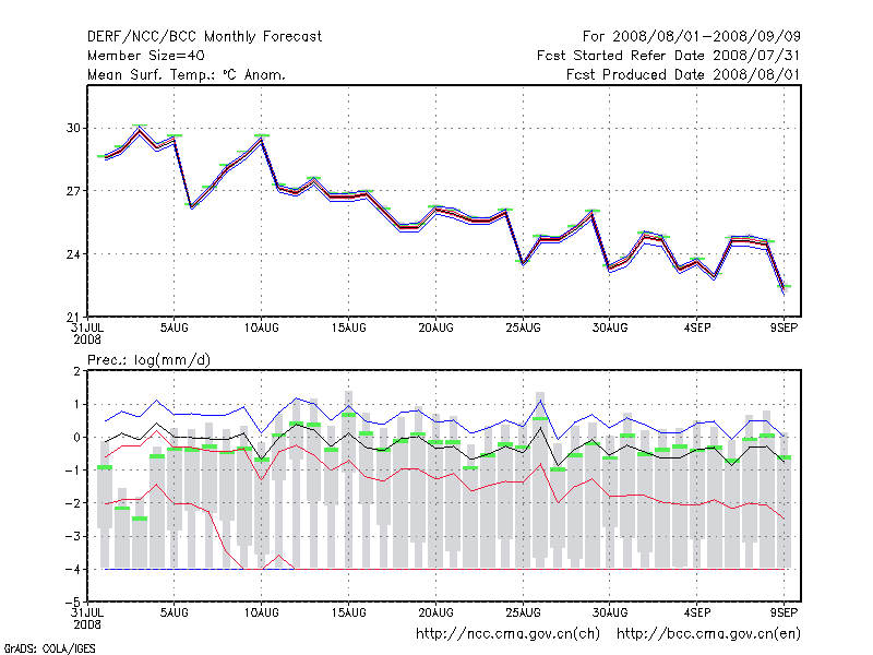 赤 峰 (LAT:42.27 LON:118.97) 2008-08-01        预测
