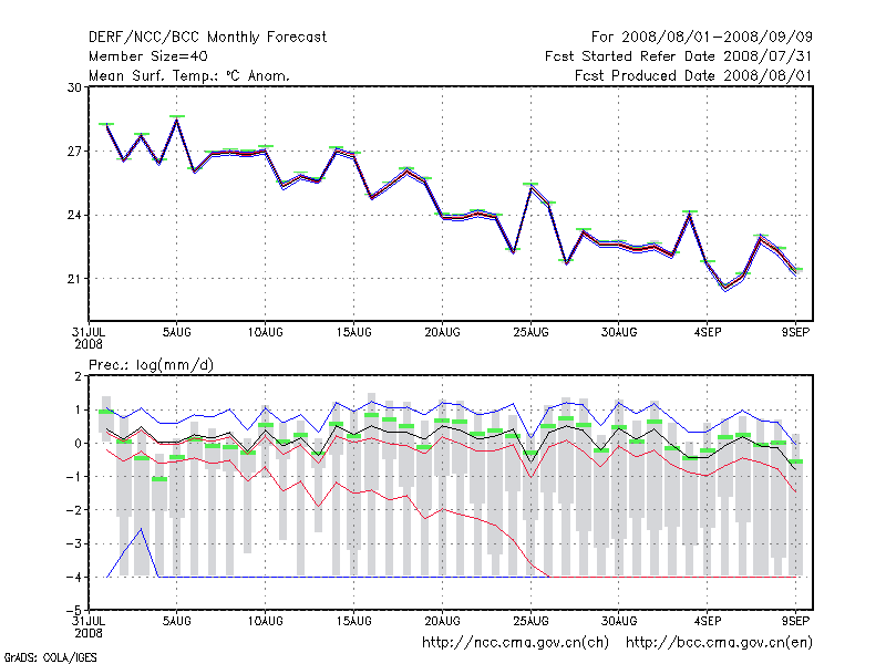 延 吉 (LAT:42.88 LON:129.47) 2008-08-01        预测