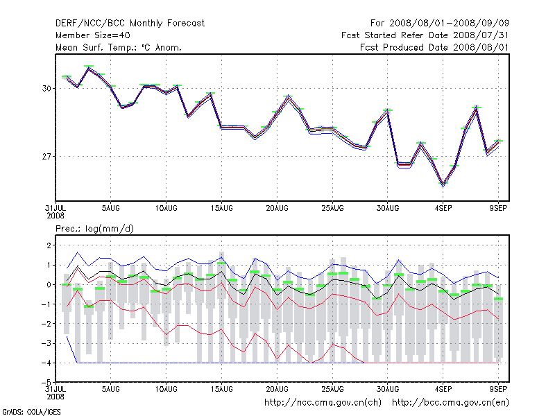 天 津 (LAT:39.10 LON:117.17) 2008-08-01        预测