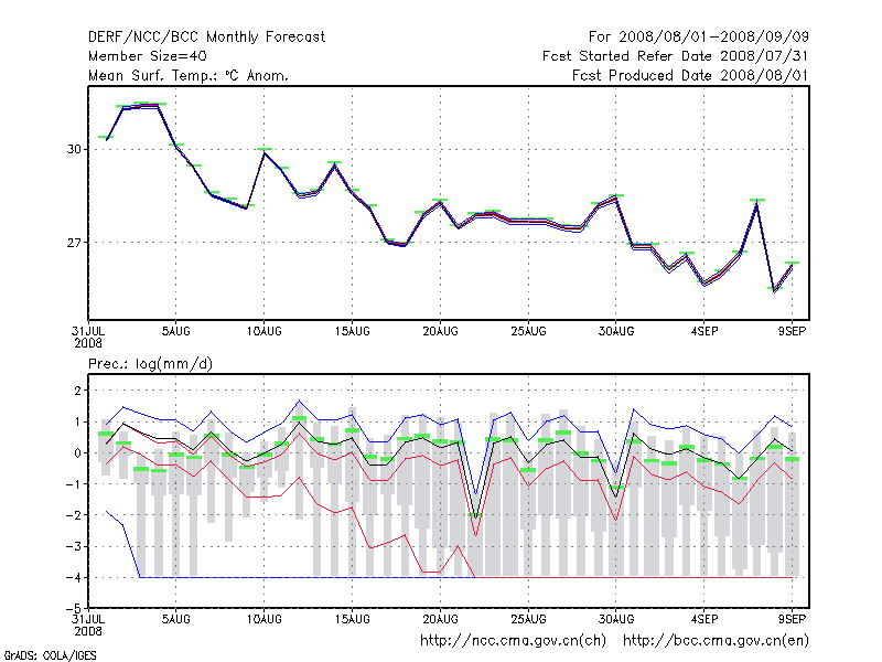 潍 坊 (LAT:36.70 LON:119.08) 2008-08-01        预测
